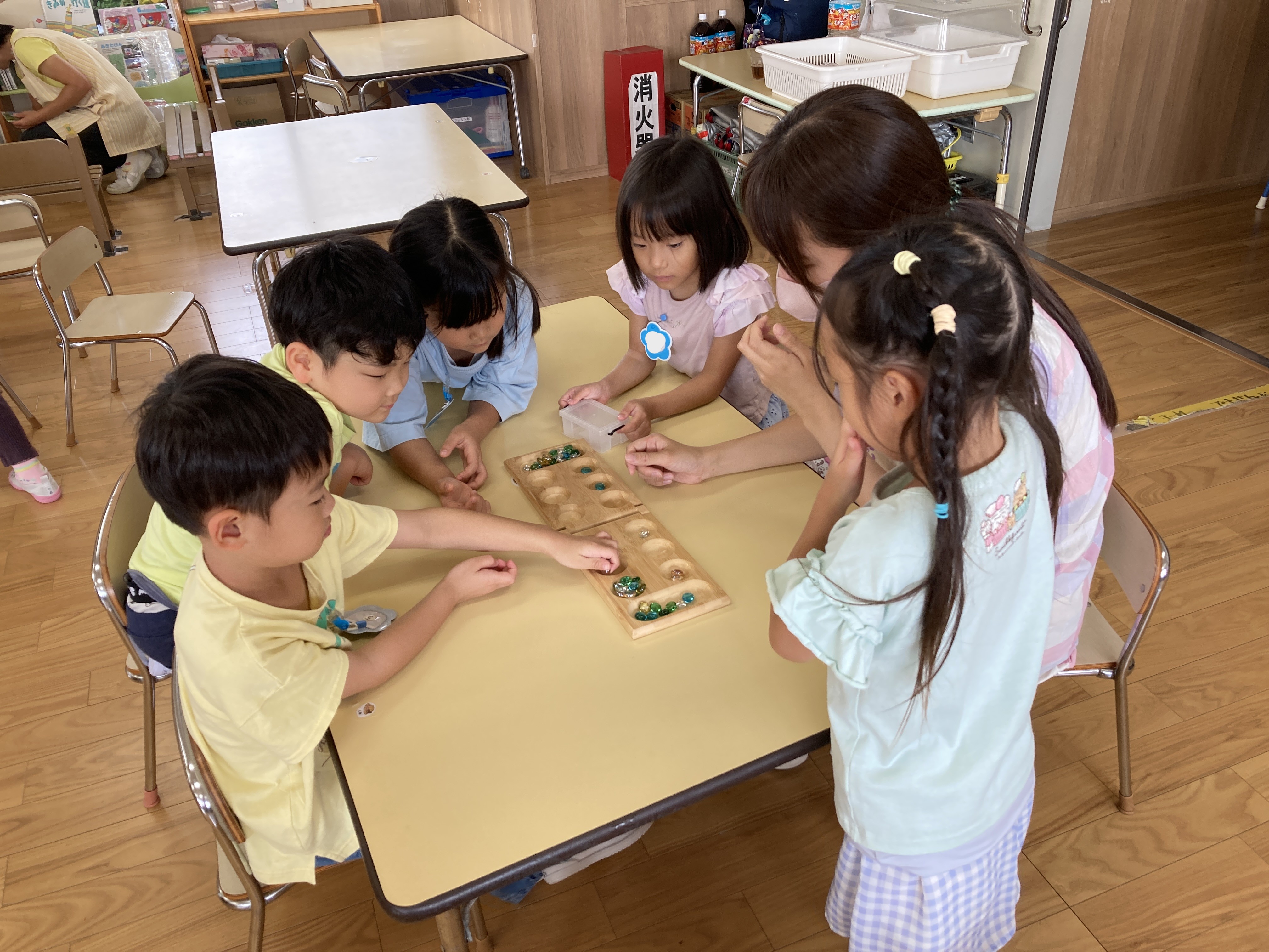 マンカラが春からずっと大人気です。大人も顔負けの強い子がたくさんいます。