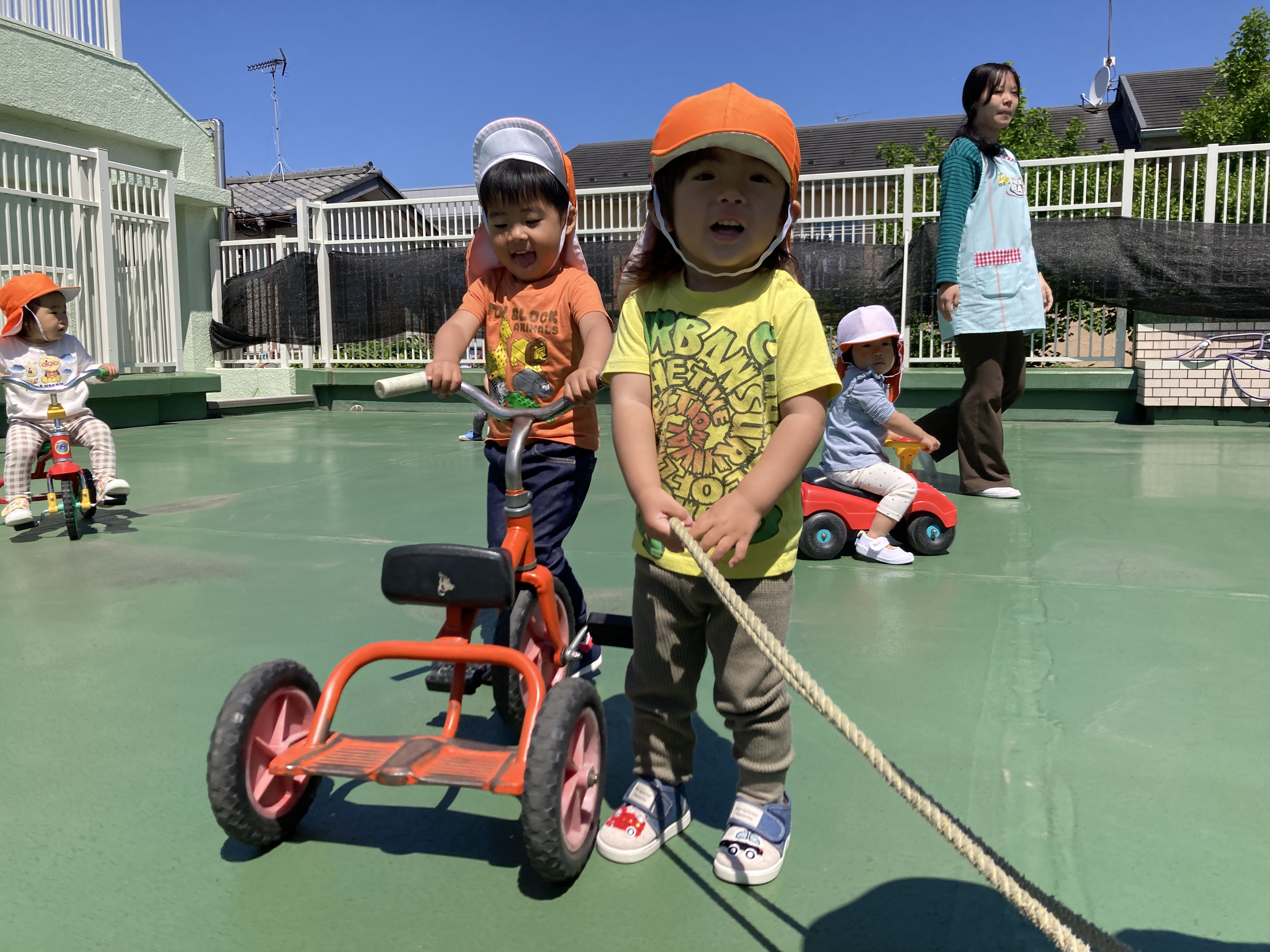 保育室と繋がっているテラスでは、色々な遊びができます。
