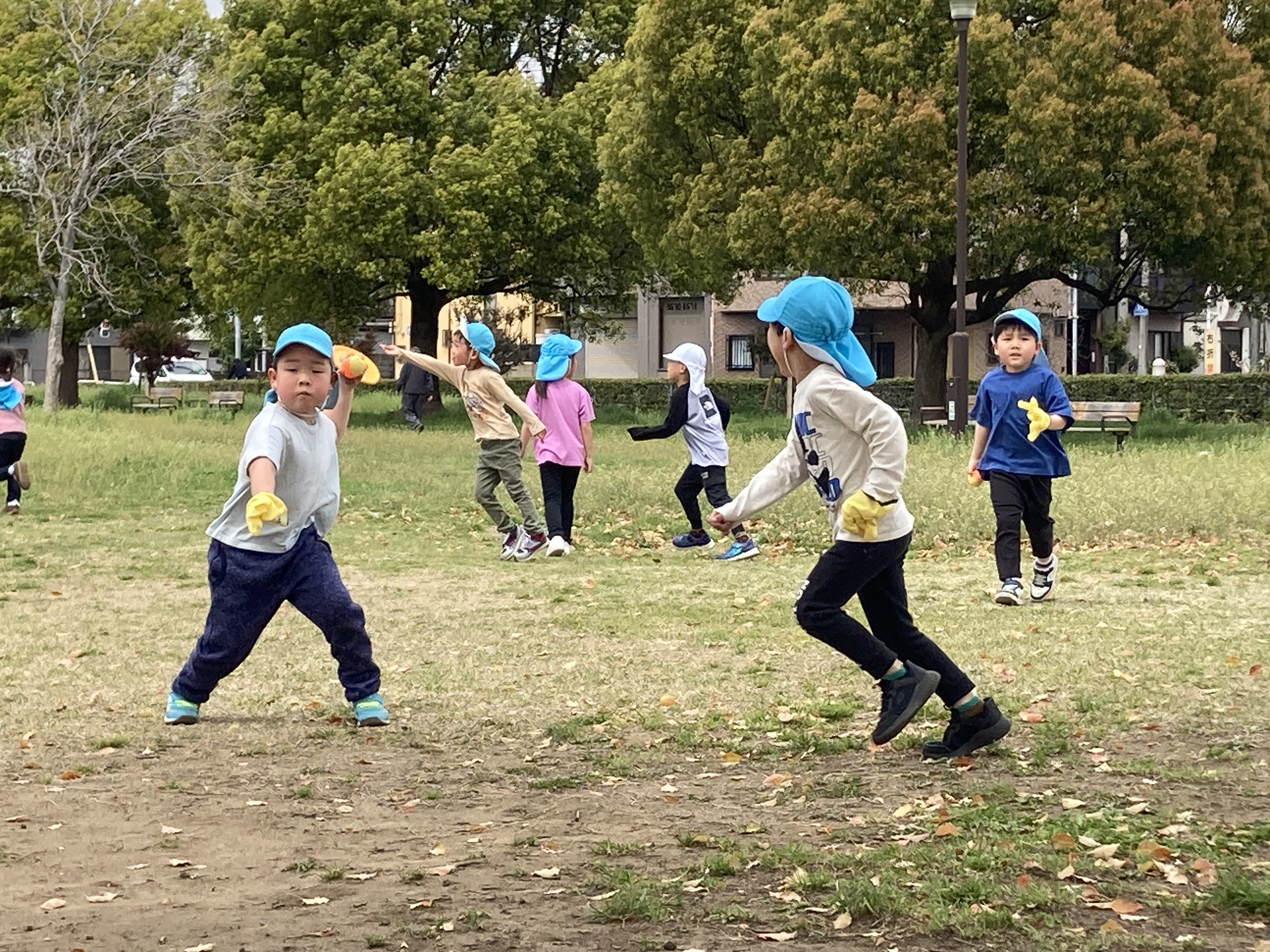 お散歩に行き、園外でもたくさん身体を動かして遊びます。