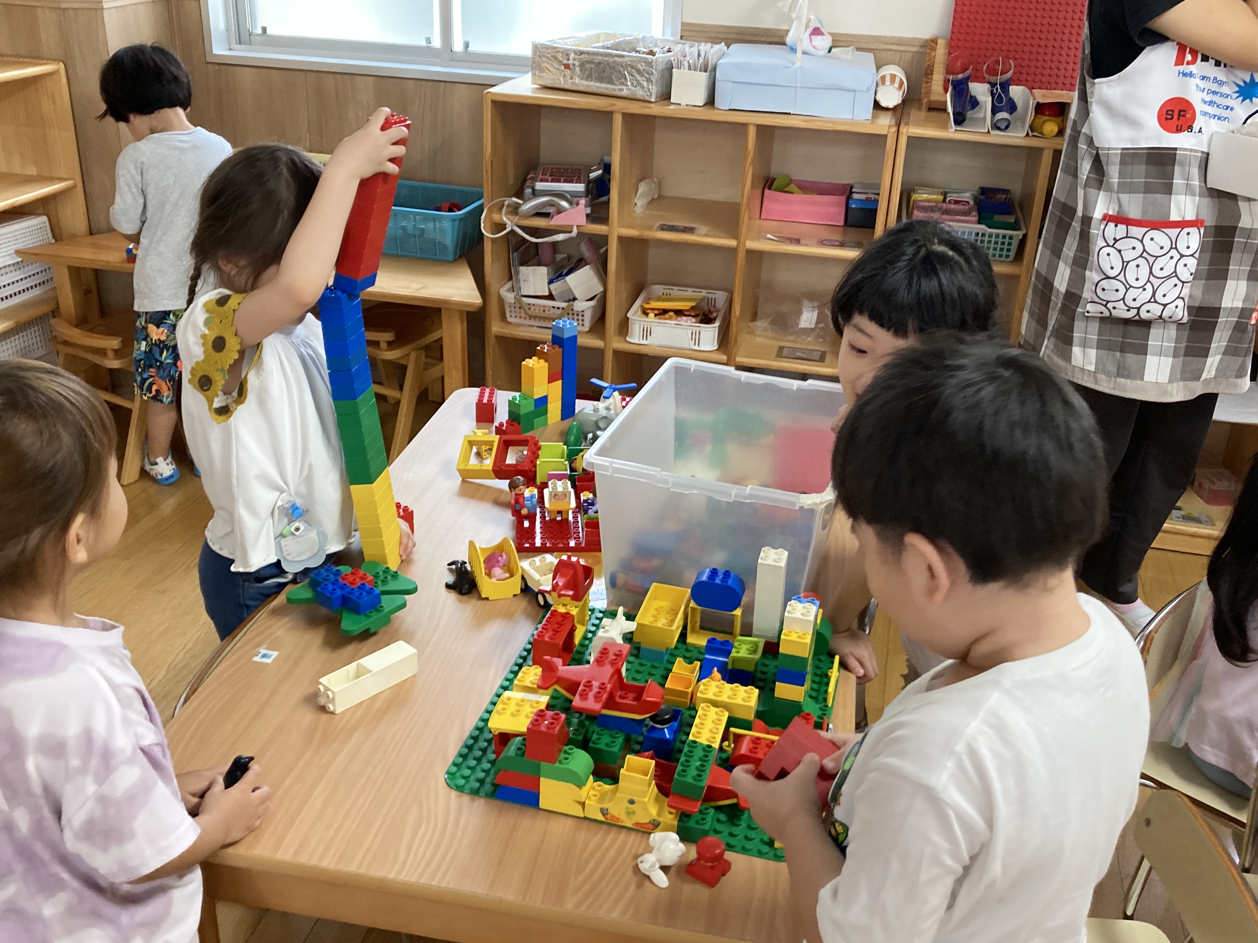 友達と相談しながら遊ぶのも上手になってきています。イメージを共有しながら分担して作っているブロック。スカイツリーも出来てきました。
