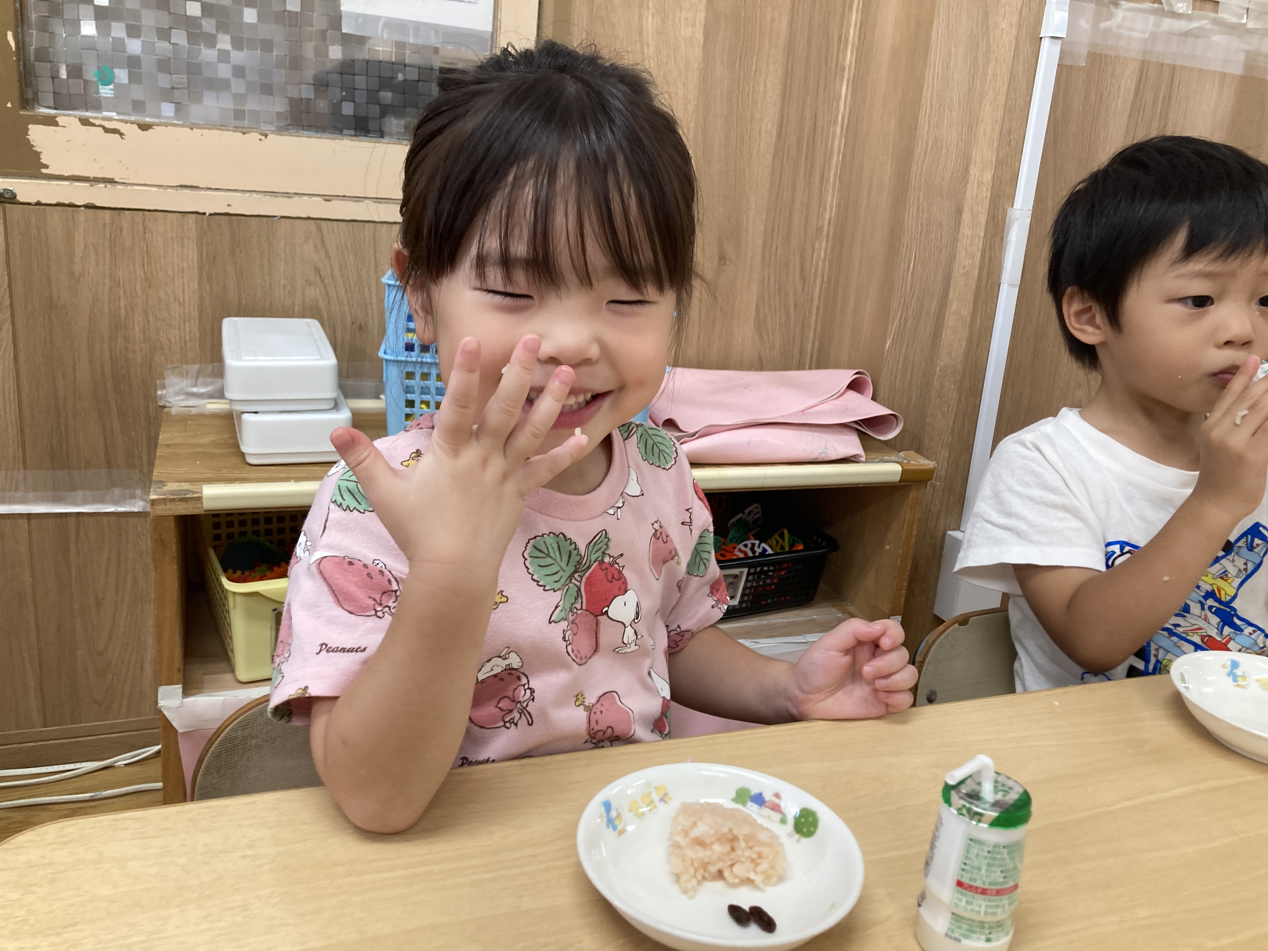 アンパンマンのおにぎりに嬉しそうな子ども達。