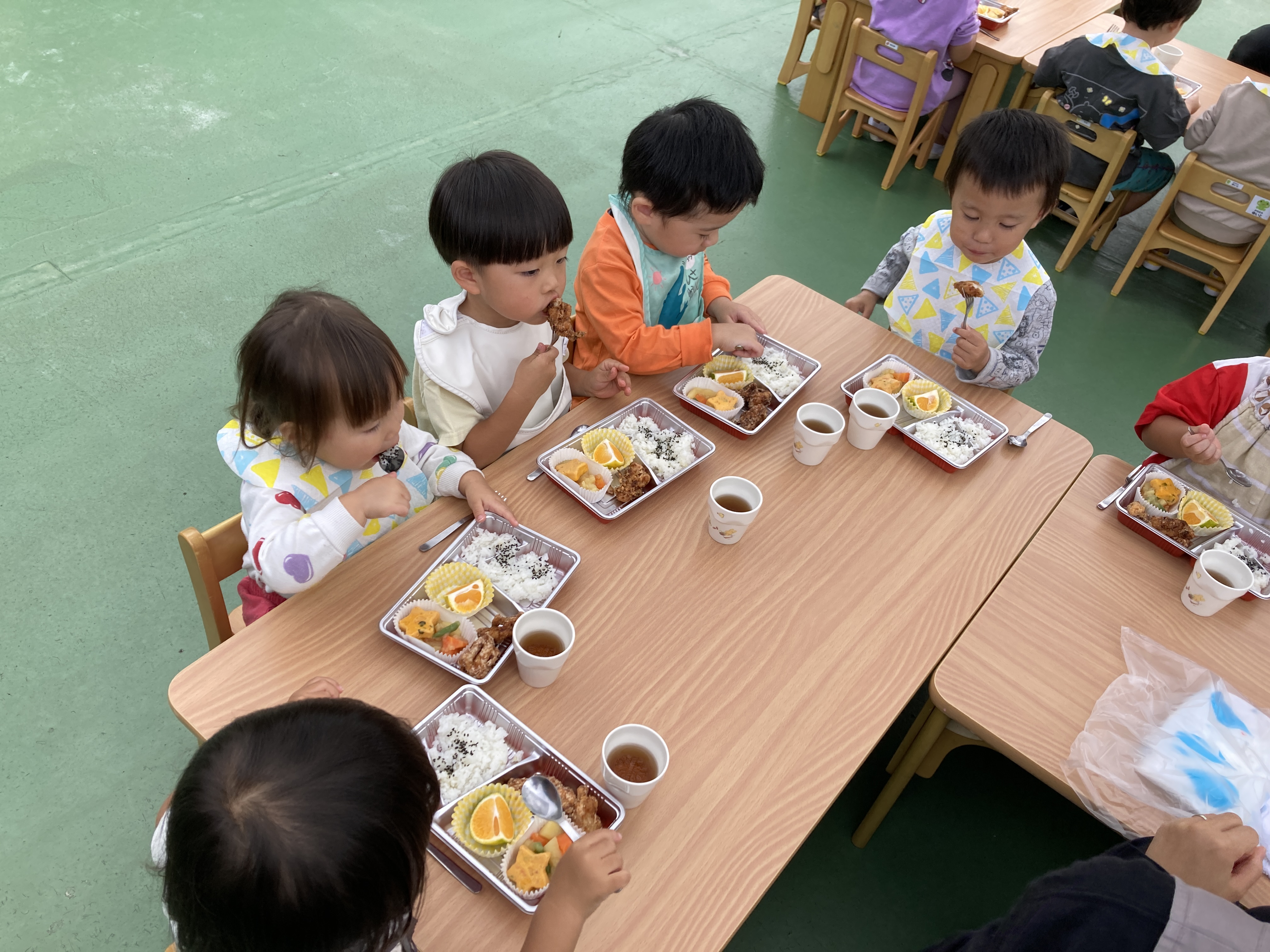 子ども達も「今日はお弁当だ」と嬉しそうに食べていました。