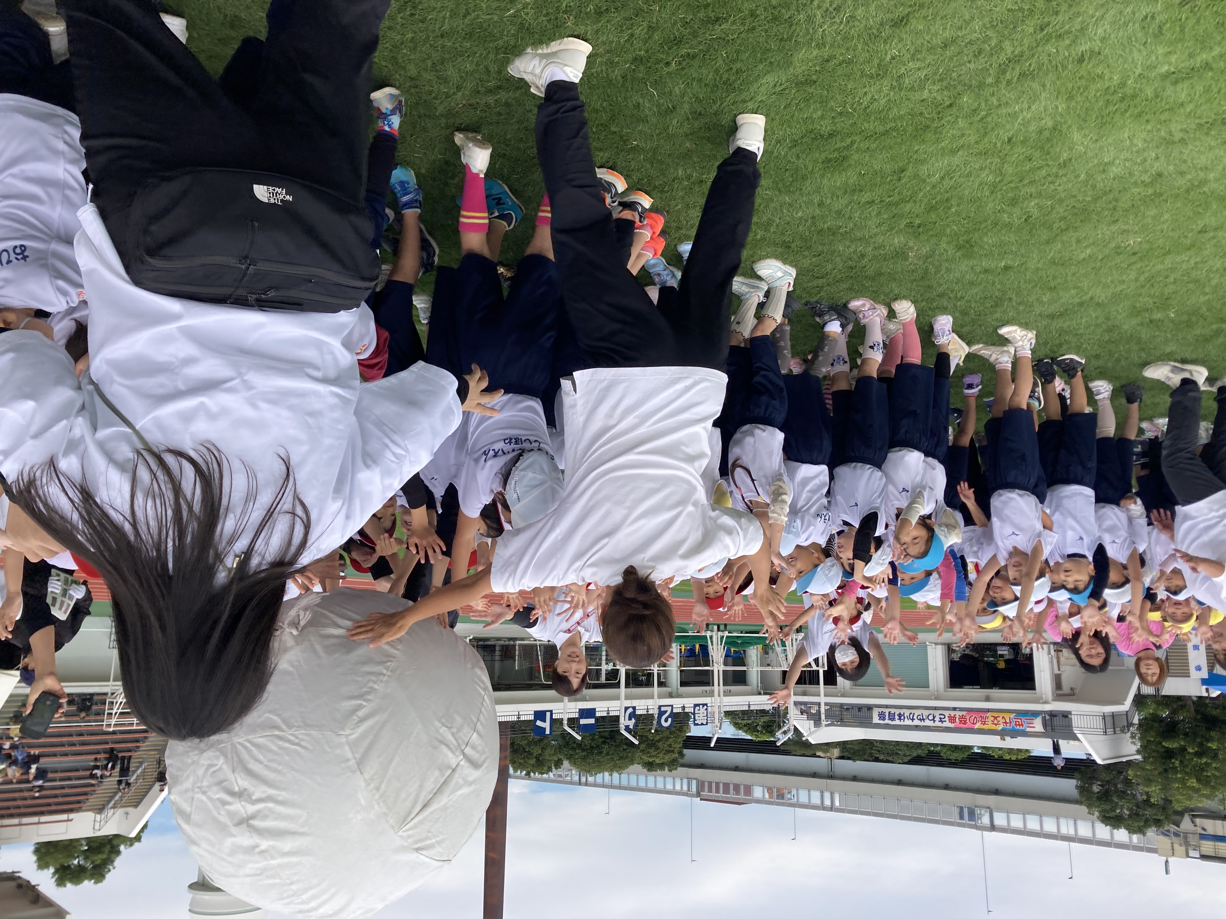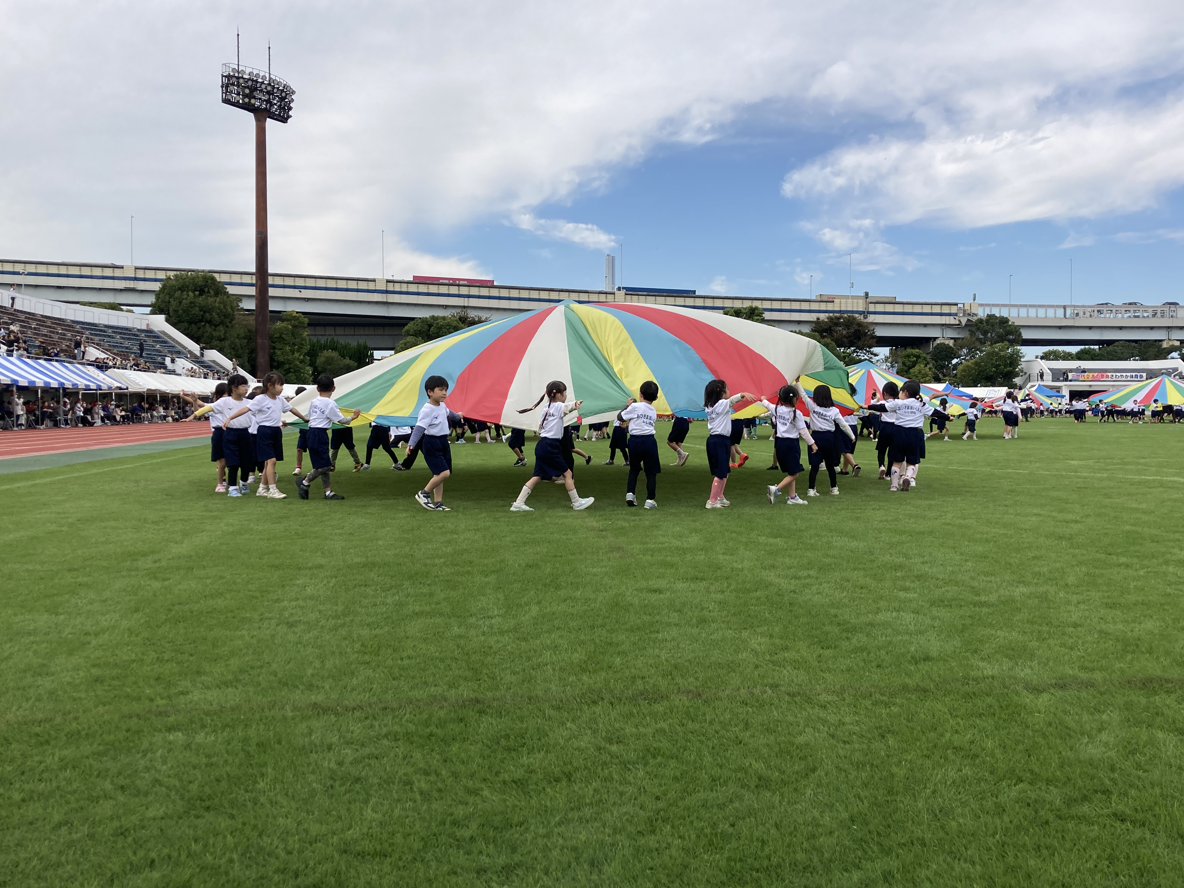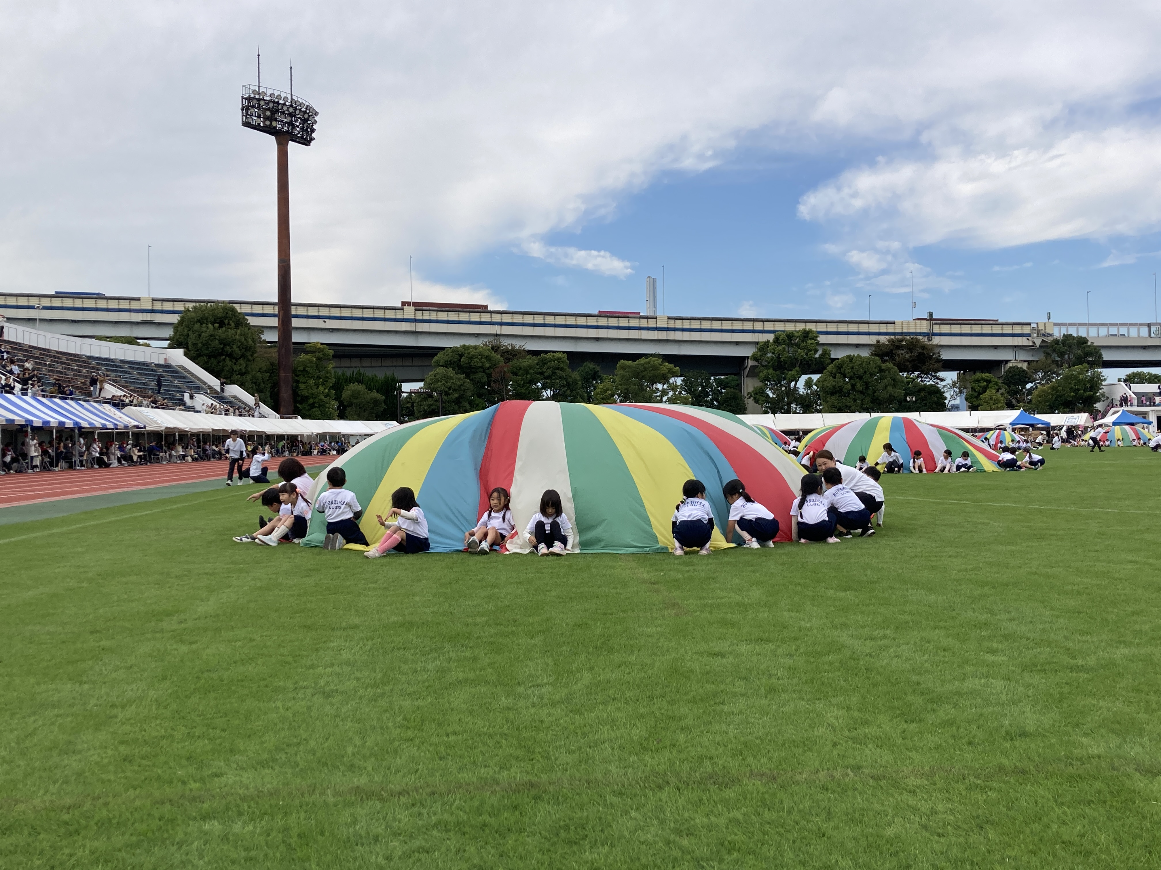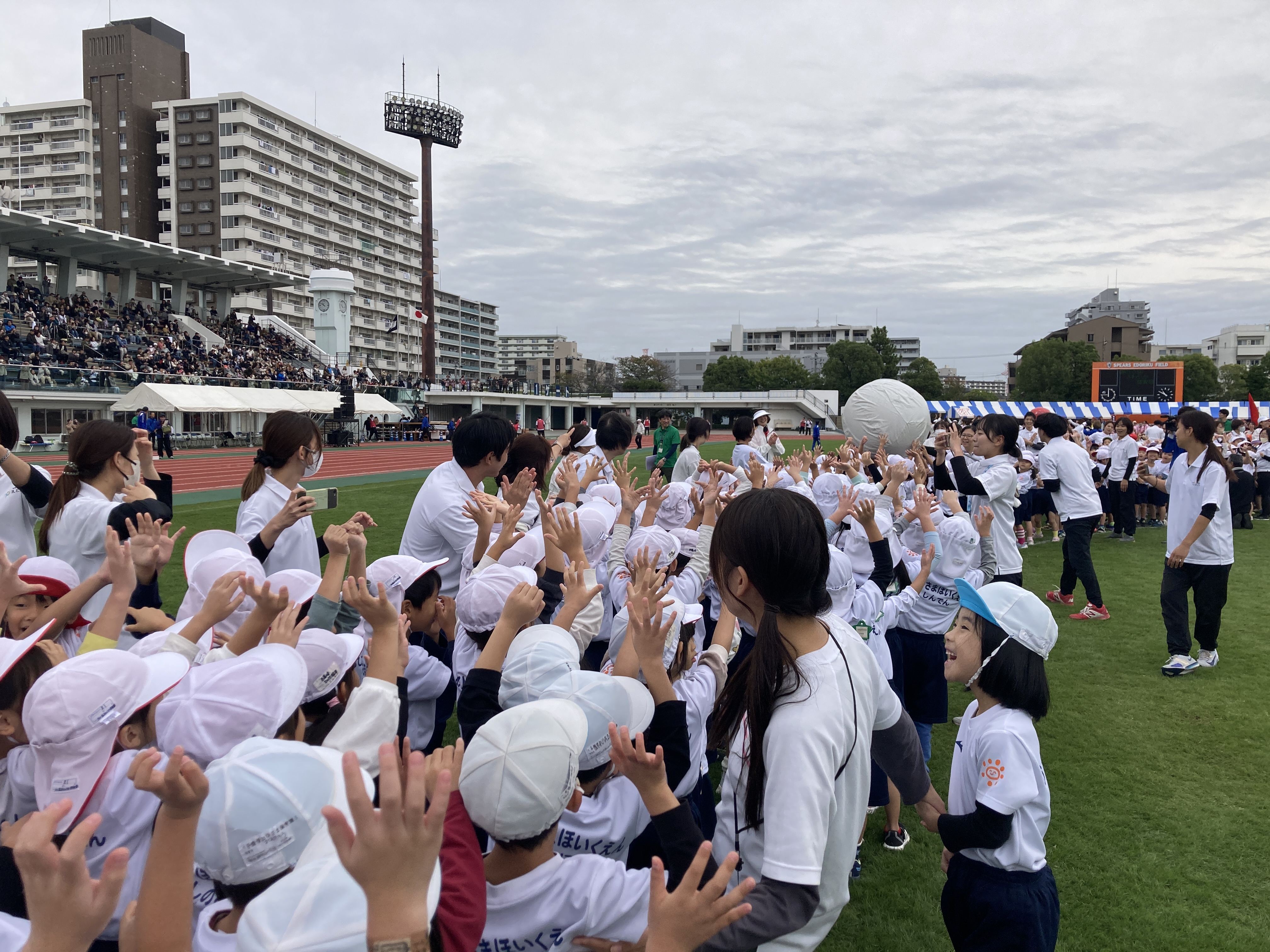 空中大玉送りです。白熱した試合で2-1で紅組の勝利でした。