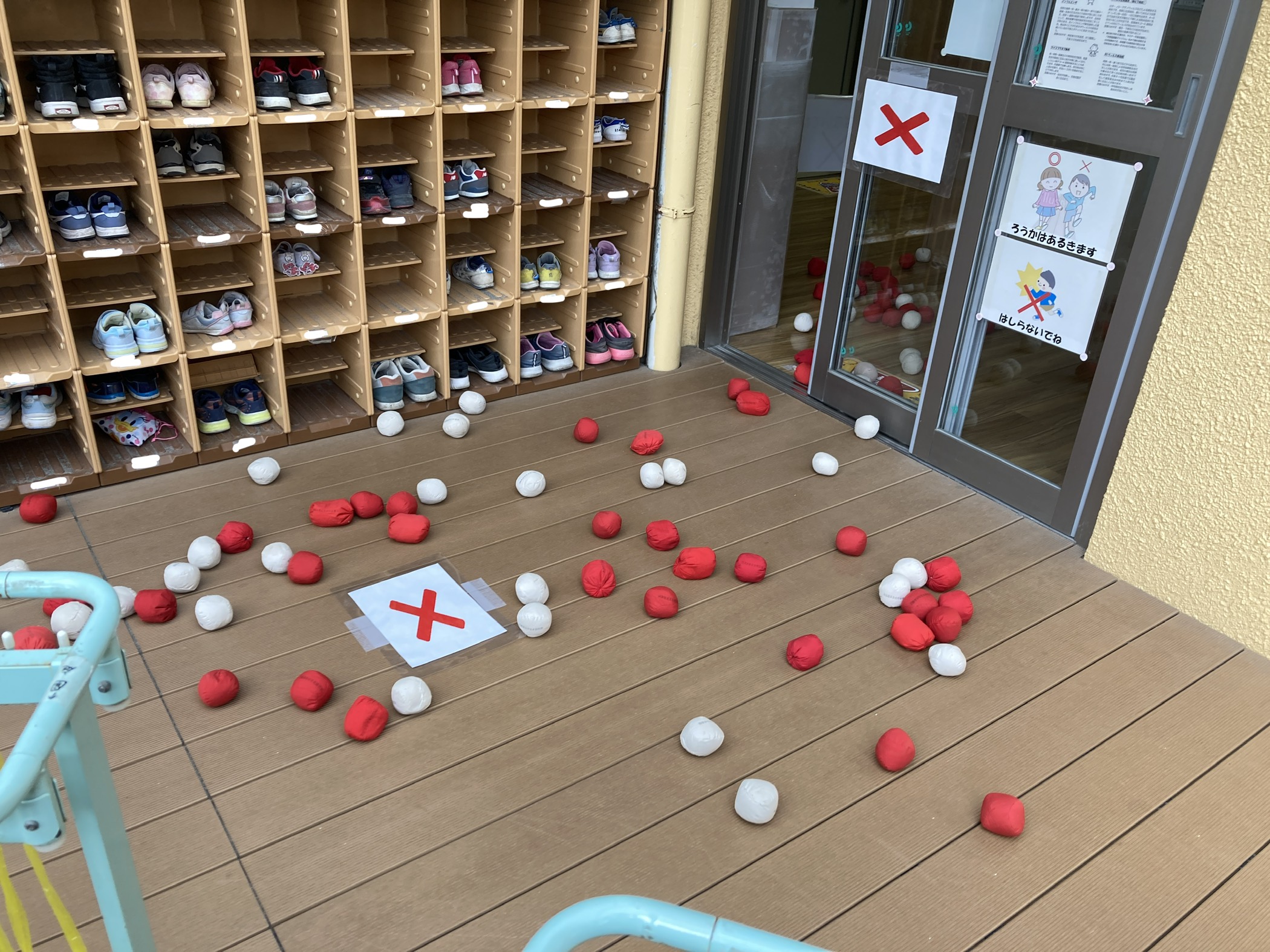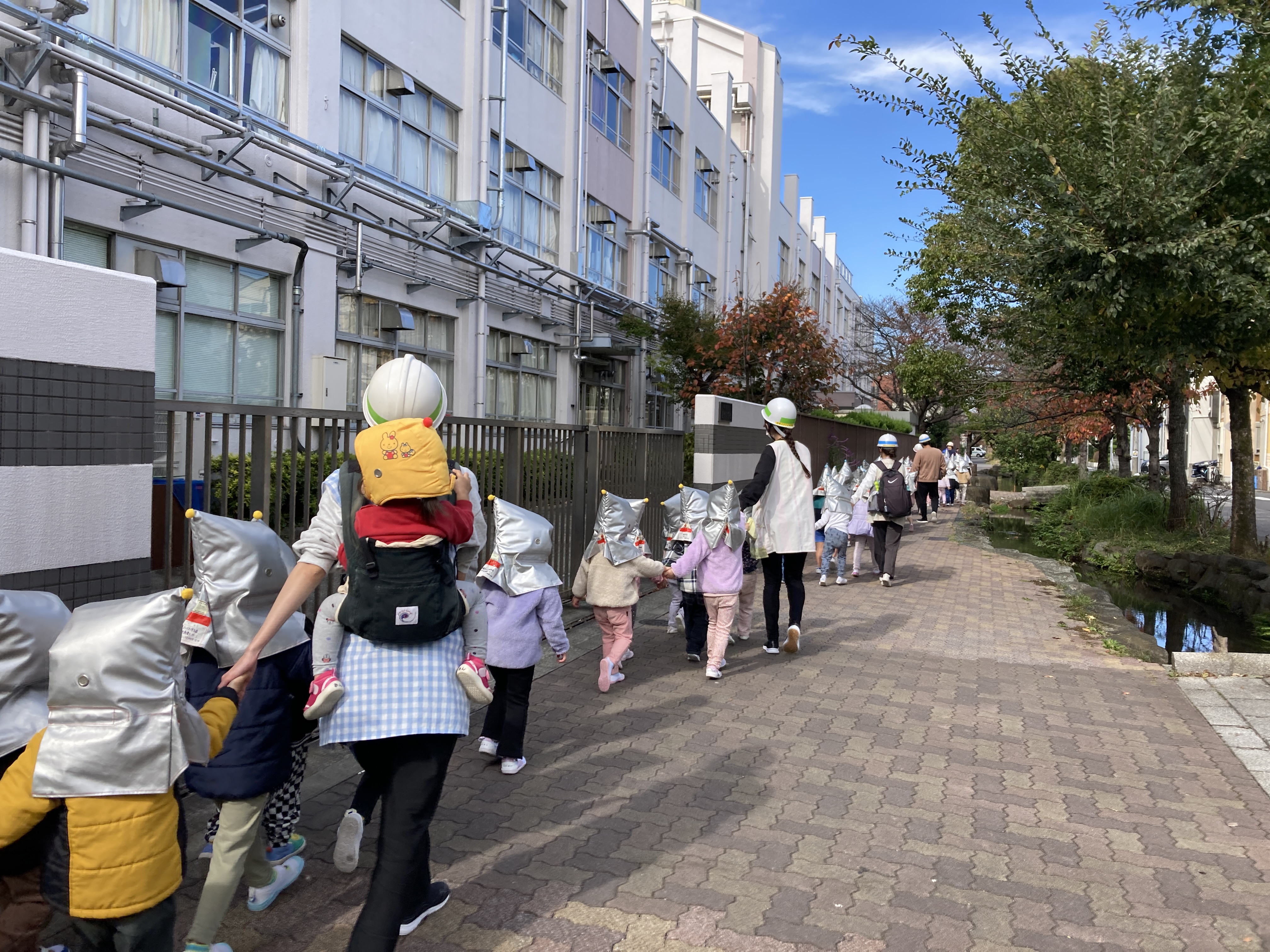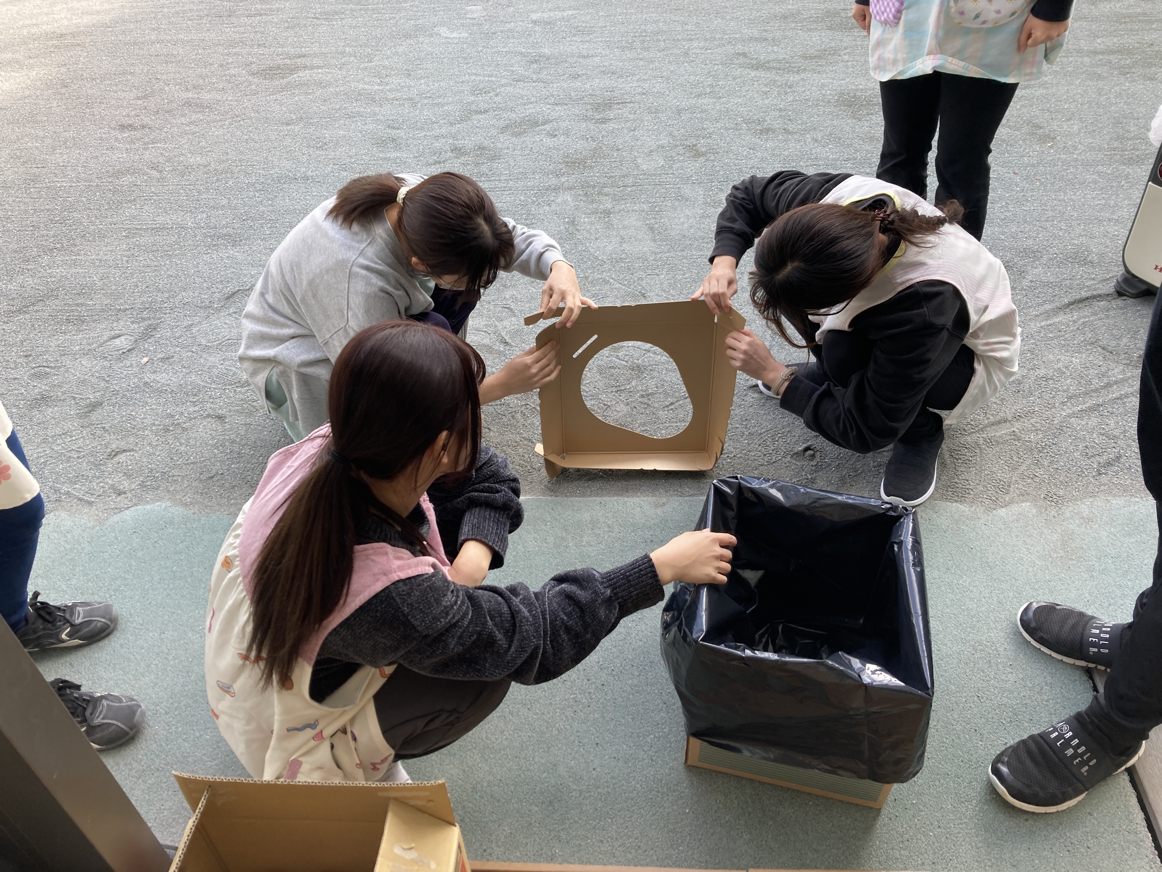 震度6の地震により保育園内で破損個所を確認し、鹿骨中学校に避難しました。