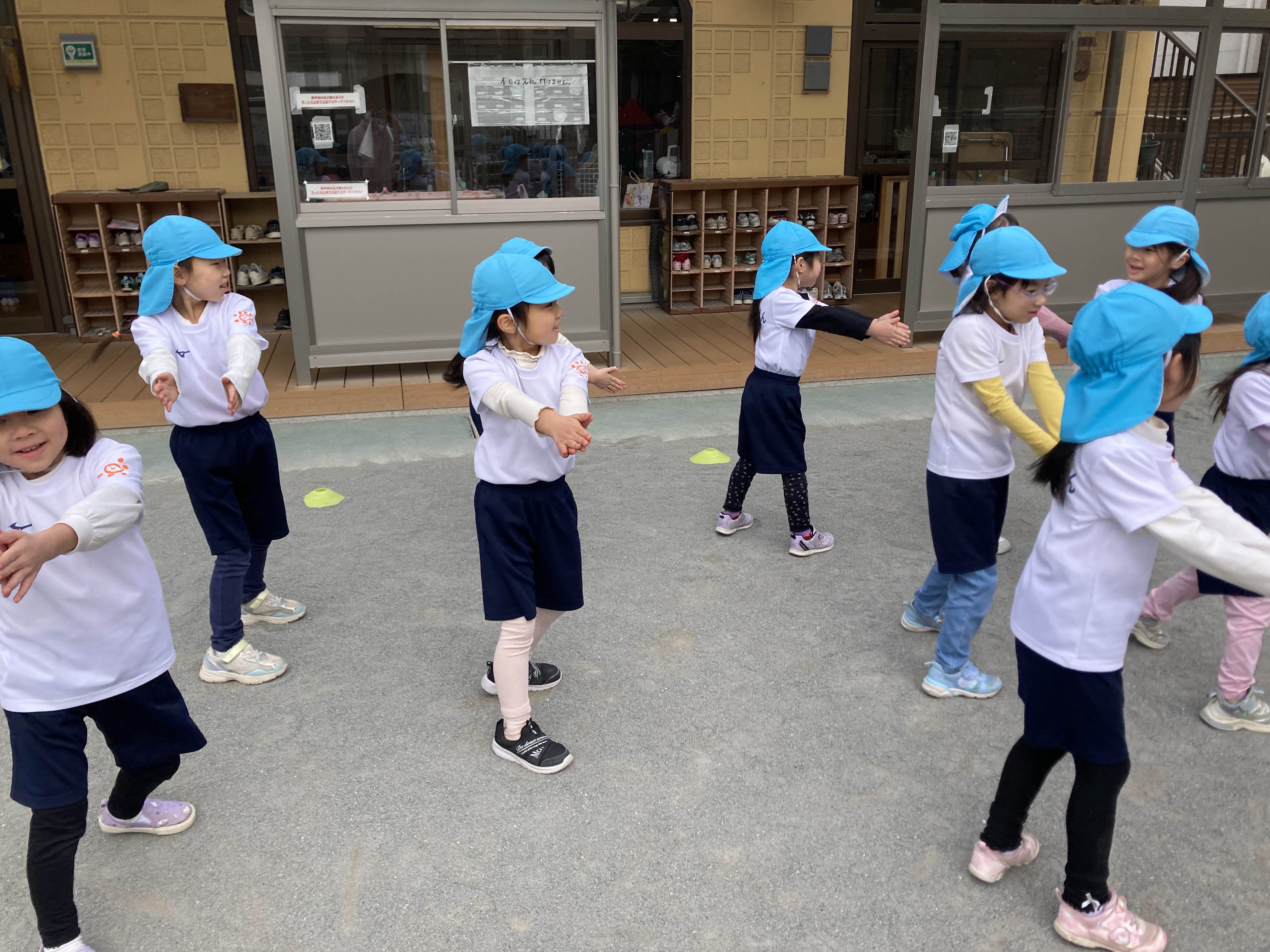 投げ方を教わった子は、とっても上手に目の前の印にボールを投げていました。