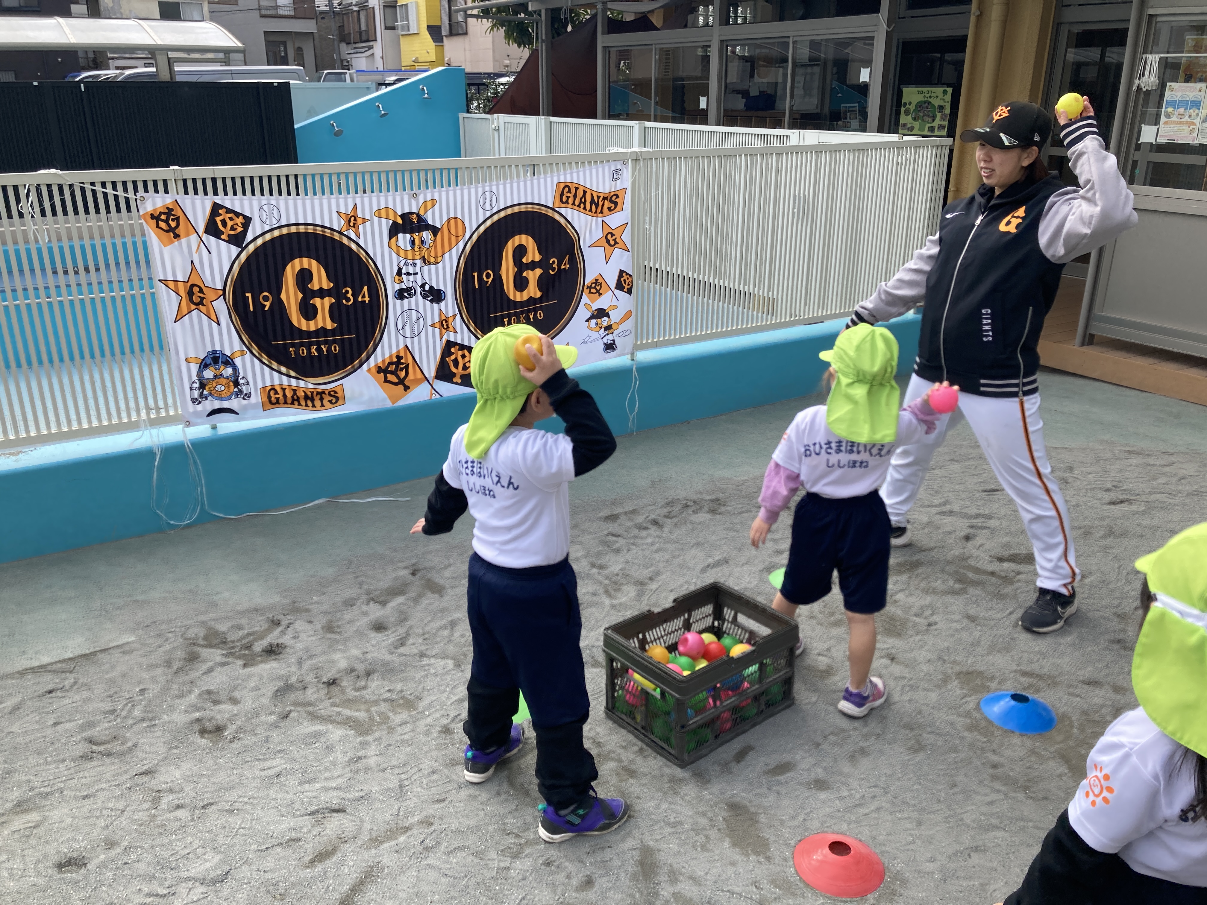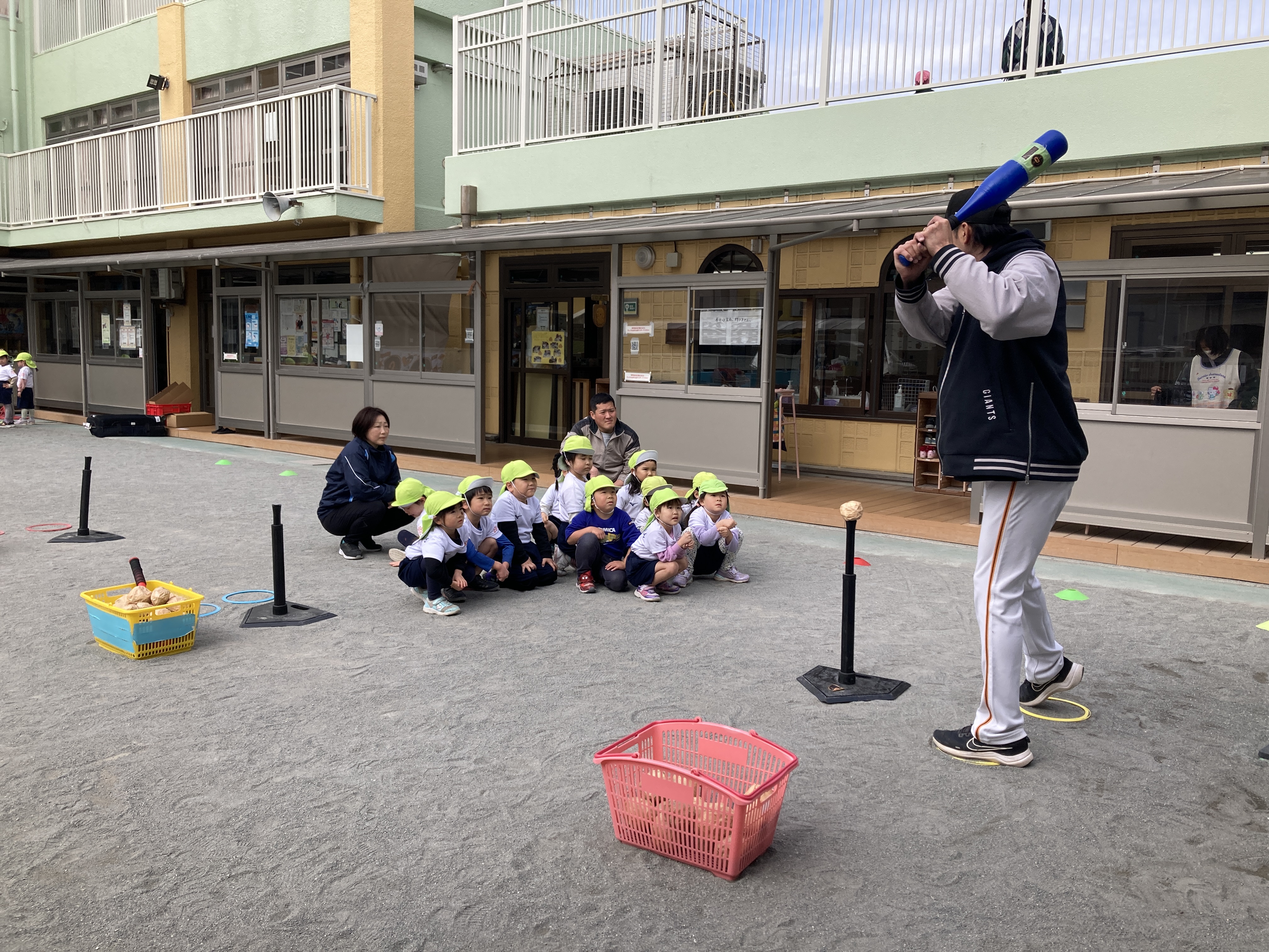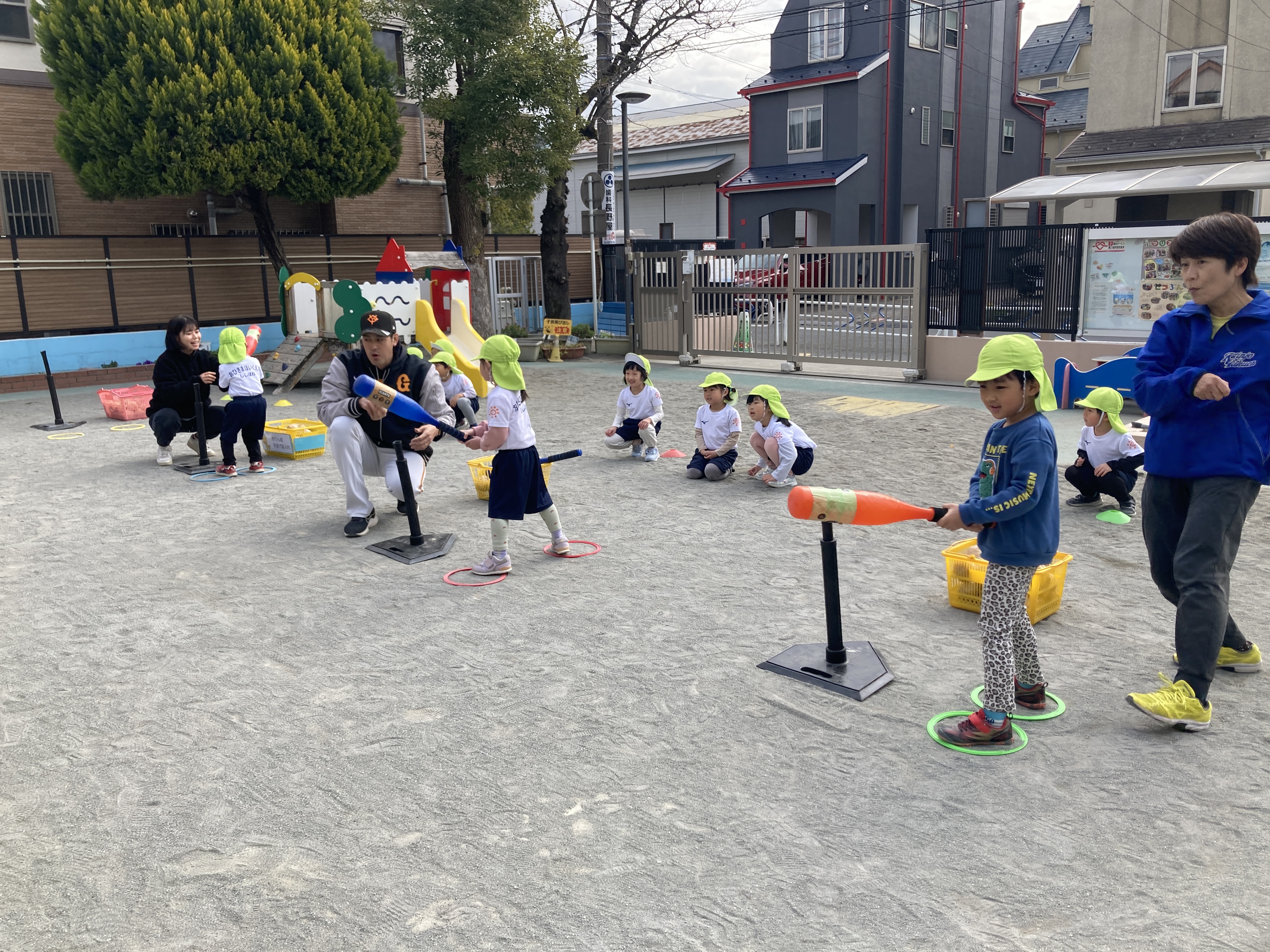 今日はジャイアンツアカデミーから二人のコーチが野球を教えにきてくれました。