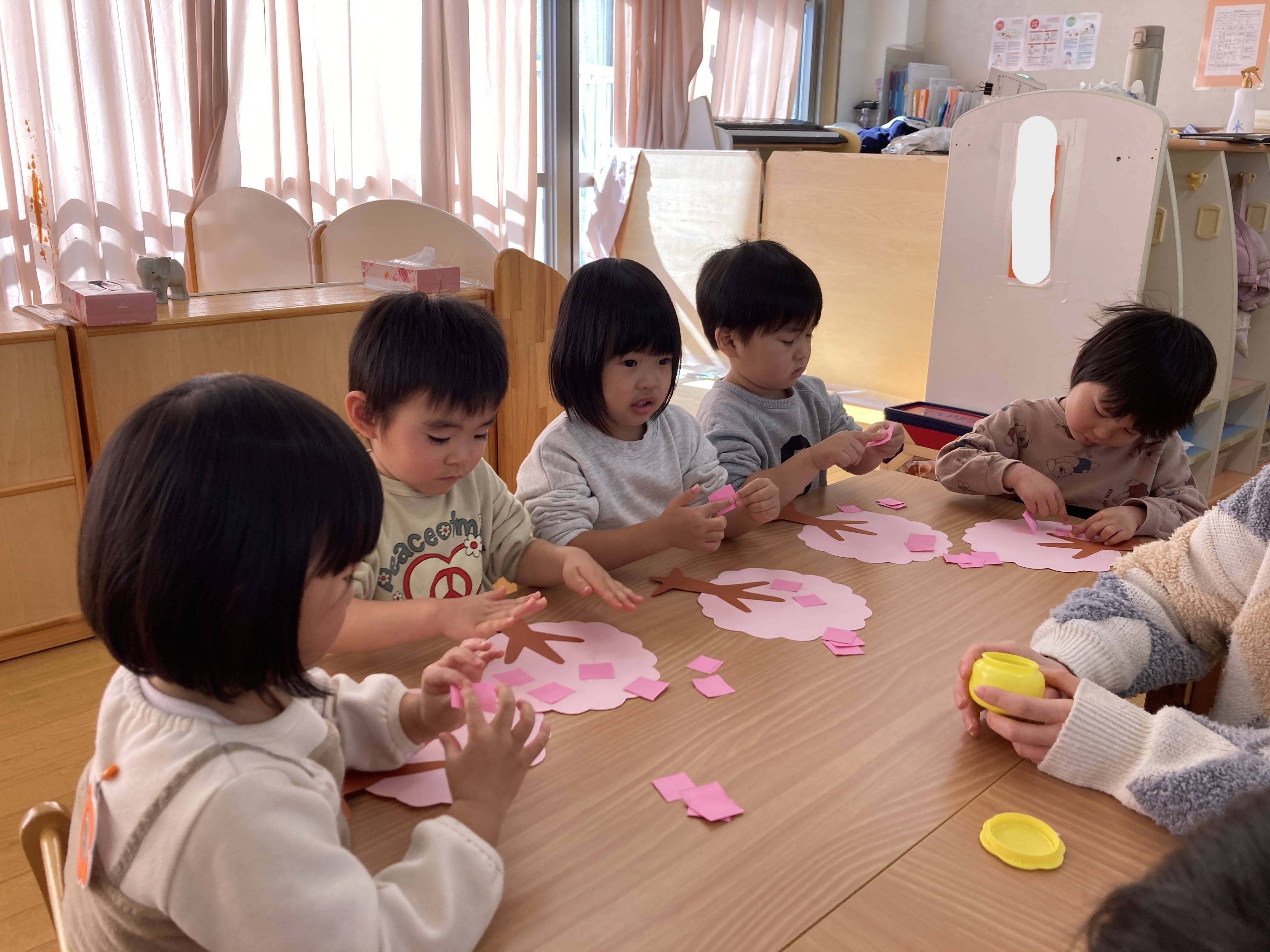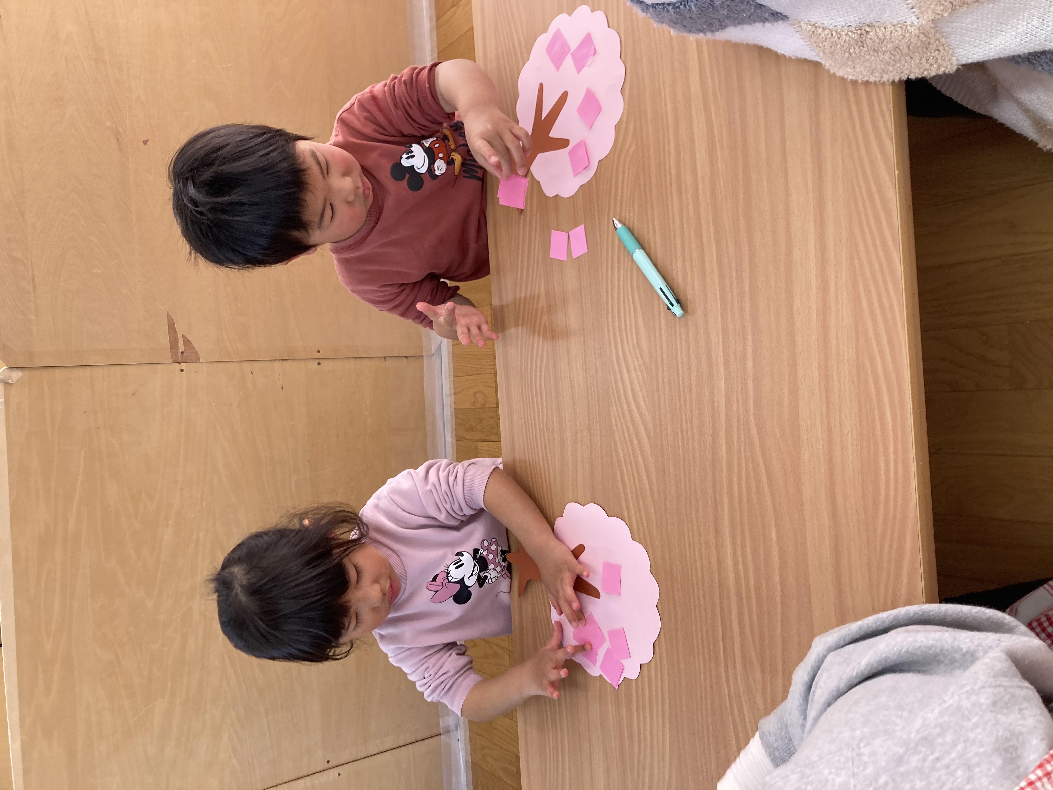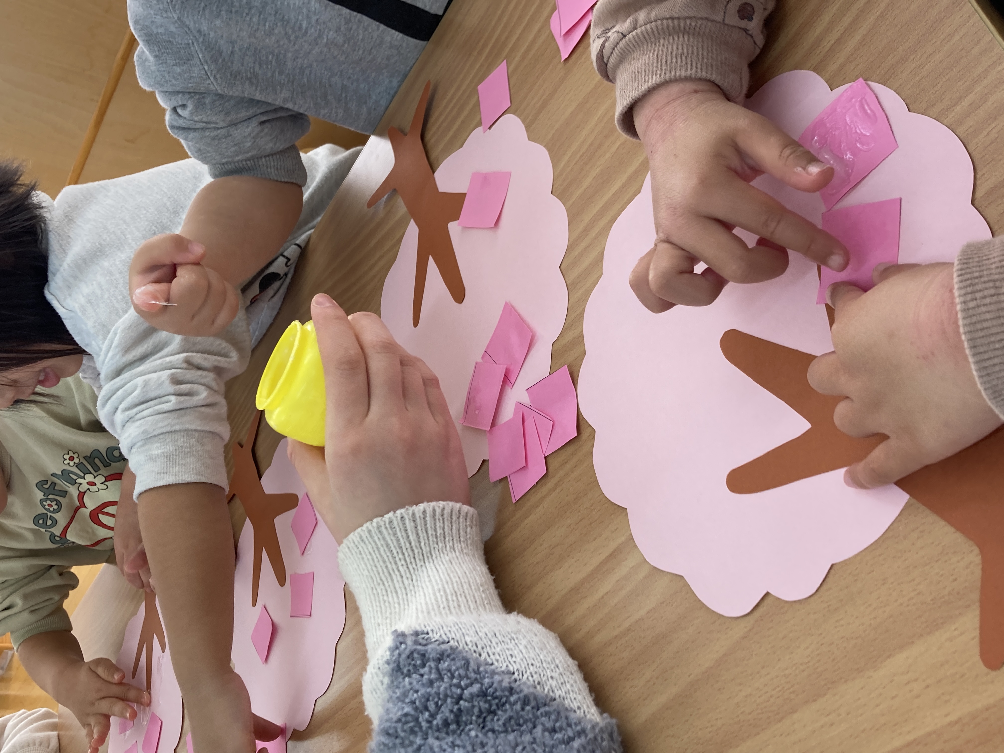 完成した桜を見ると「桜かわいいね」「桜見るの楽しみだね」と桜の開花を楽しみにしていた子ども達です。