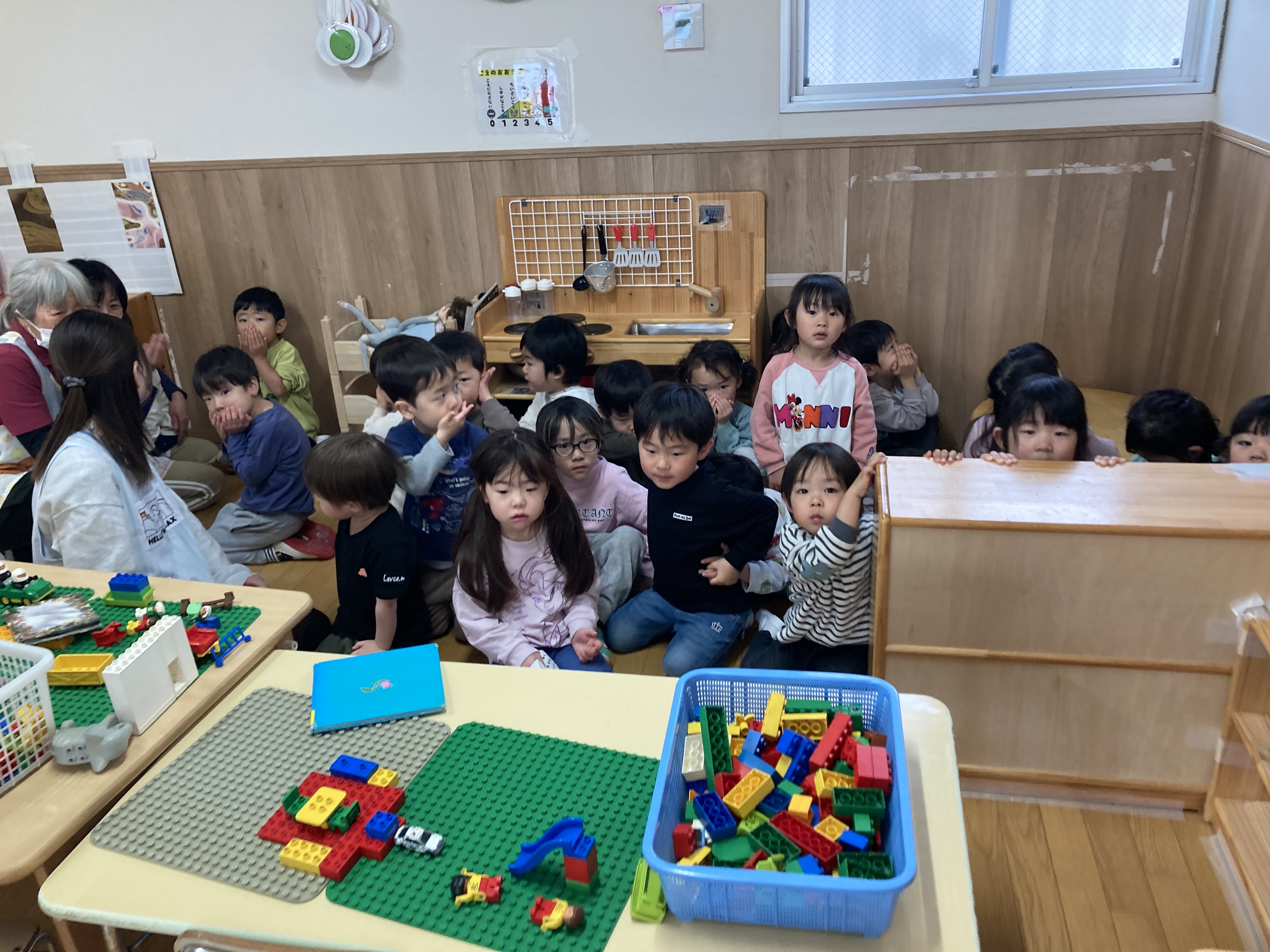 らいおん組は園庭遊び中でしたが、保育士の声掛けで素早く2階のホールへ避難することが出来ました。