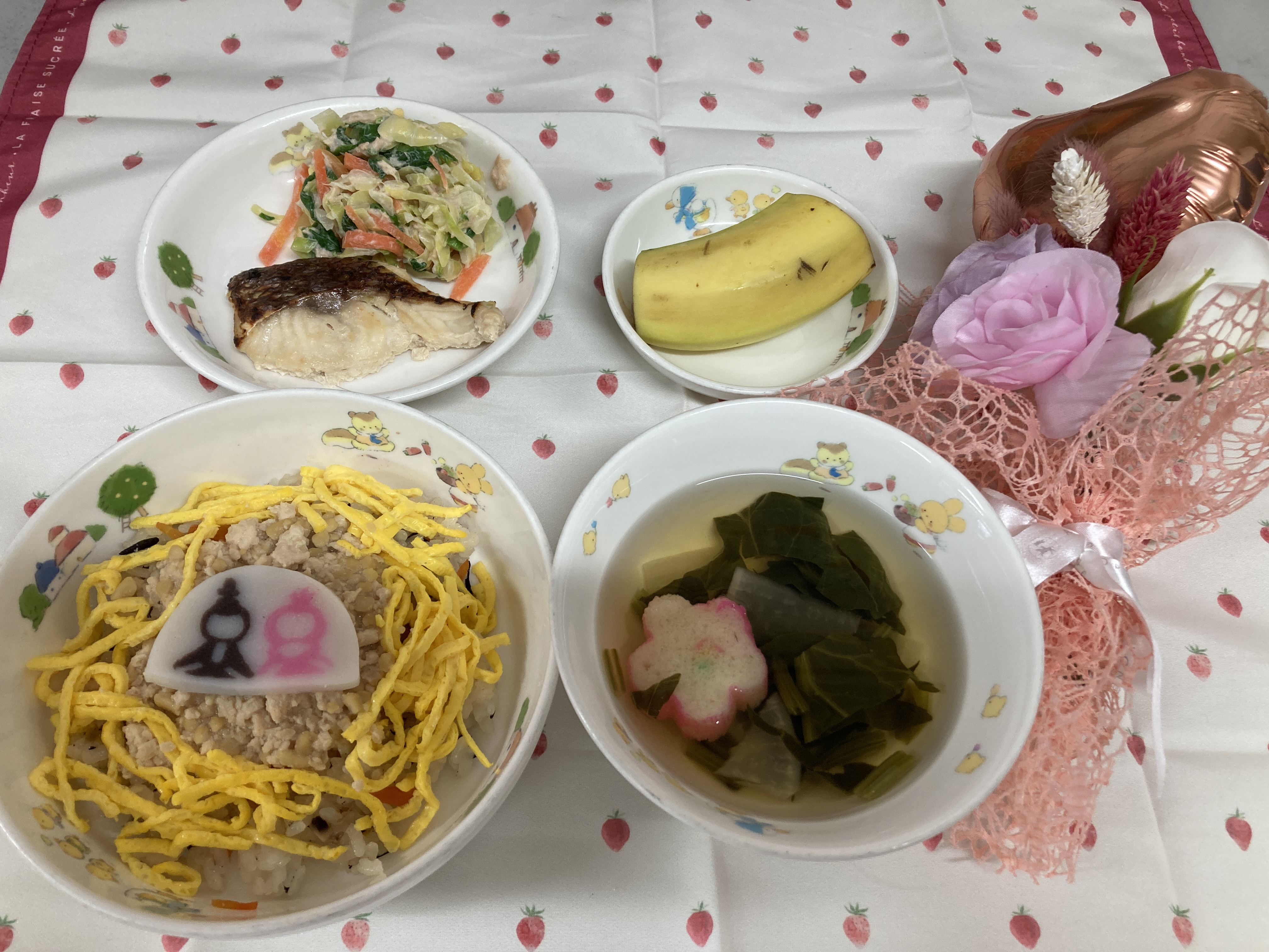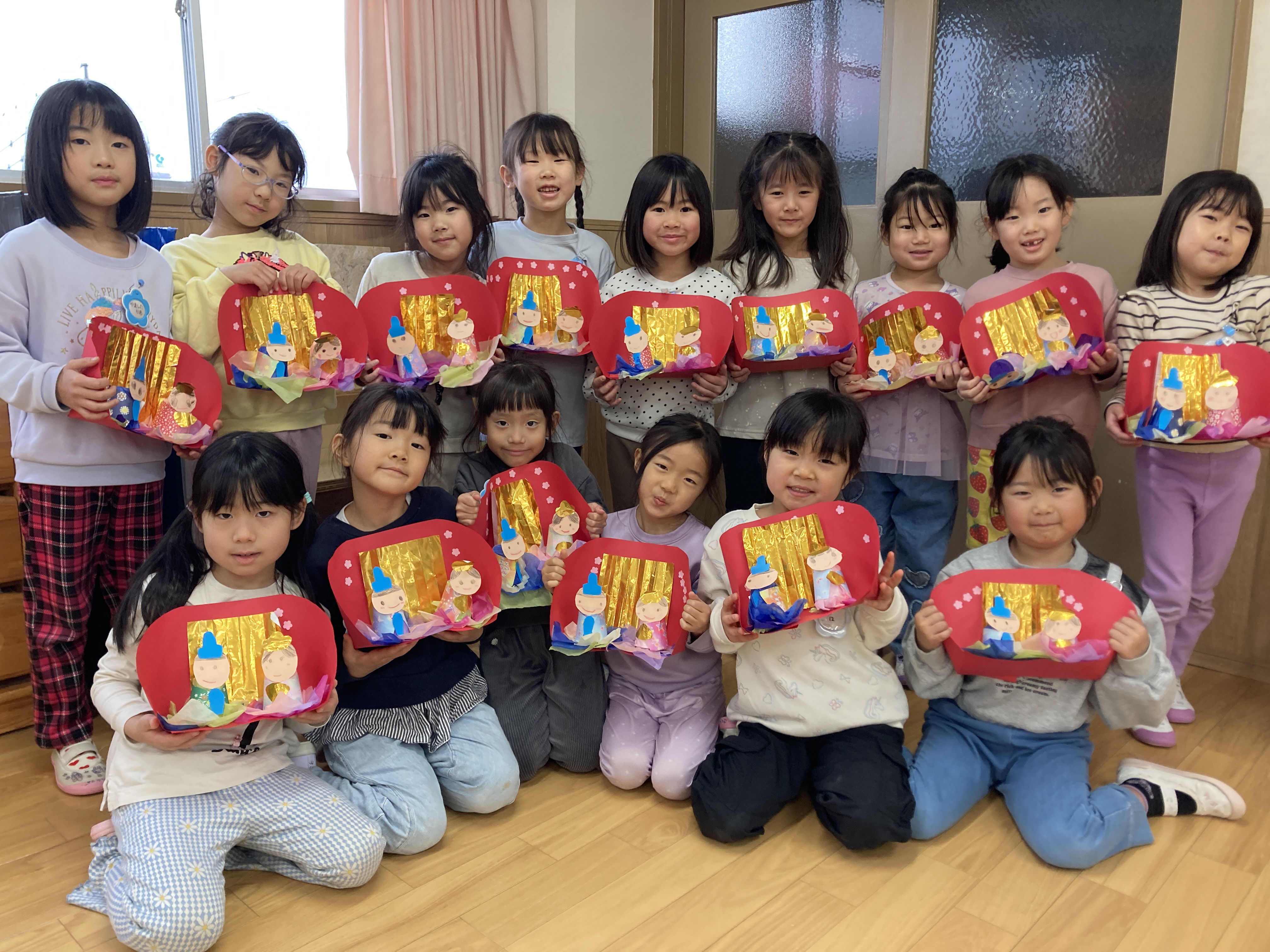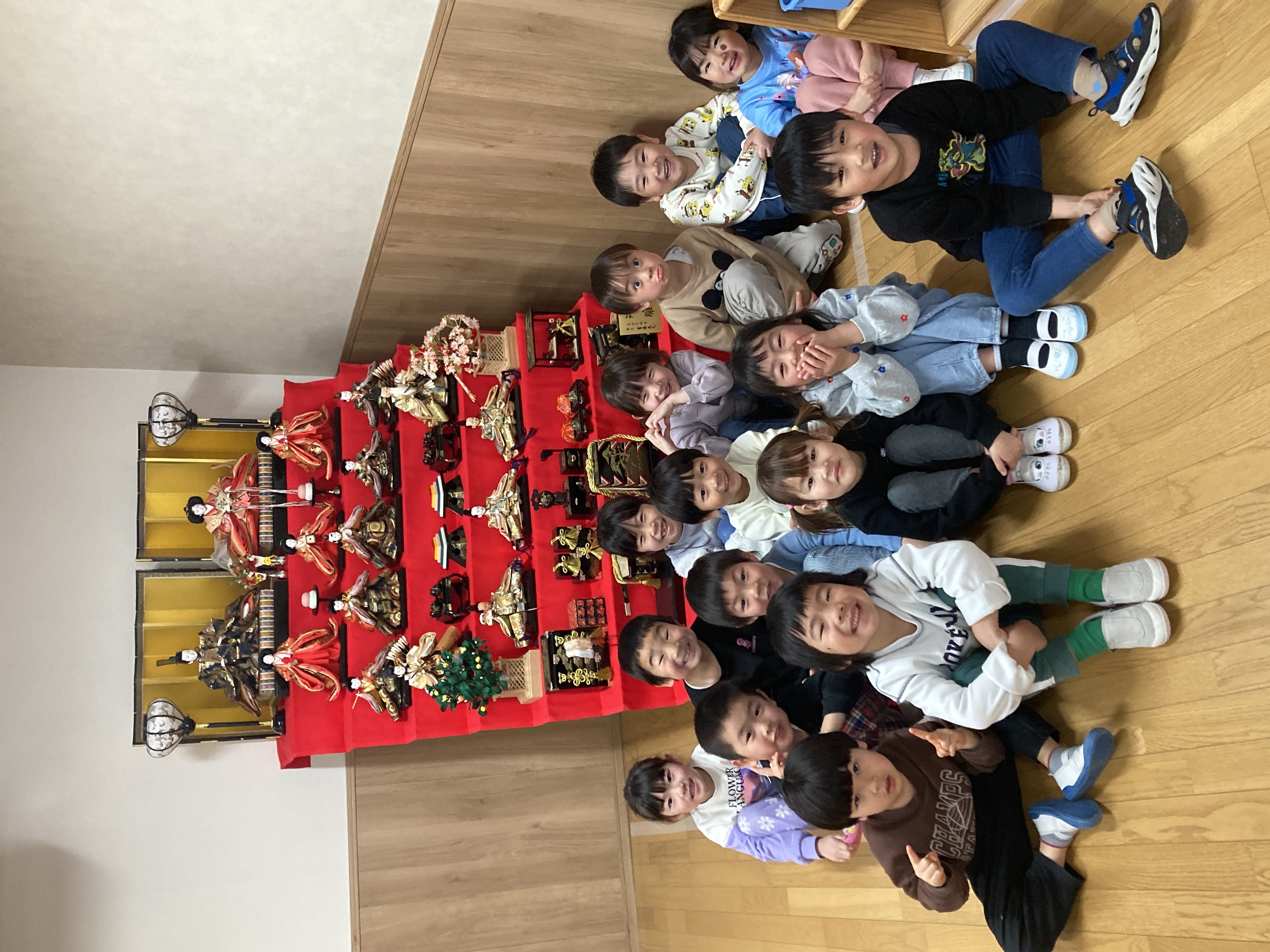 保育園でも大きな雛人形を飾り、各クラスでひな祭りにちなんだ絵本や紙芝居を見て、伝統や由来について知ったり、製作を楽しみました。