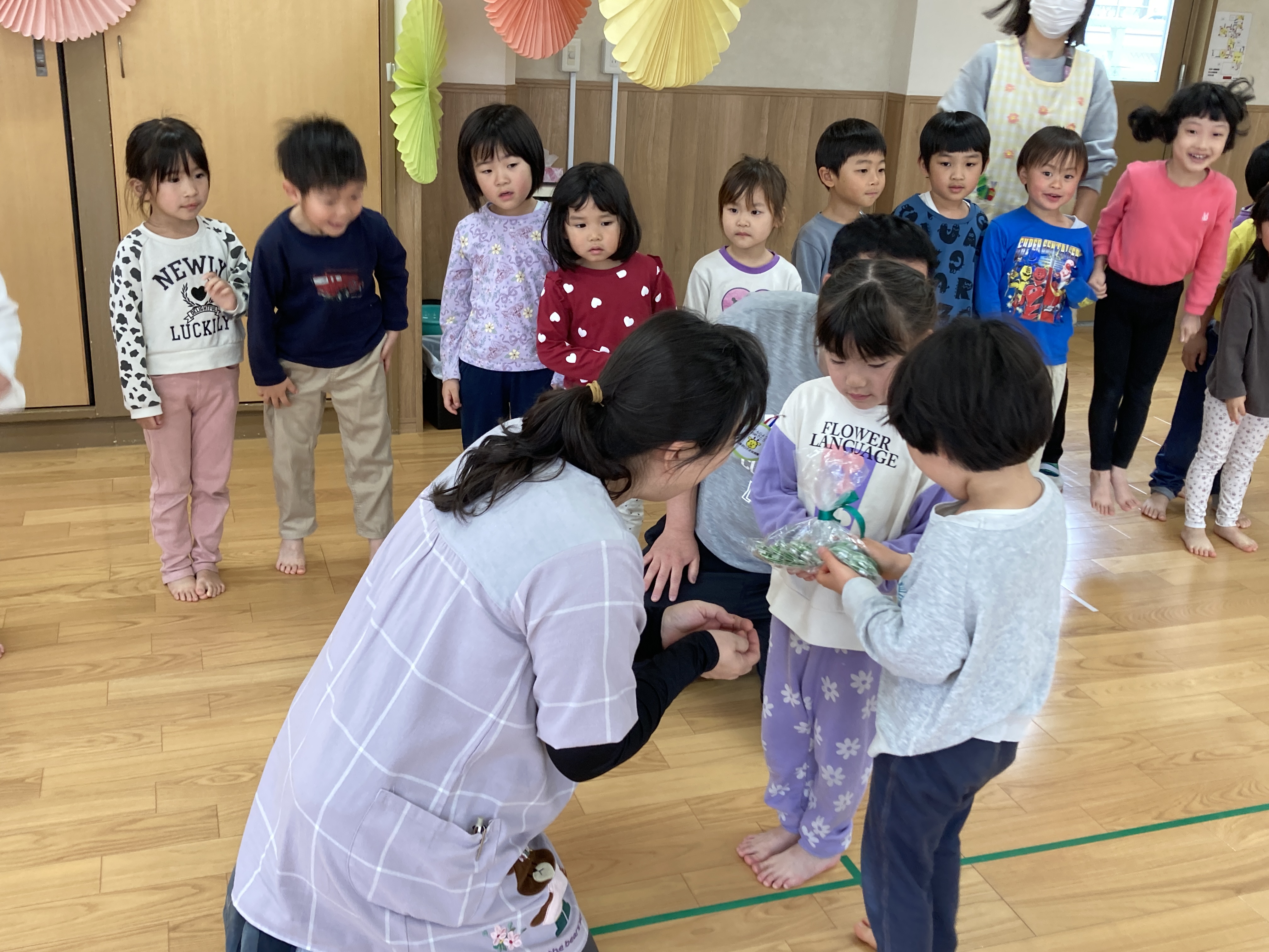 園長先生に「次は何組になるの??」と聞かれると、「○○組ー!」と嬉しそうに答えているお友達が多く、みんな進級を楽しみにしている様子でした。