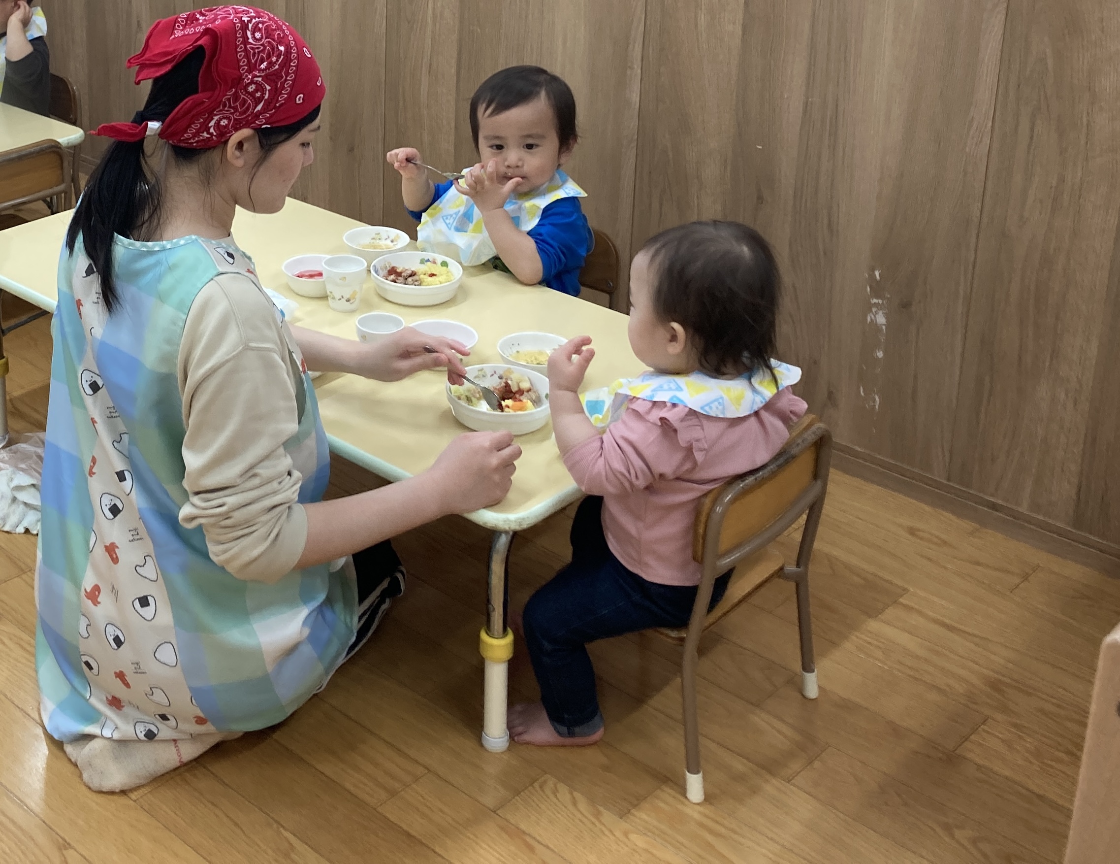可愛いひよこの顔のご飯をみて嬉しそうに頬張っていましたよ。