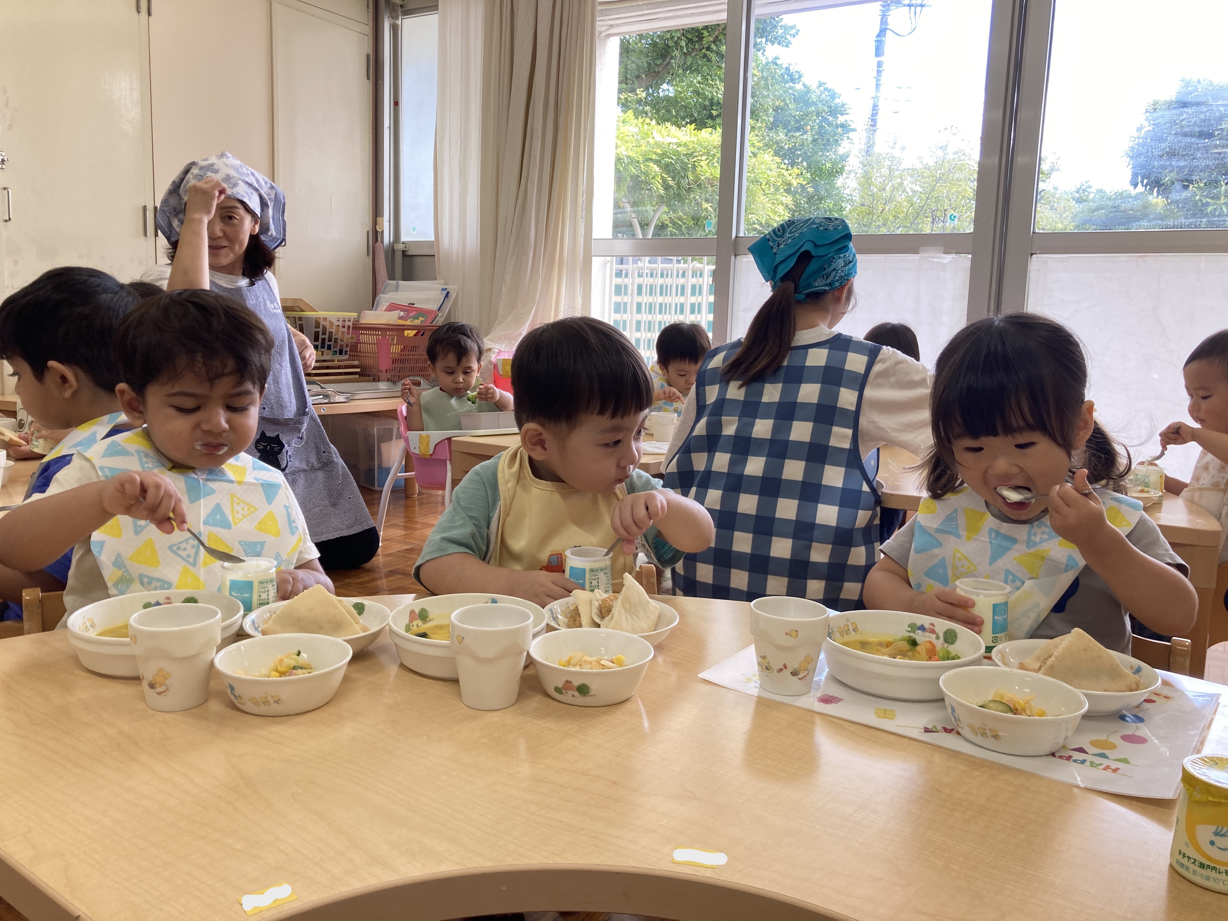 「アンパンマンかわいいね!」と進みよく食べていました。