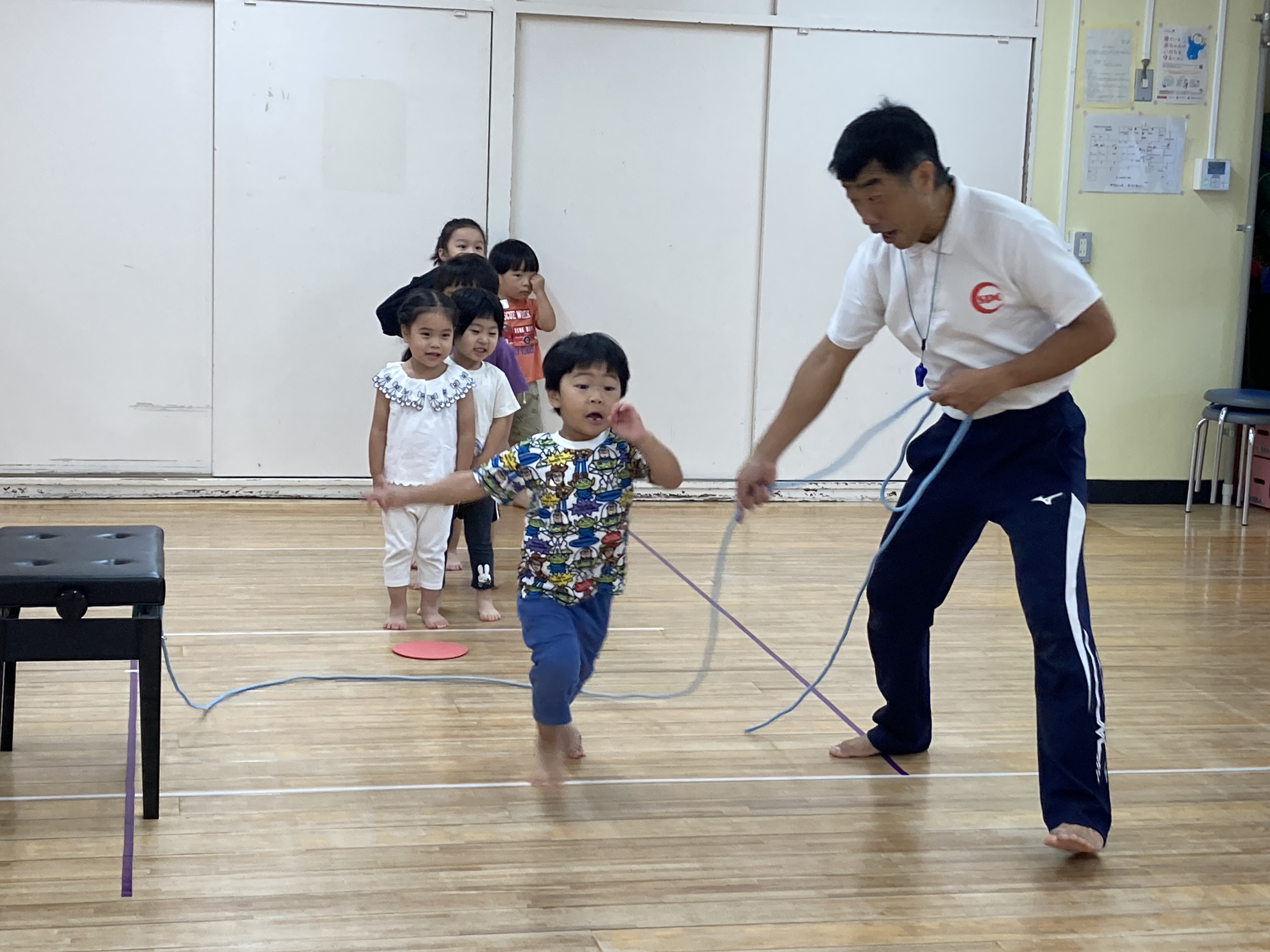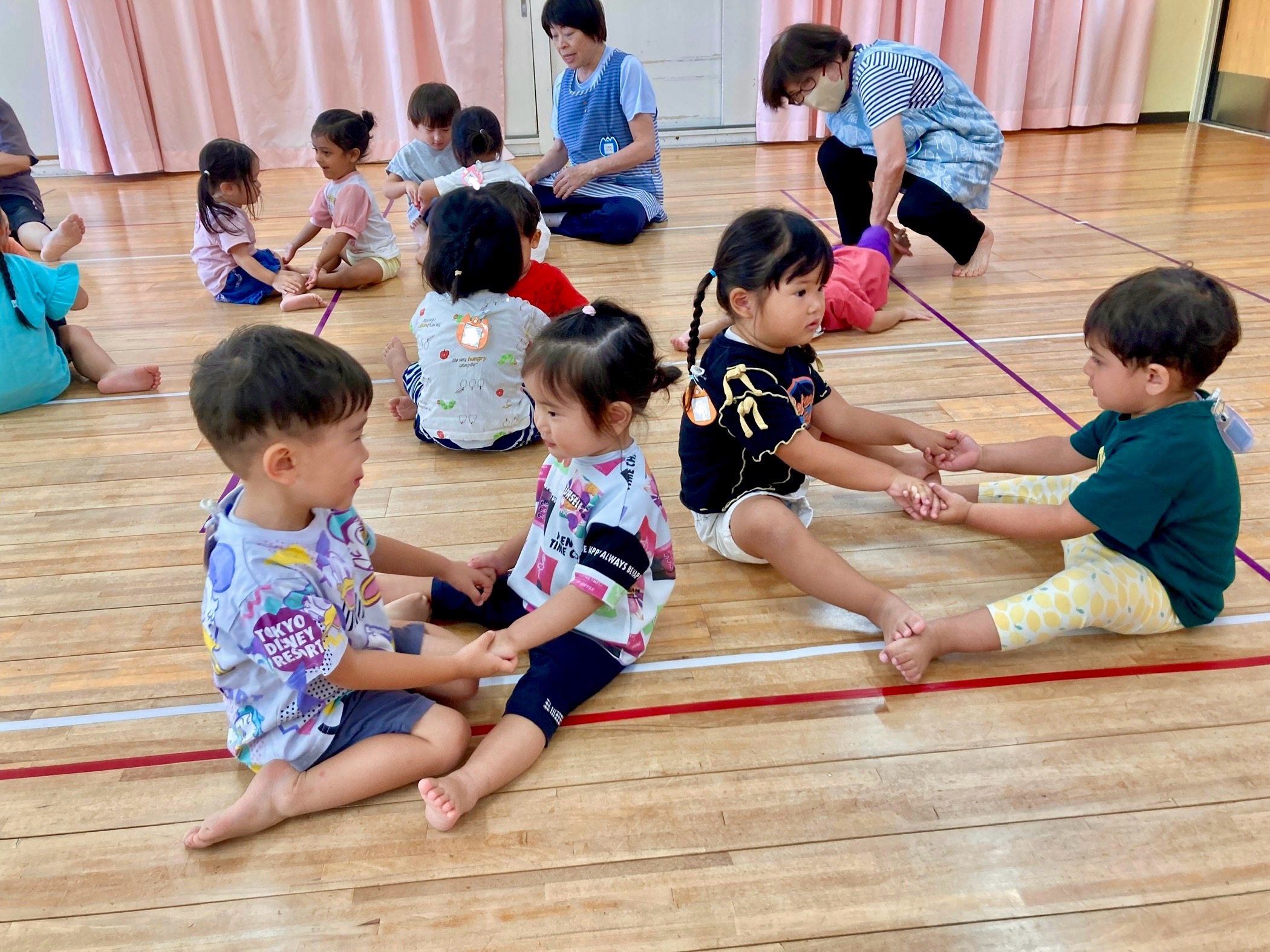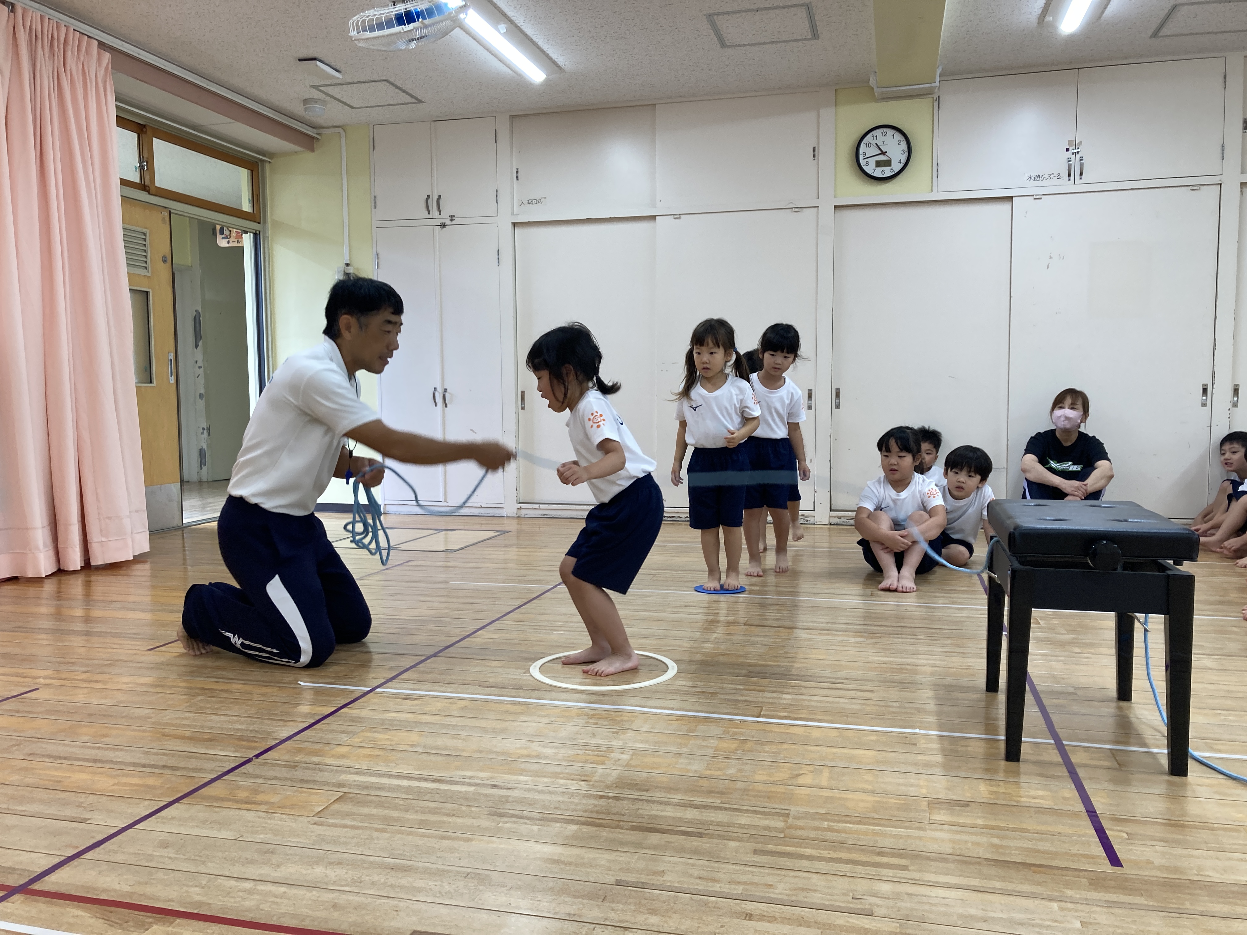 幼児クラスは、毎月1~2回”英語あそび”と”体育あそび”を通して、