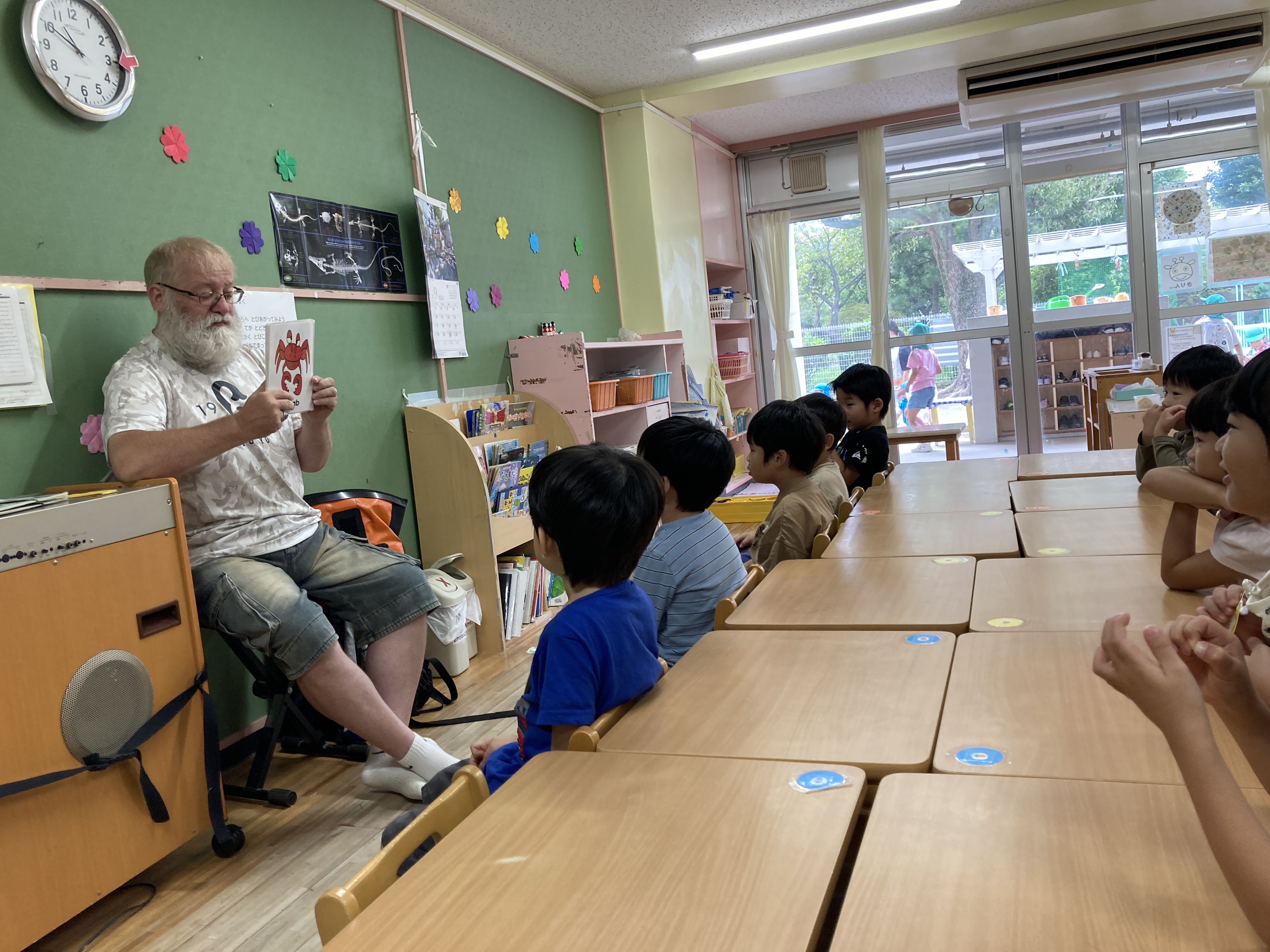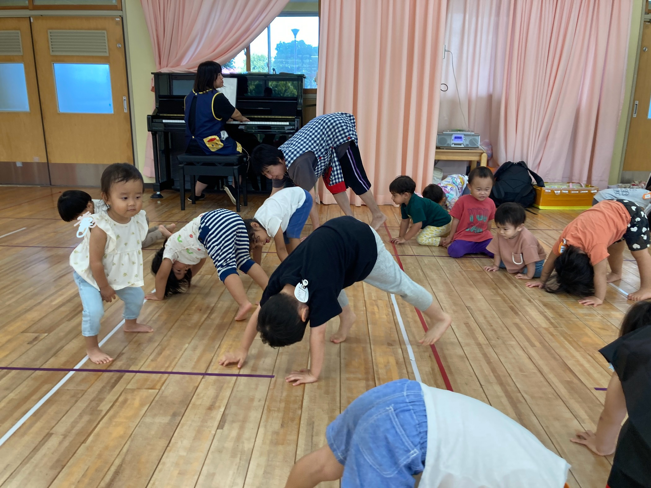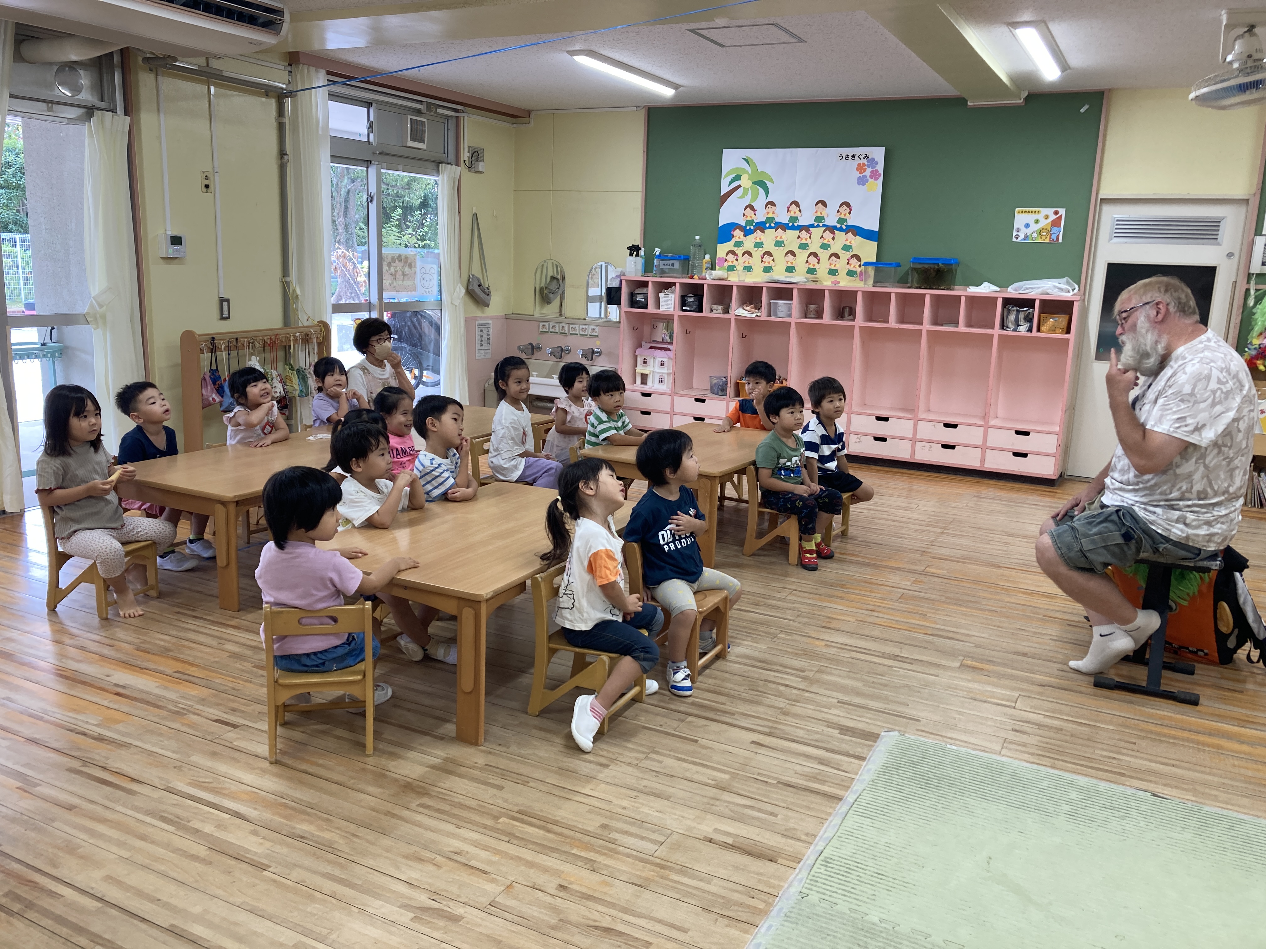 幼児クラスは、毎月1~2回”英語あそび”と”体育あそび”を通して、