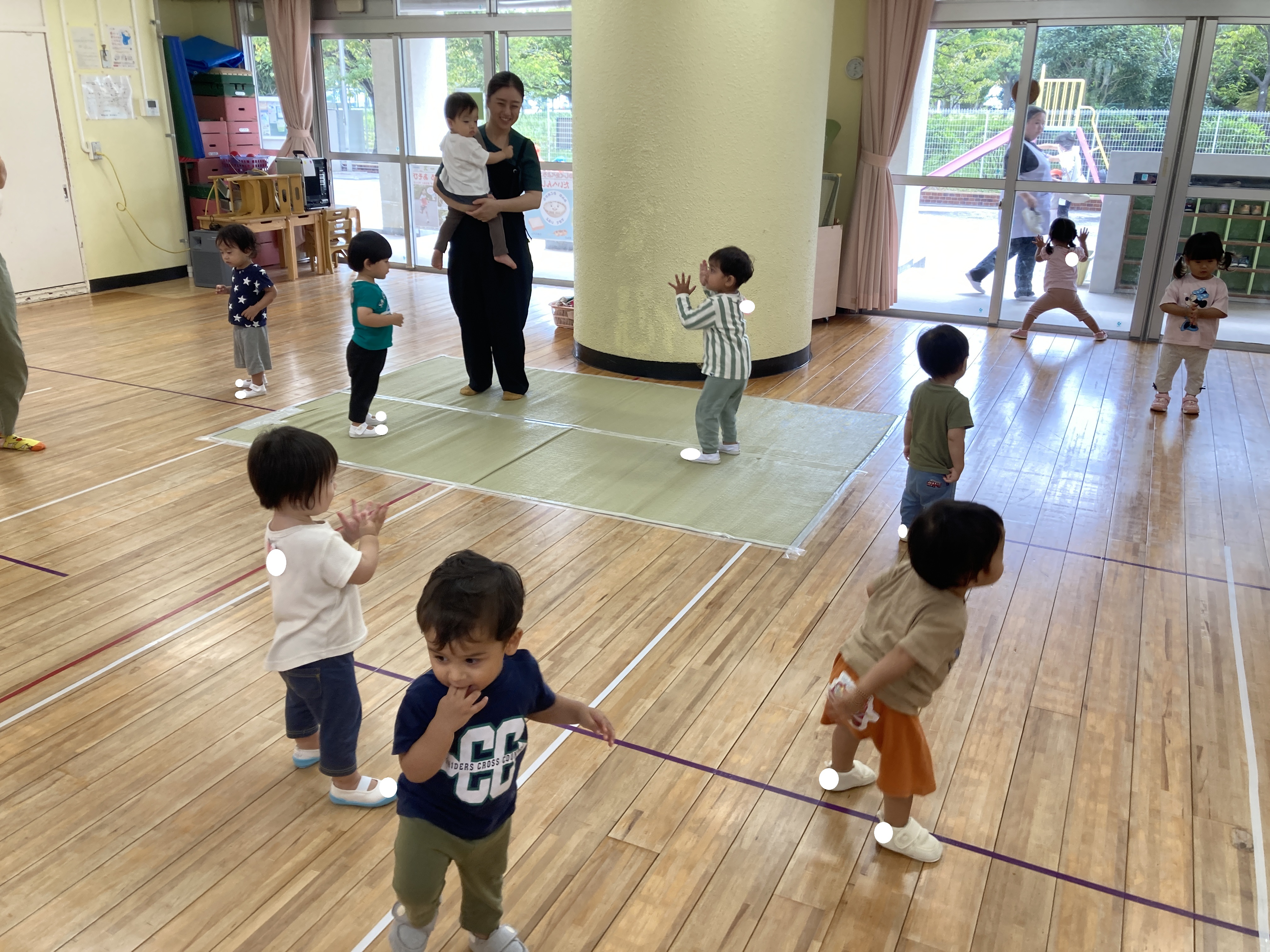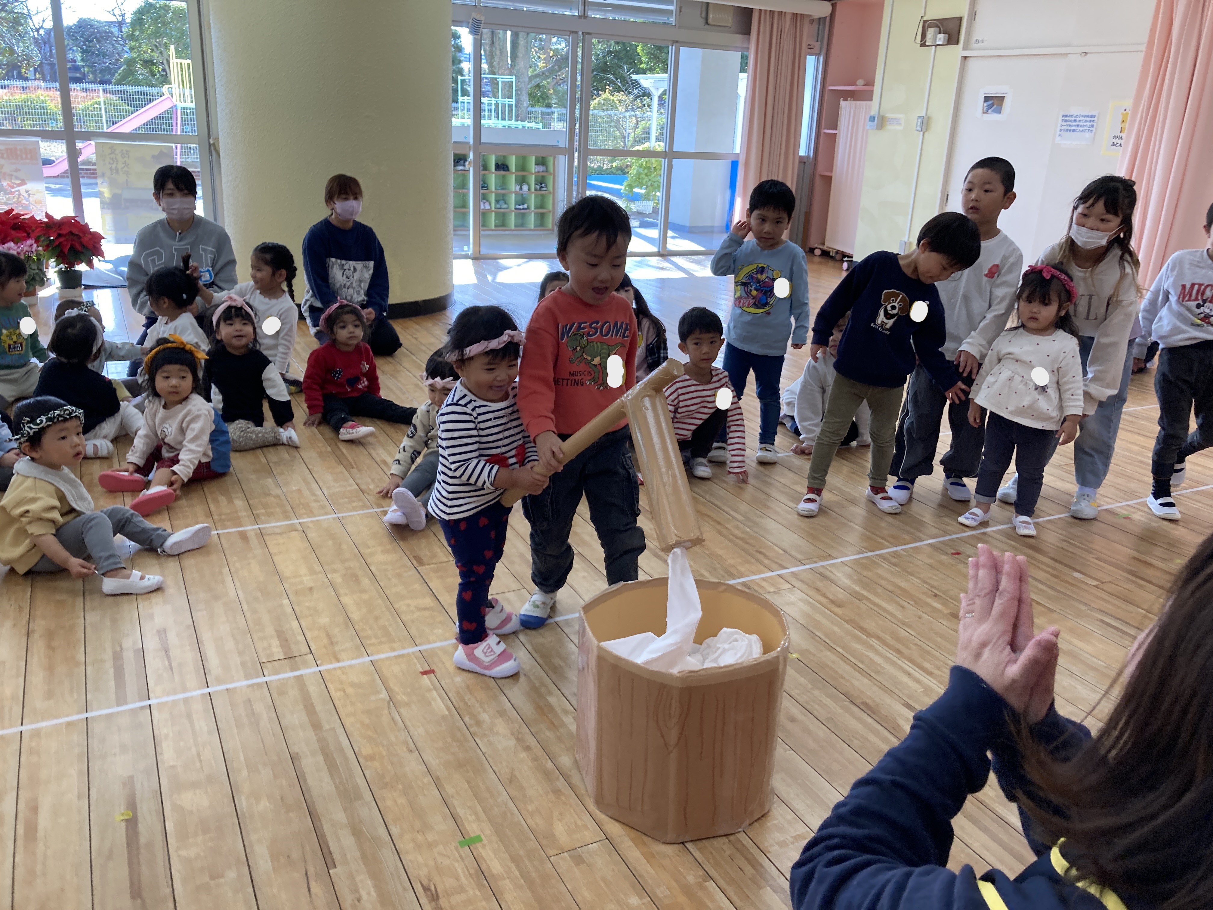 リズム遊びやバスごっこ、行事のお餅つきあそび等