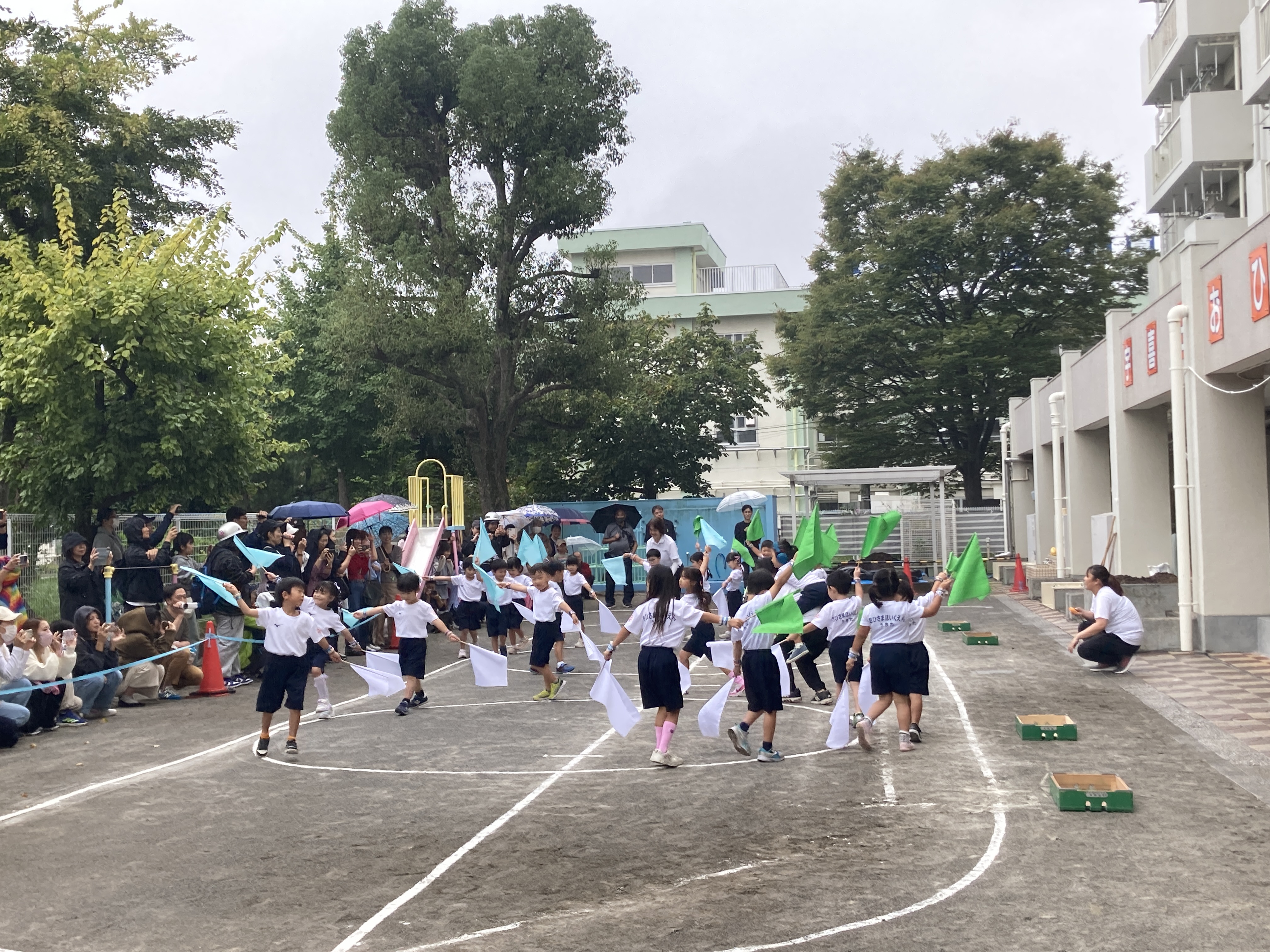 雨により順延となった5歳児らいおん組の運動会。