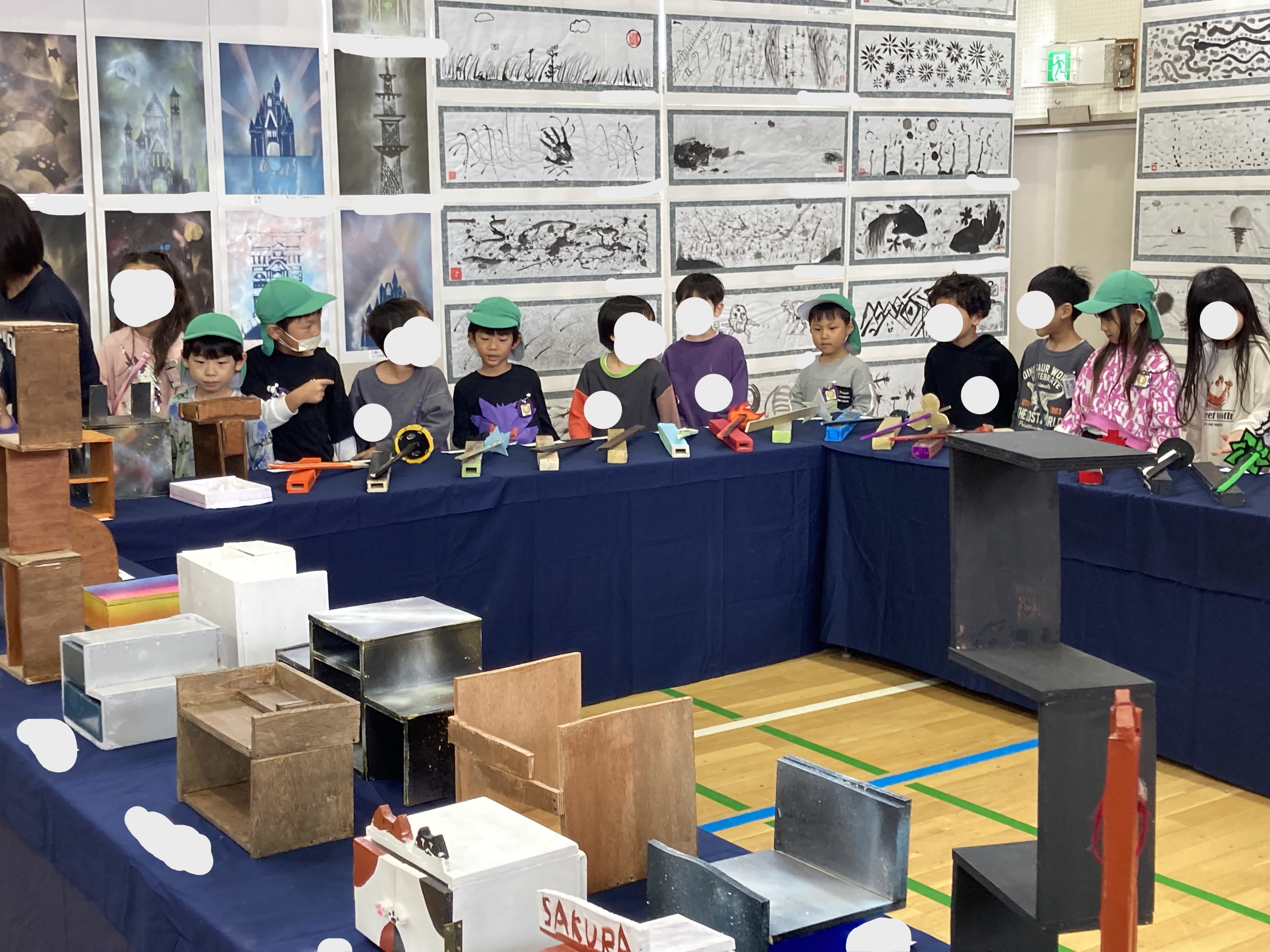 小学生にエスコートしてもらいながら展覧会の見学に行きました。