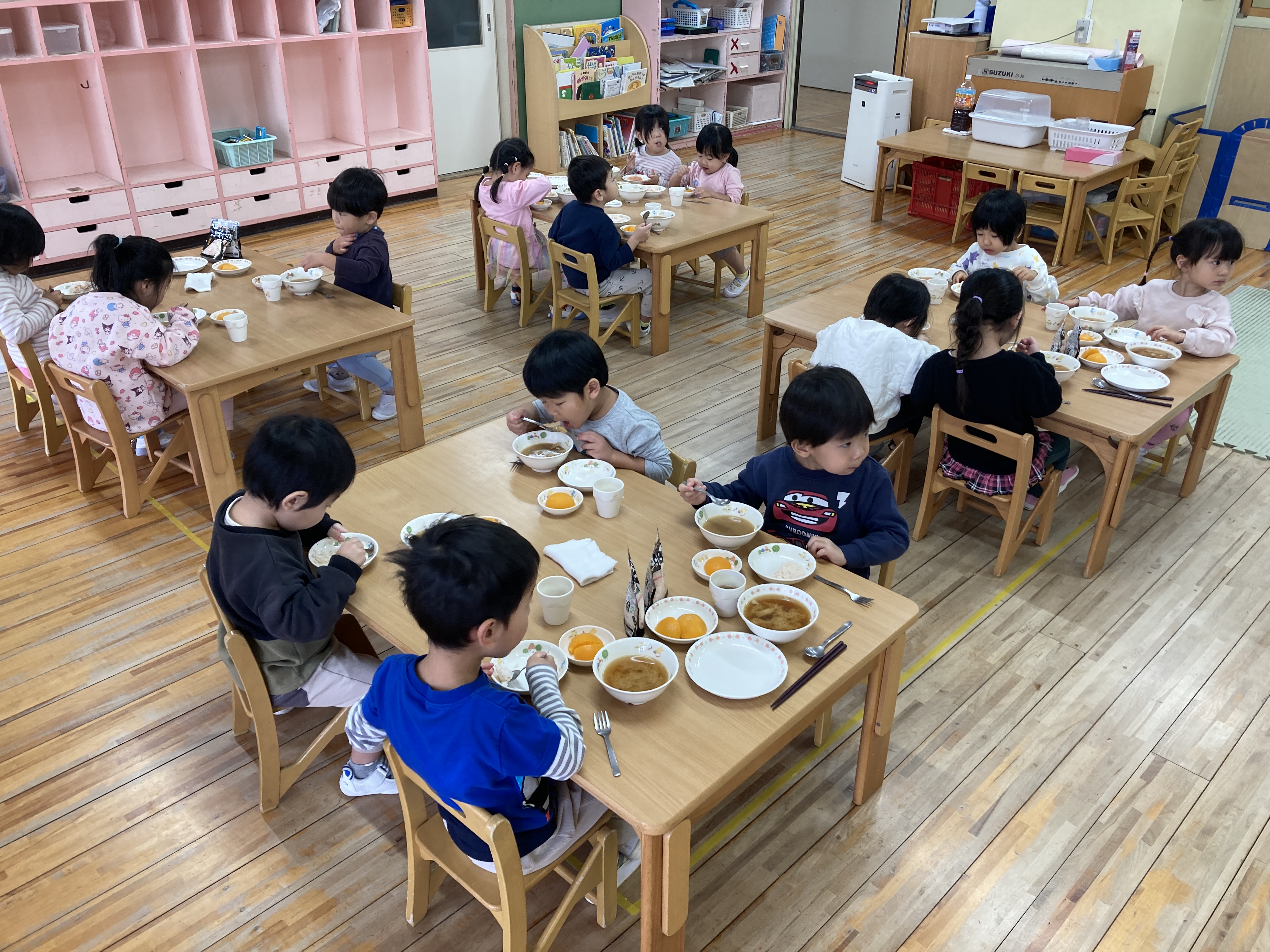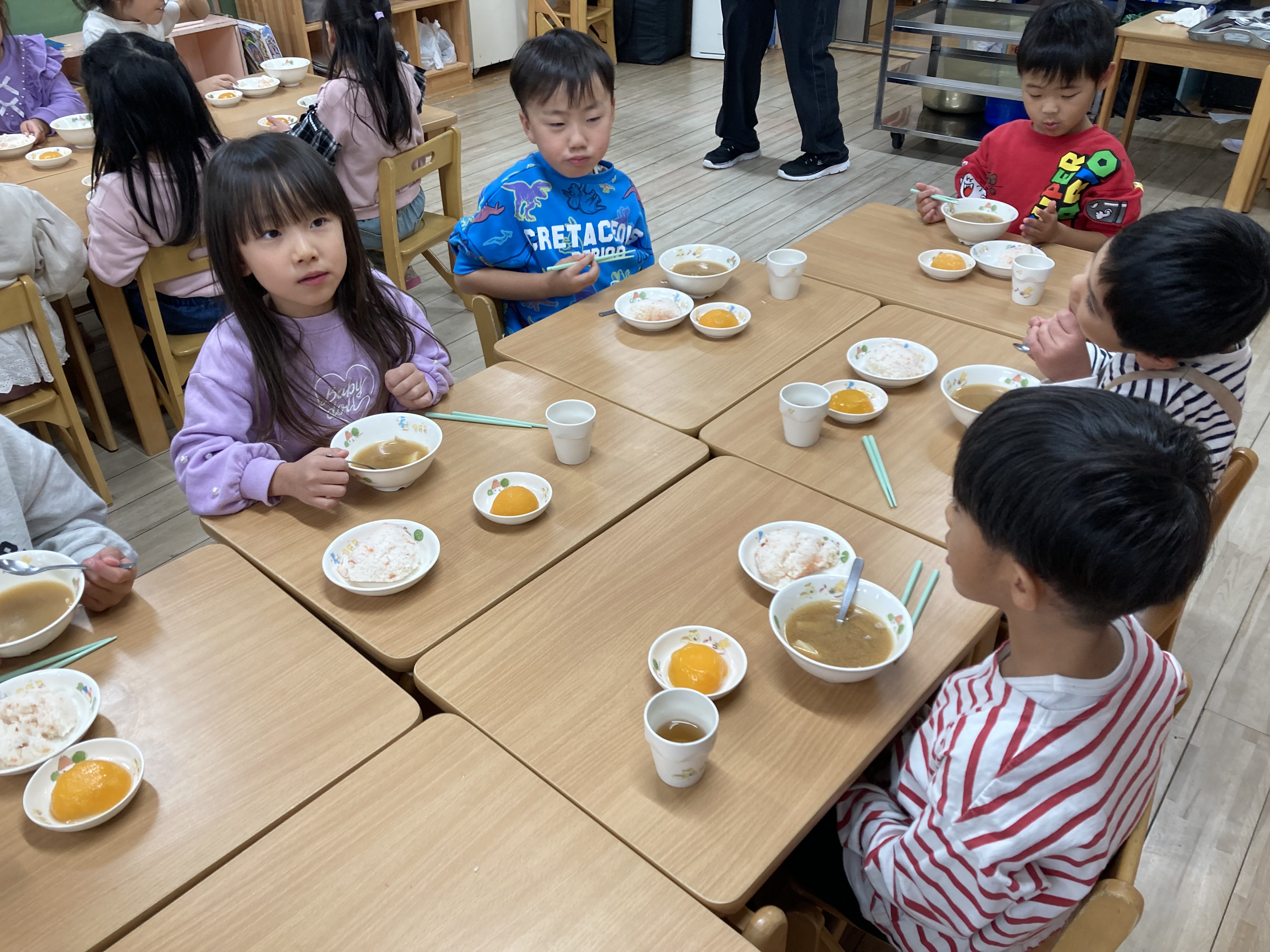 そして給食では、実際に園に備蓄してある非常食を食べてみました。
