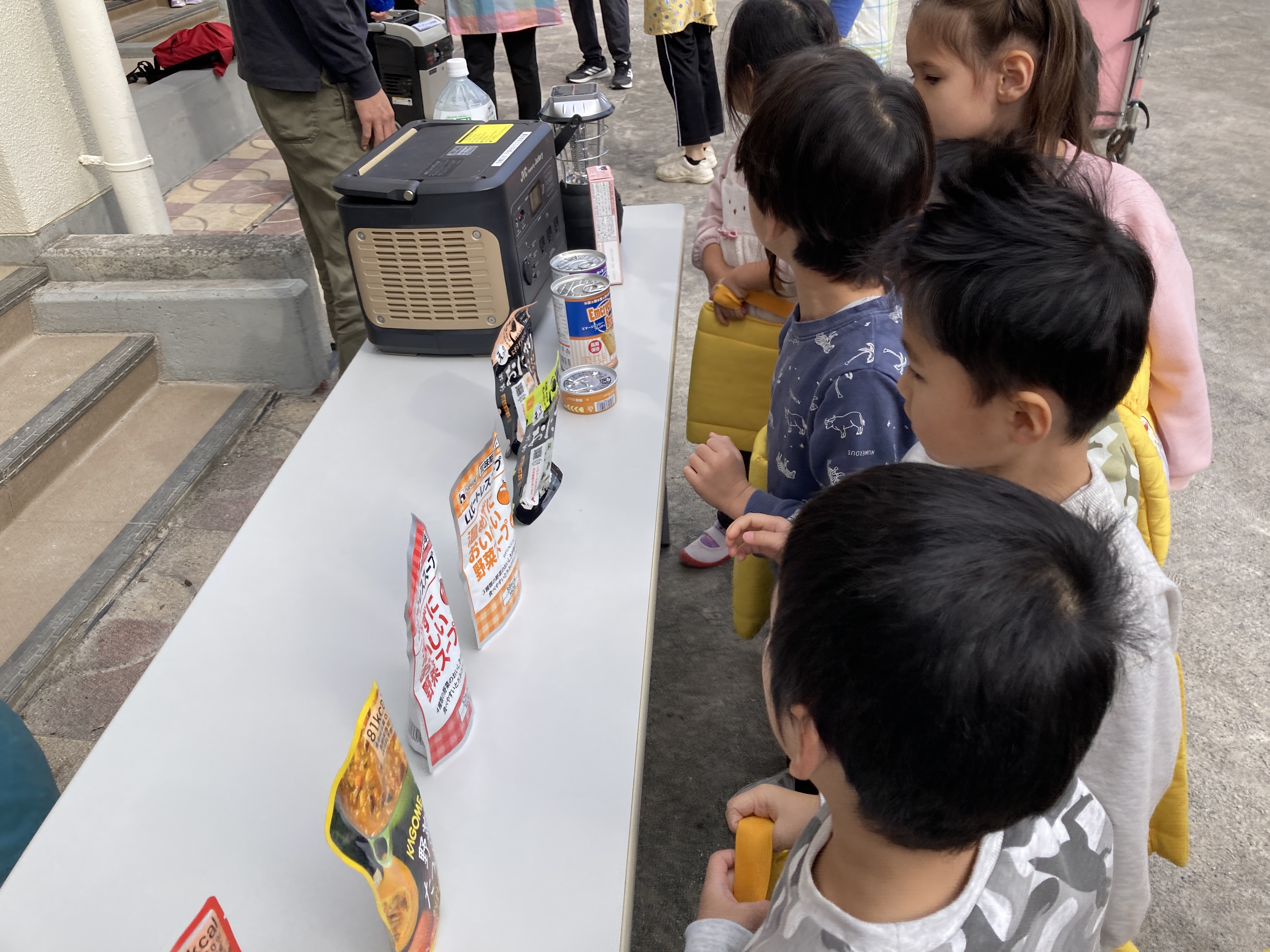 保育園に戻った後は、非常食や発電機等の備蓄品の確認をしました。