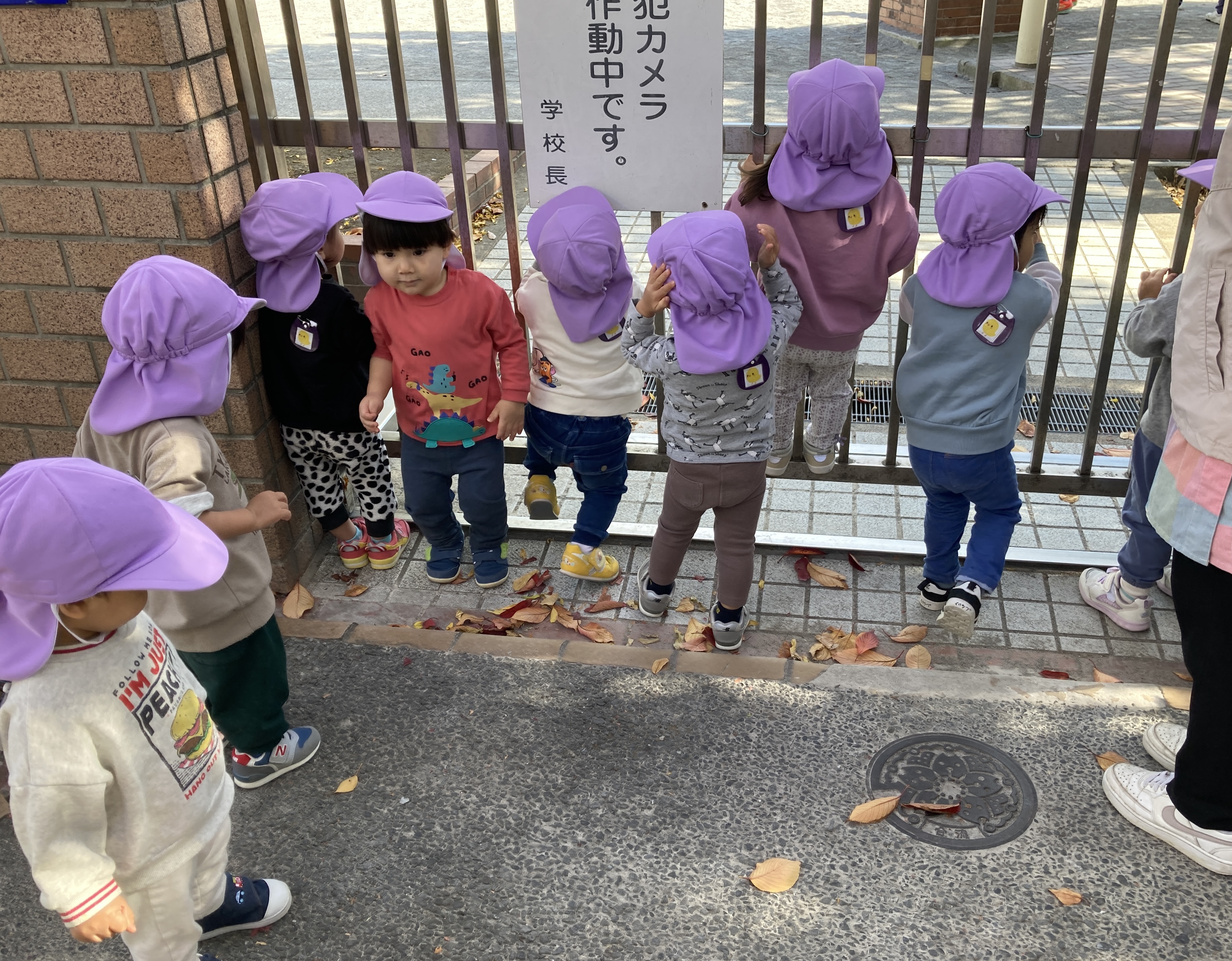 園周辺を歩き、隣の区立第五葛西小学校まで散歩に行きました。