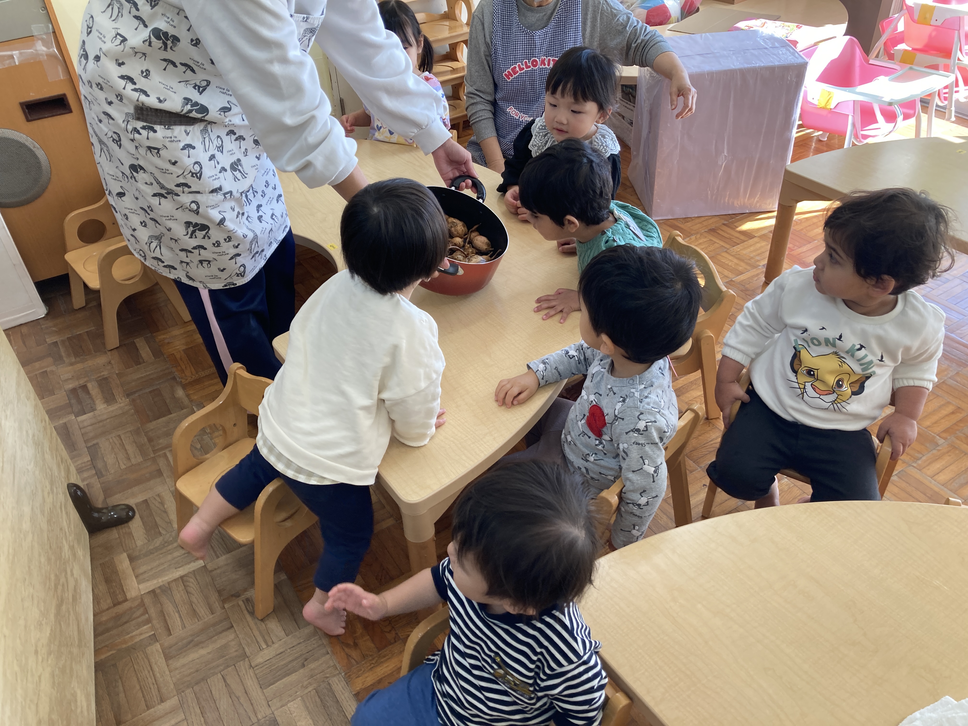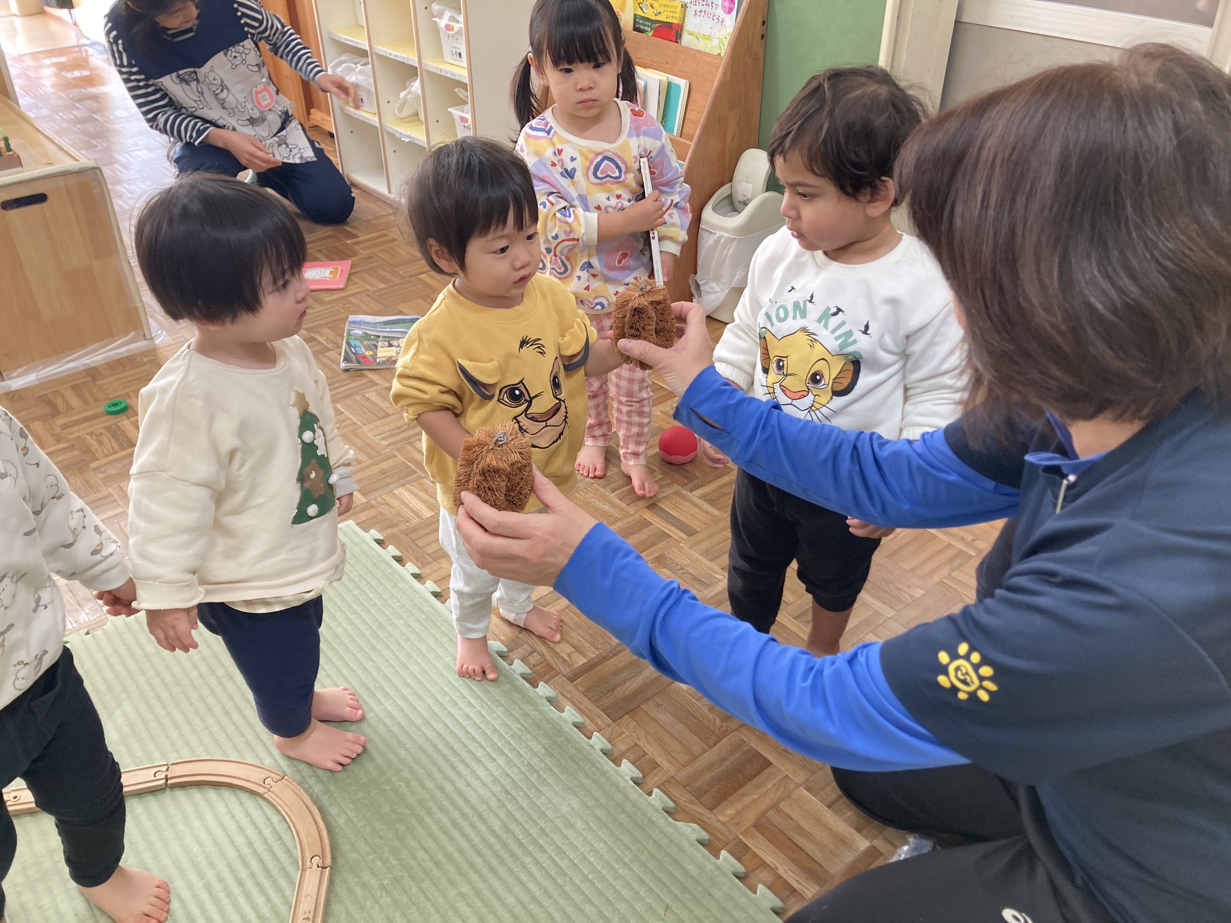 1歳児 ひよこ組のお友達にとっては初めての体験。