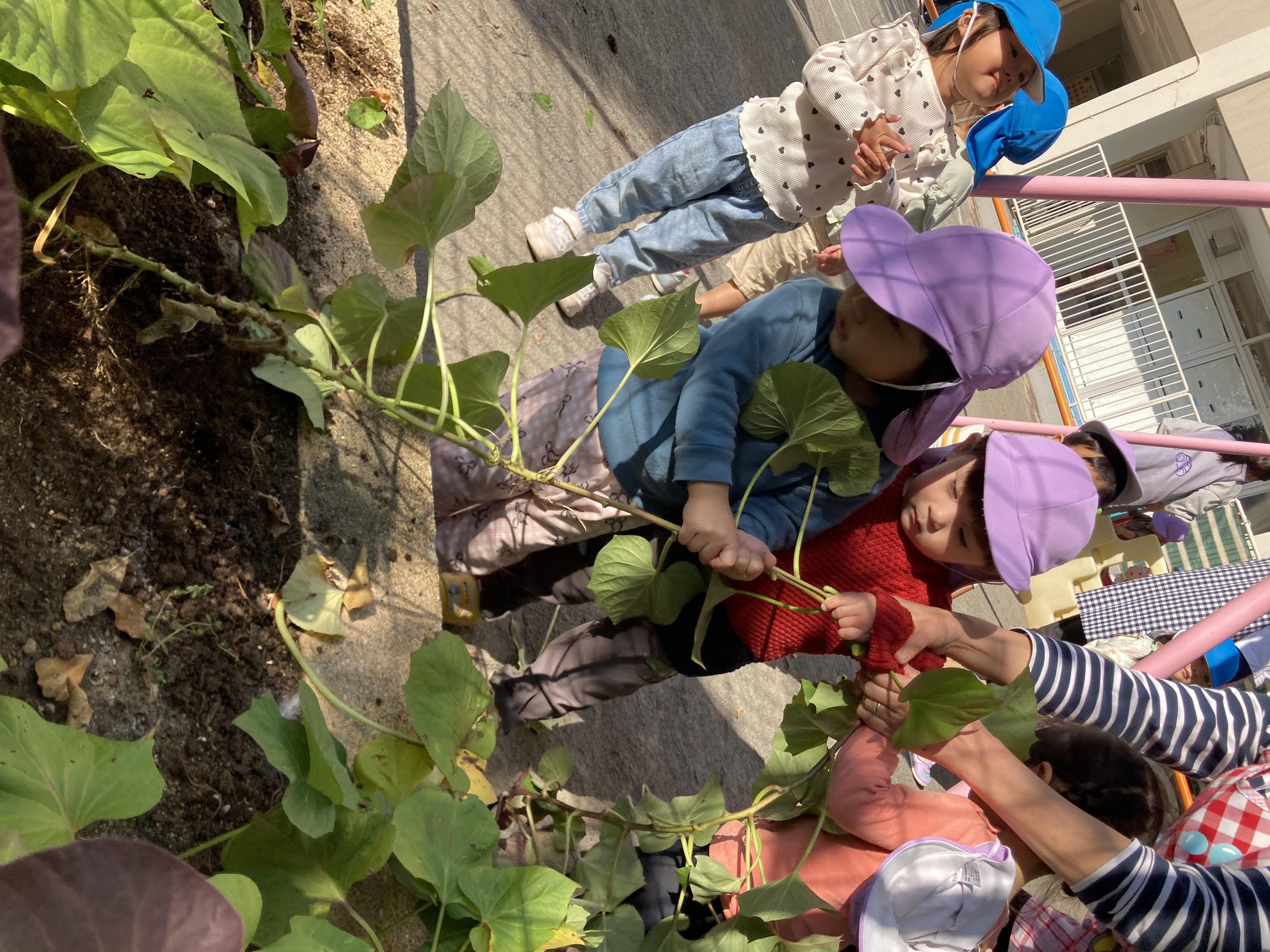 暑い夏が過ぎて食欲の秋となり、サツマイモのツルや葉もすくすくと伸びてきて、