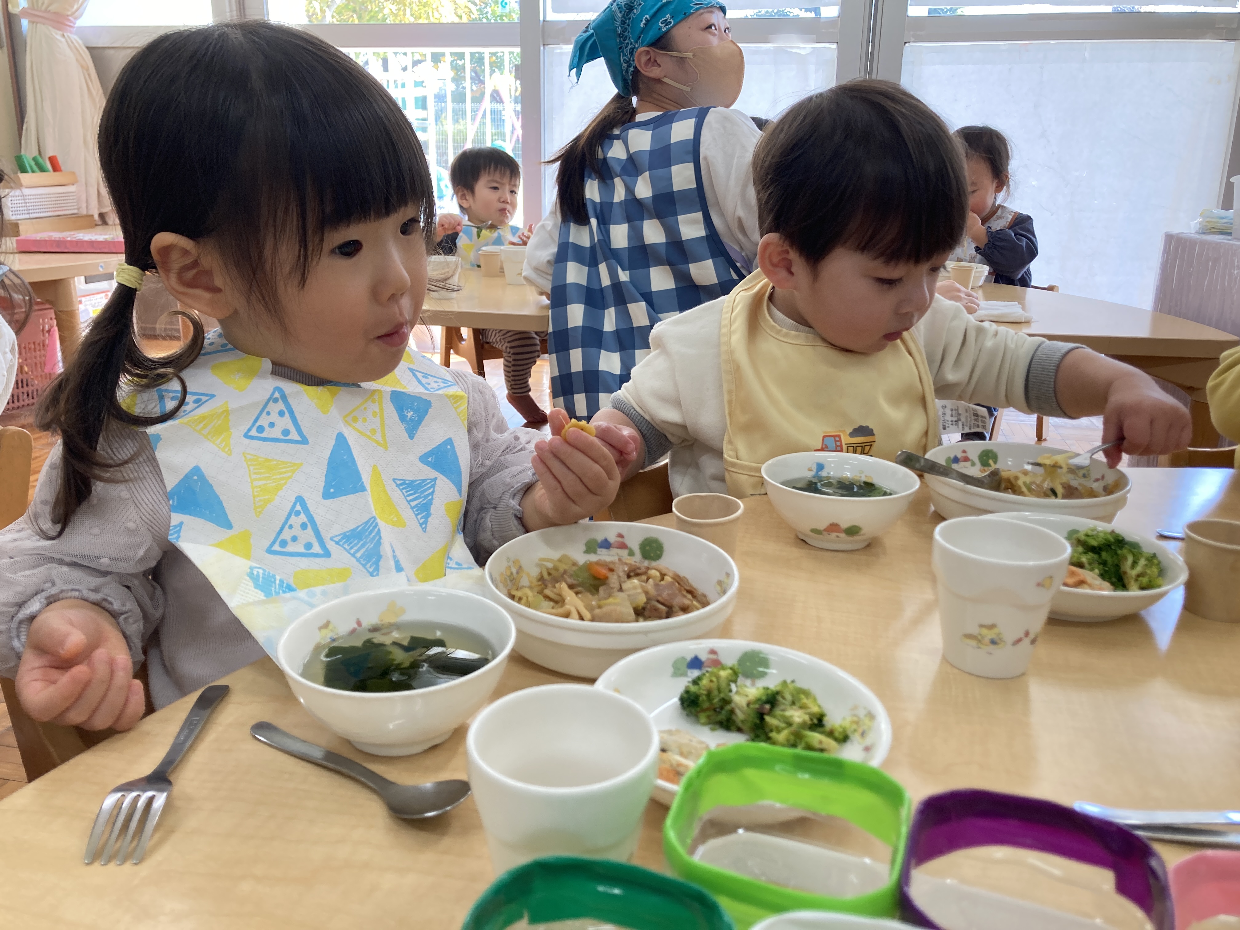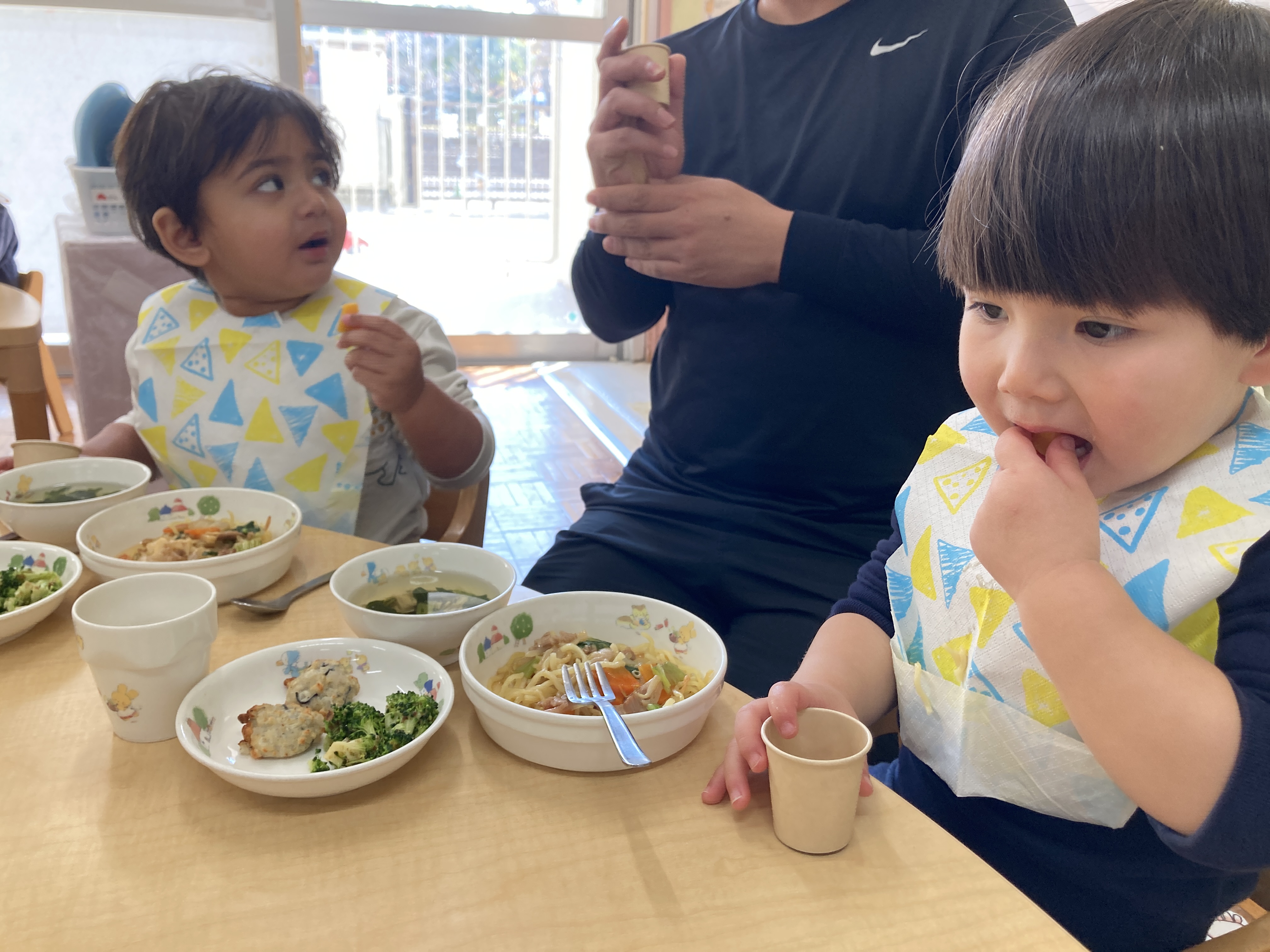 みんなで「いただきます」をすると「おいしいね」「もっとたべたい」「おかわり~」と