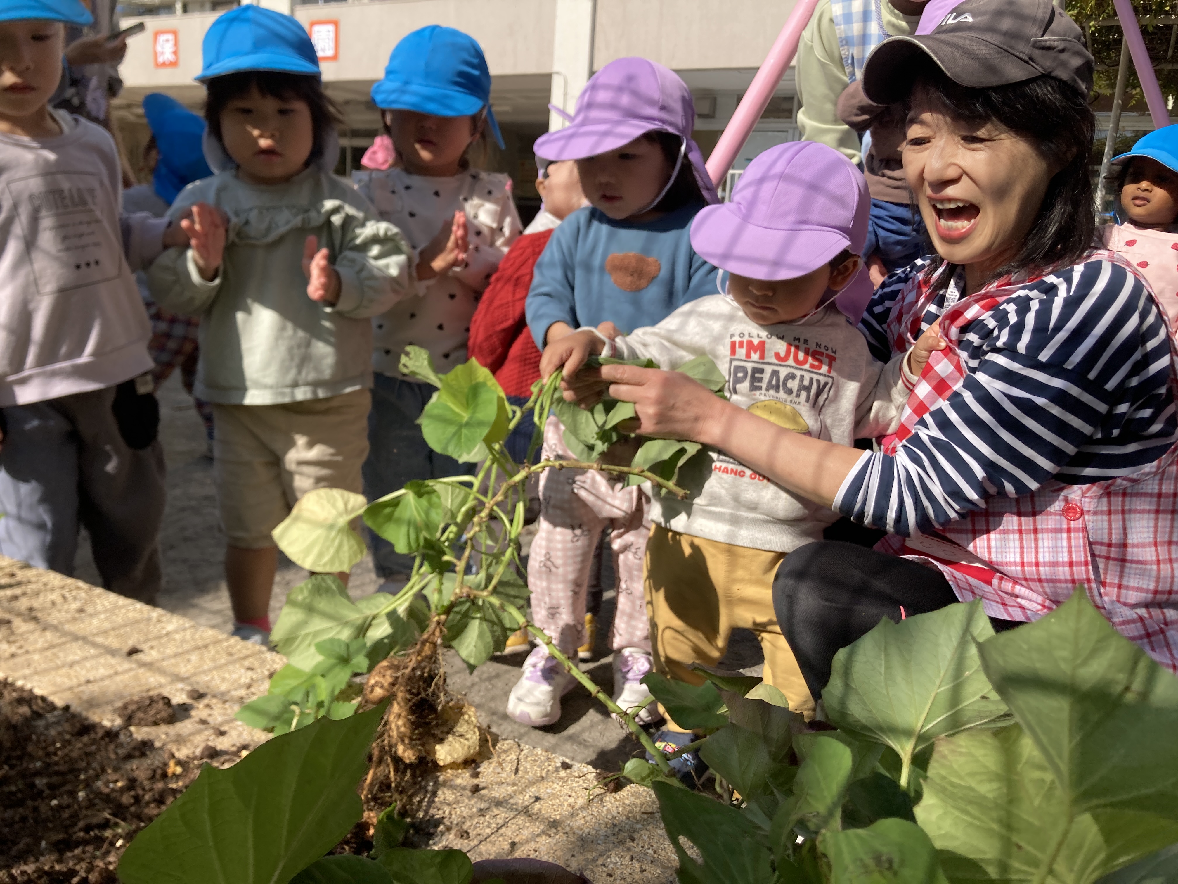 サツマイモの絵本を見たり、お話を聞いたりしながら収穫を待ち望み、