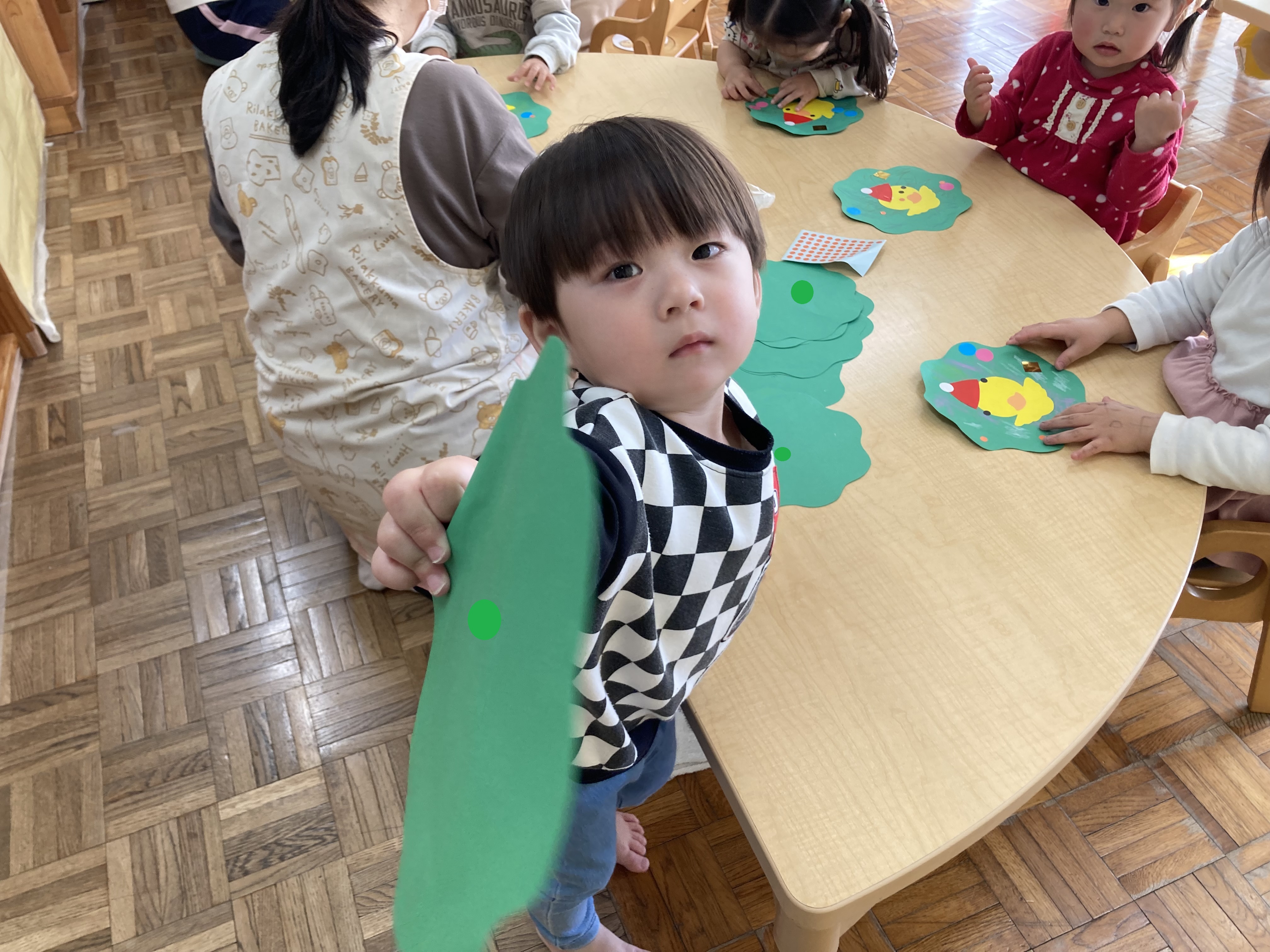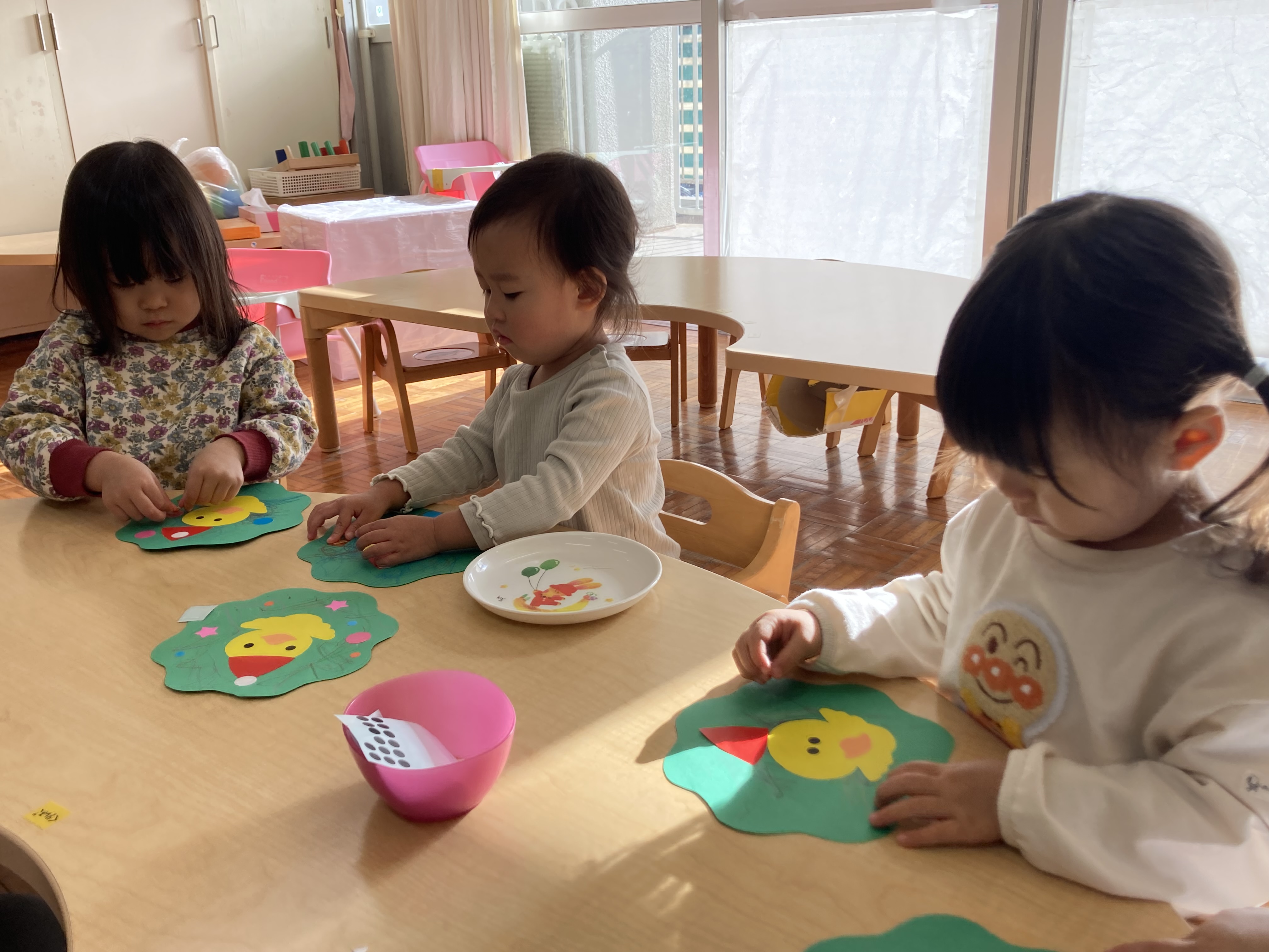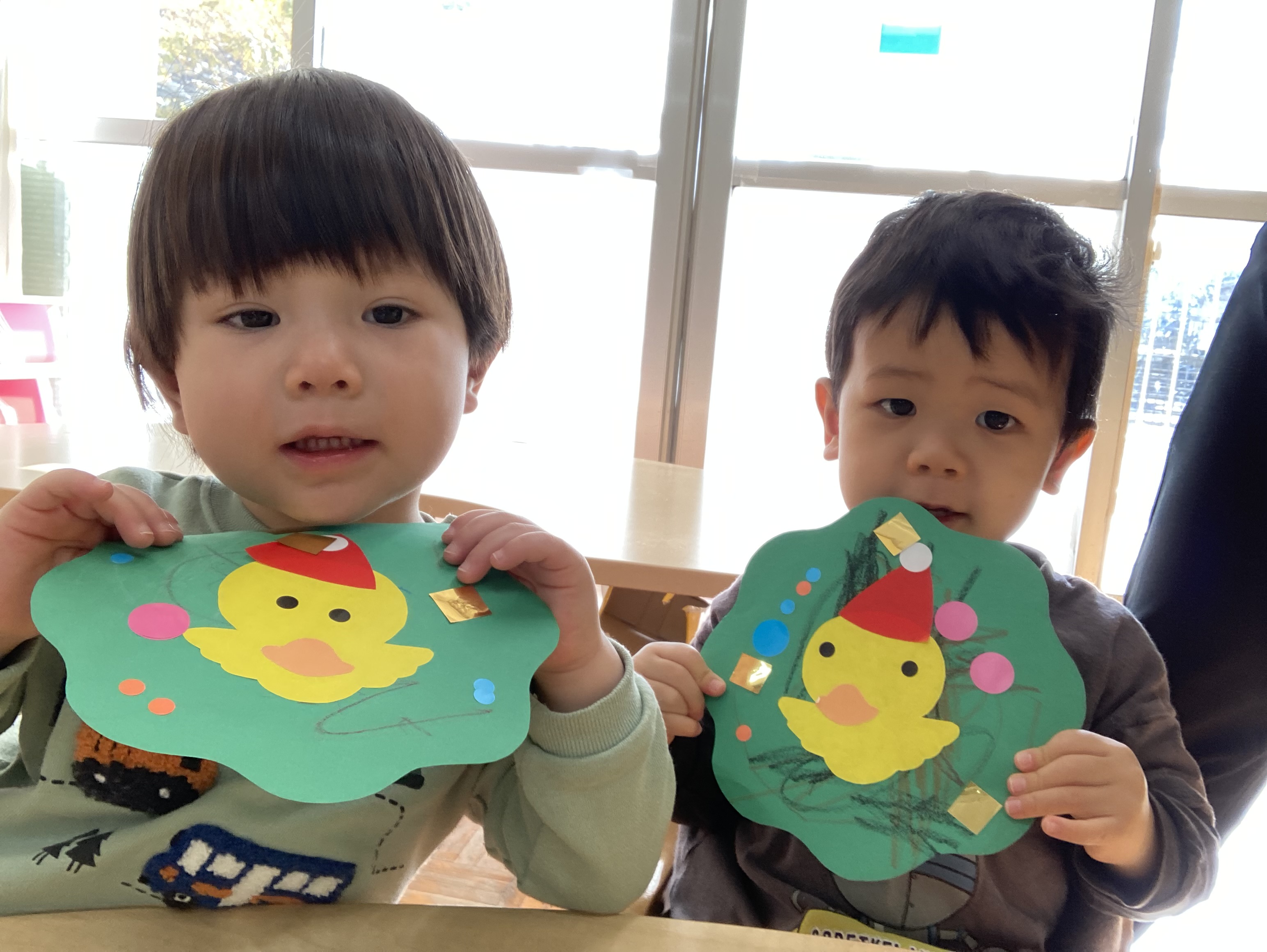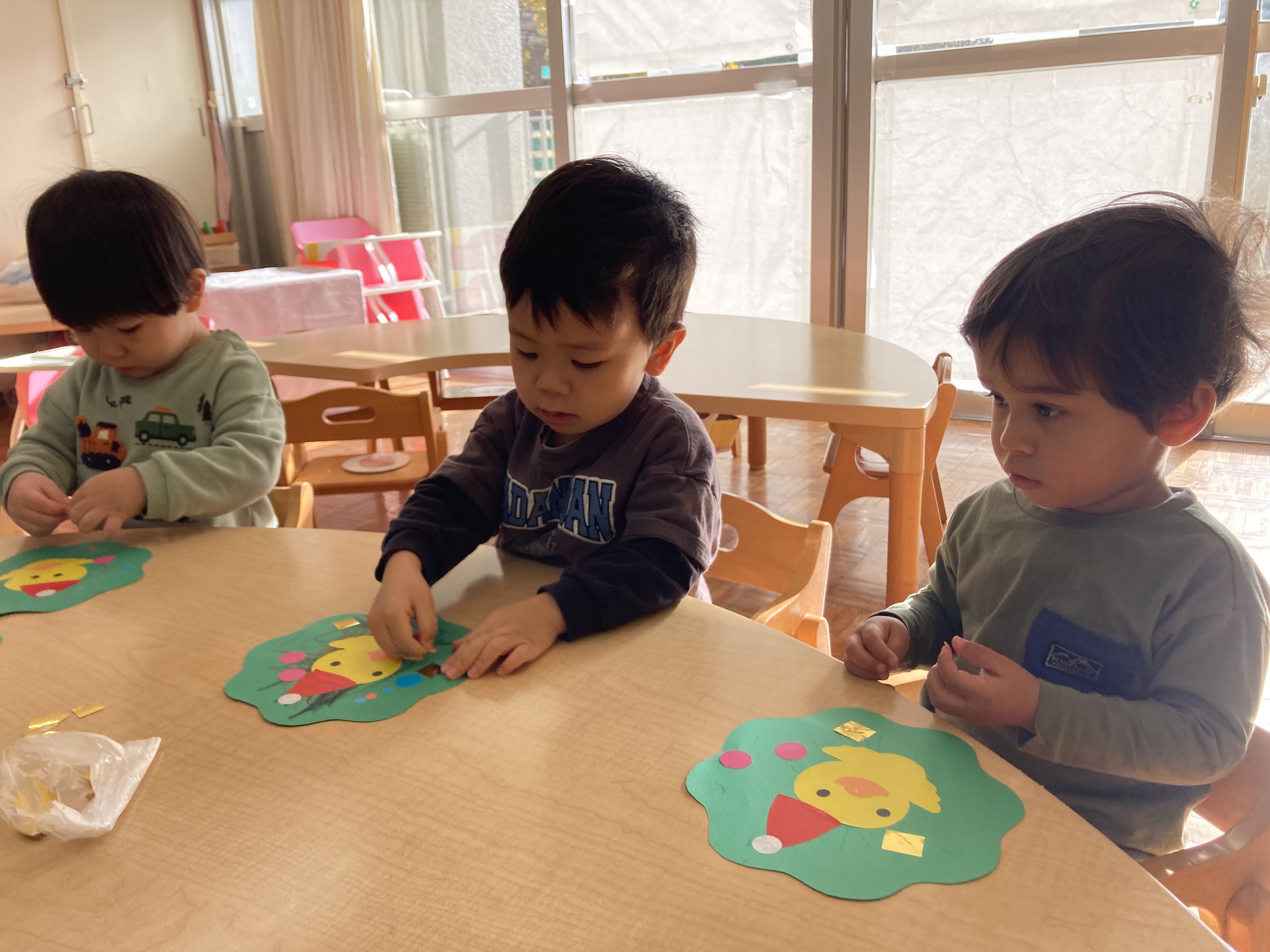1歳児 ひよこ組のお友達もクリスマス制作を楽しみました。