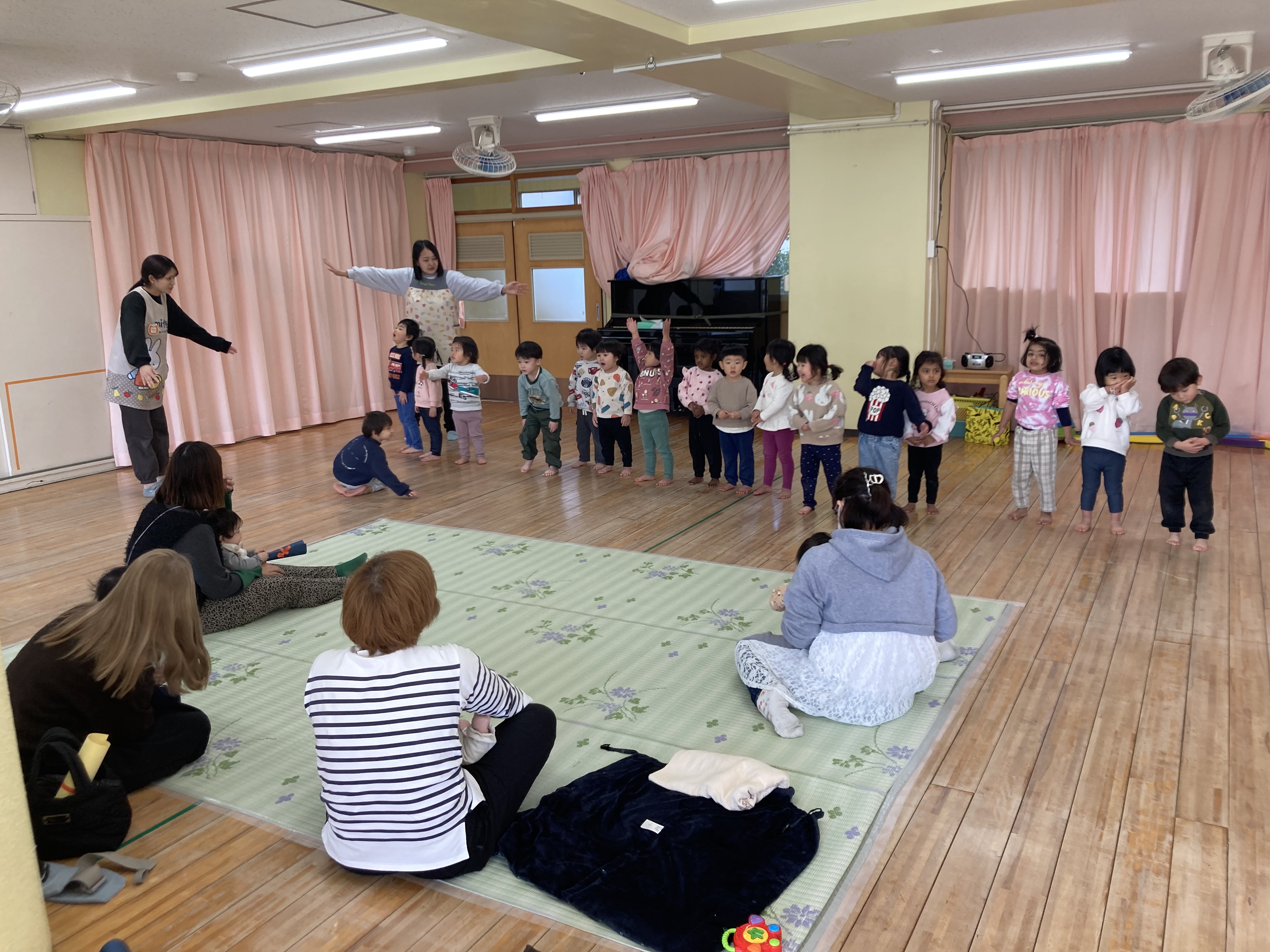 その後は2歳児あひる組のお友達が来て、いつも部屋で踊っている