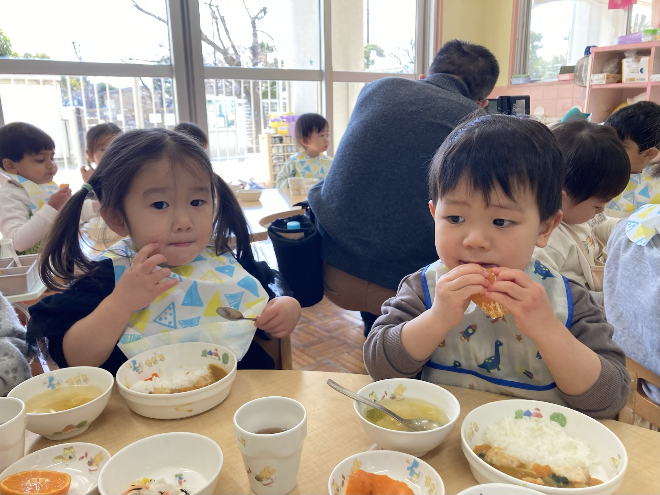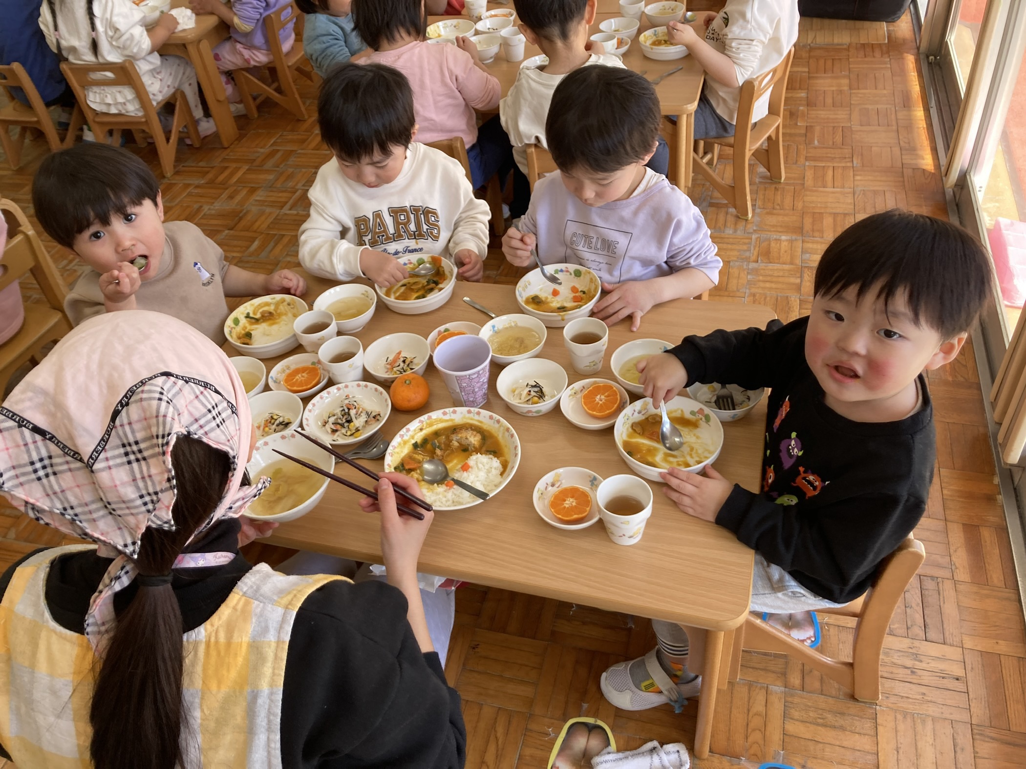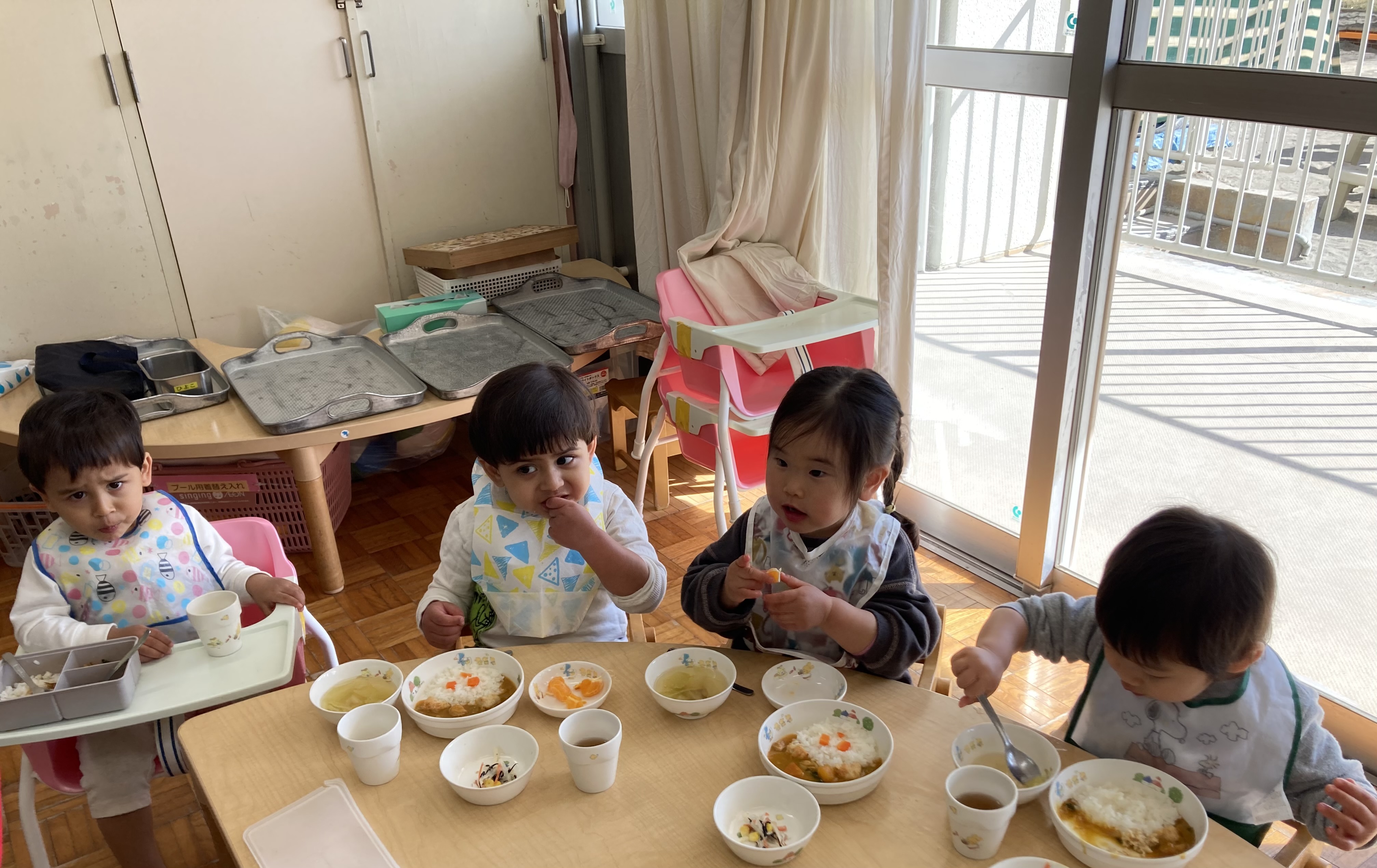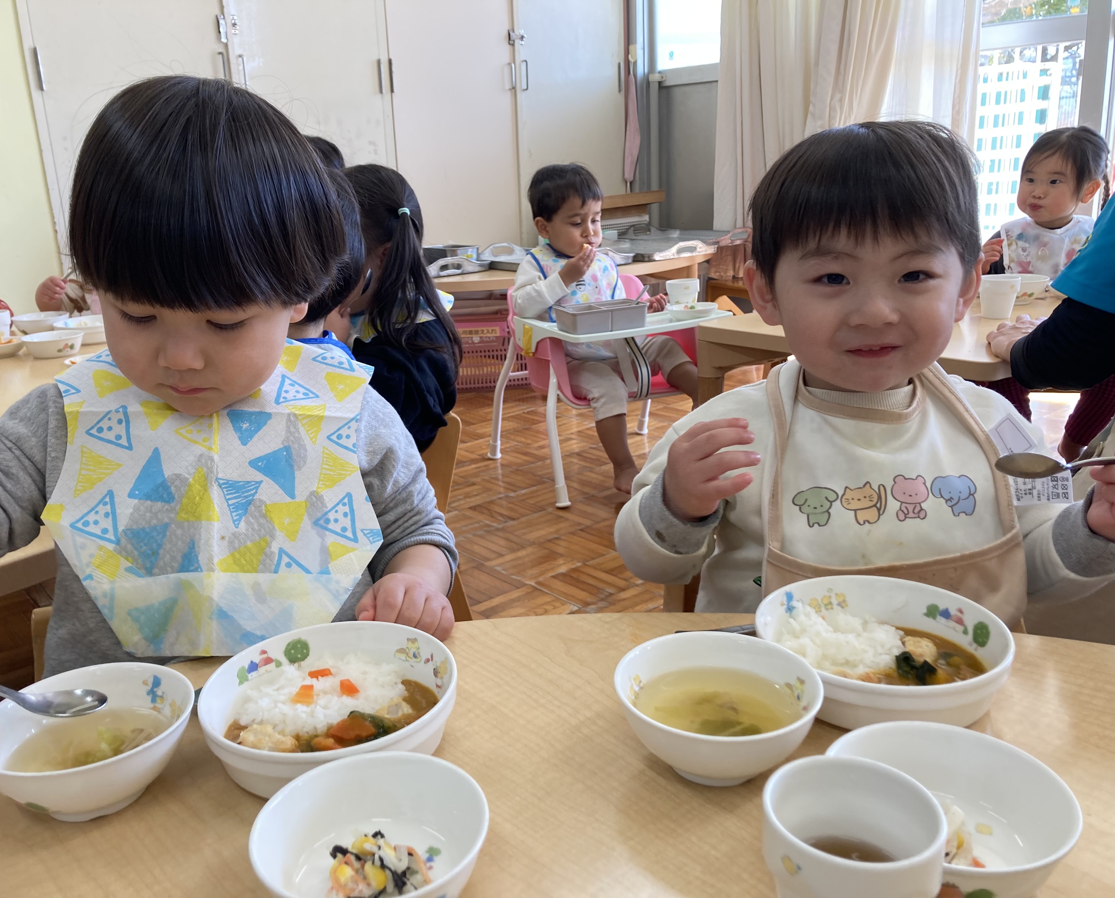 「くまさんだー!」とくまさんカレーに大喜び!おいしそうに食べていました。