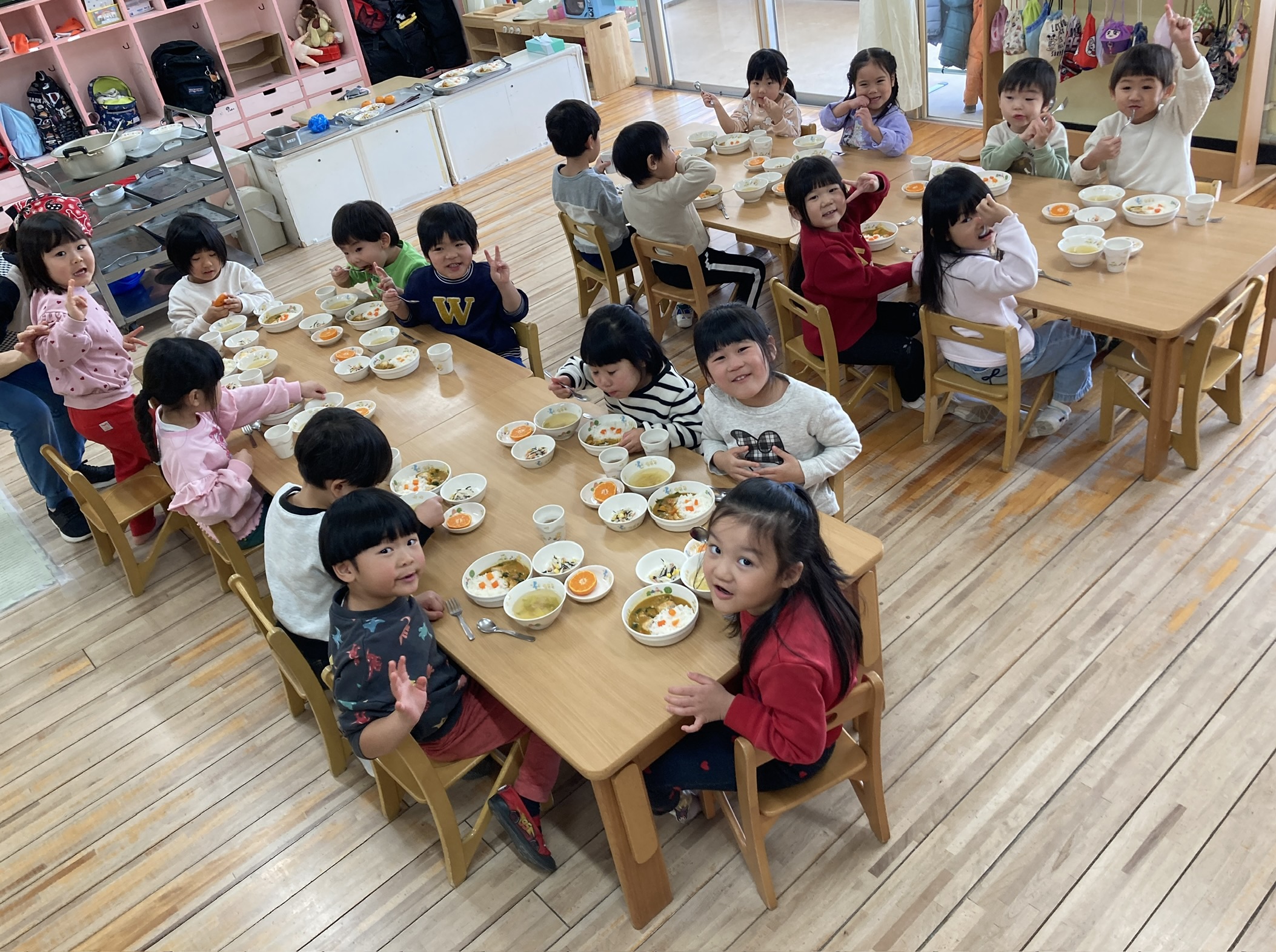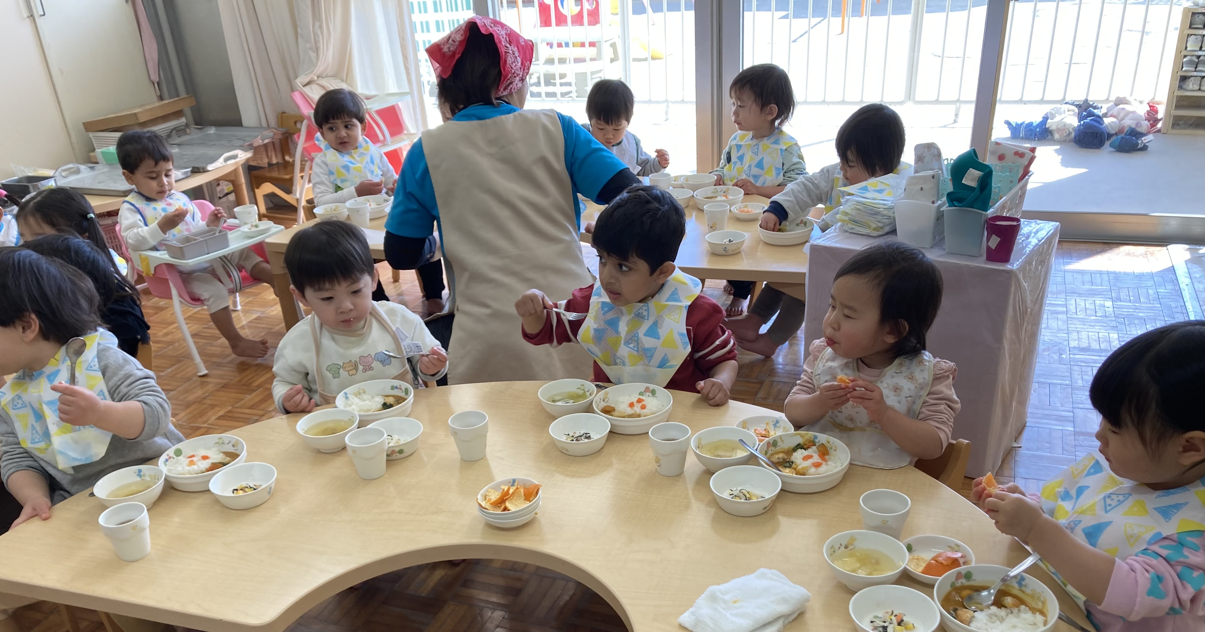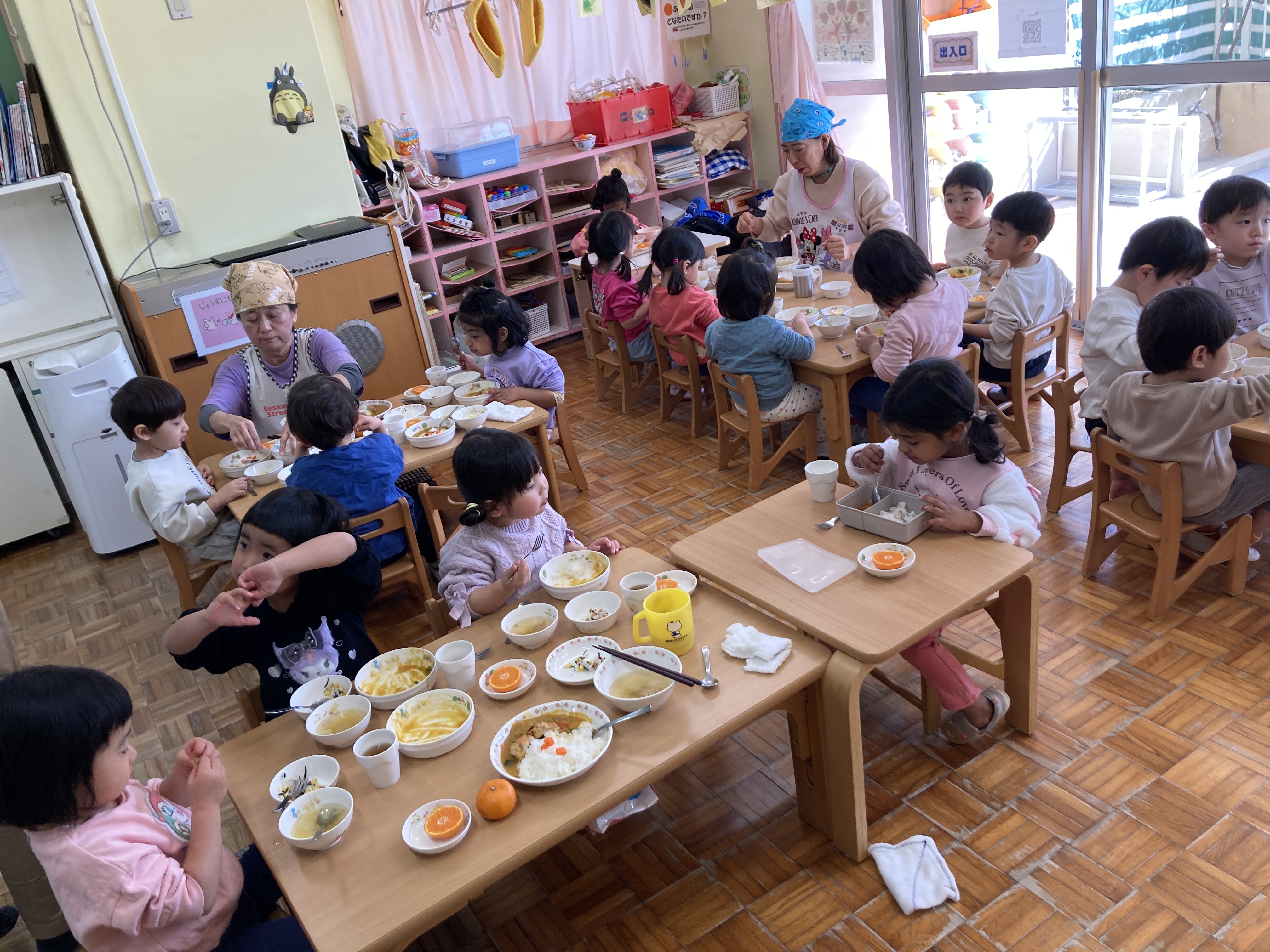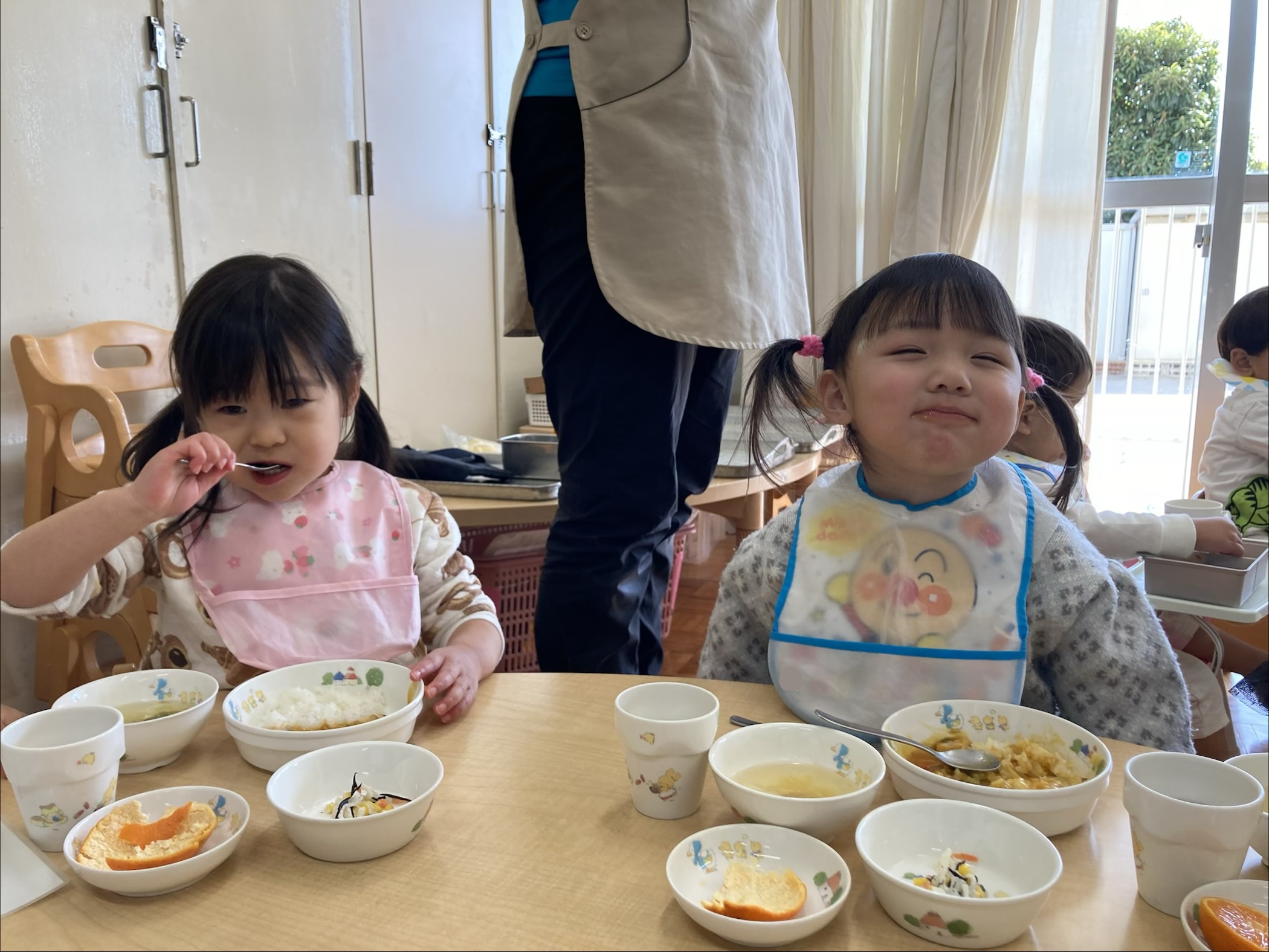 「くまさんだー!」とくまさんカレーに大喜び!おいしそうに食べていました。