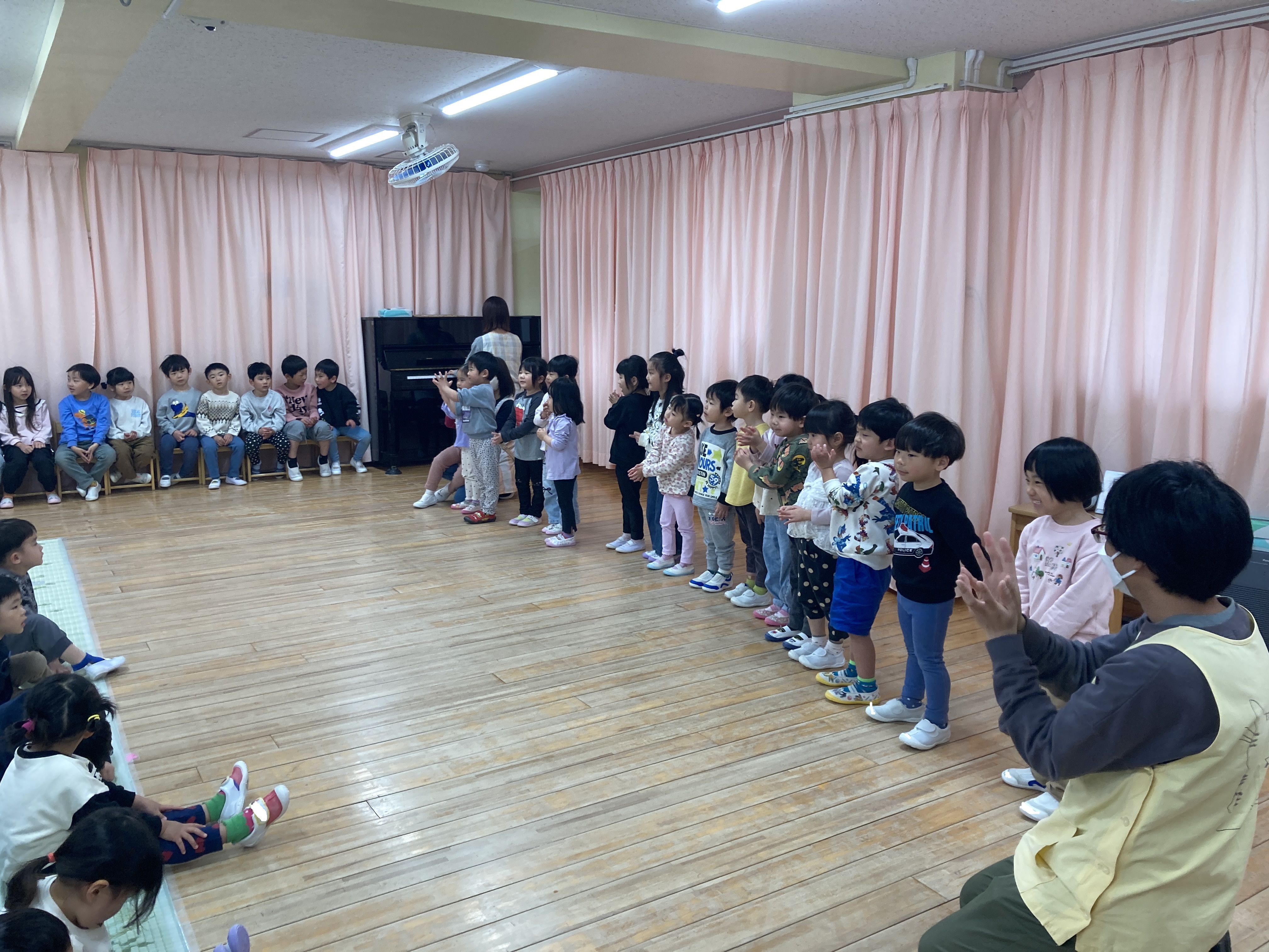 その後は各クラスかららいおん組へ歌などのプレゼント。