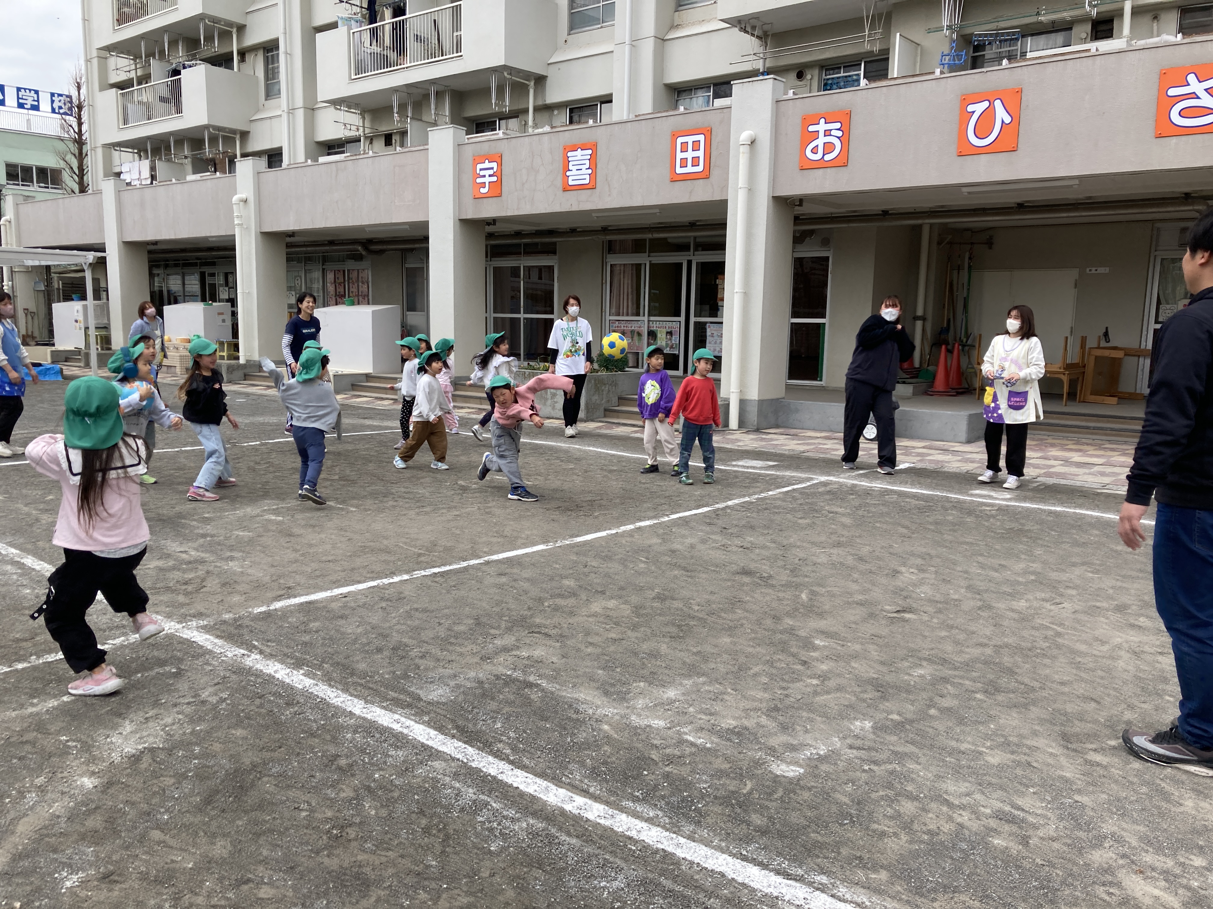 会終了後はきりん組とらいおん組でドッジボール、リレー対決!