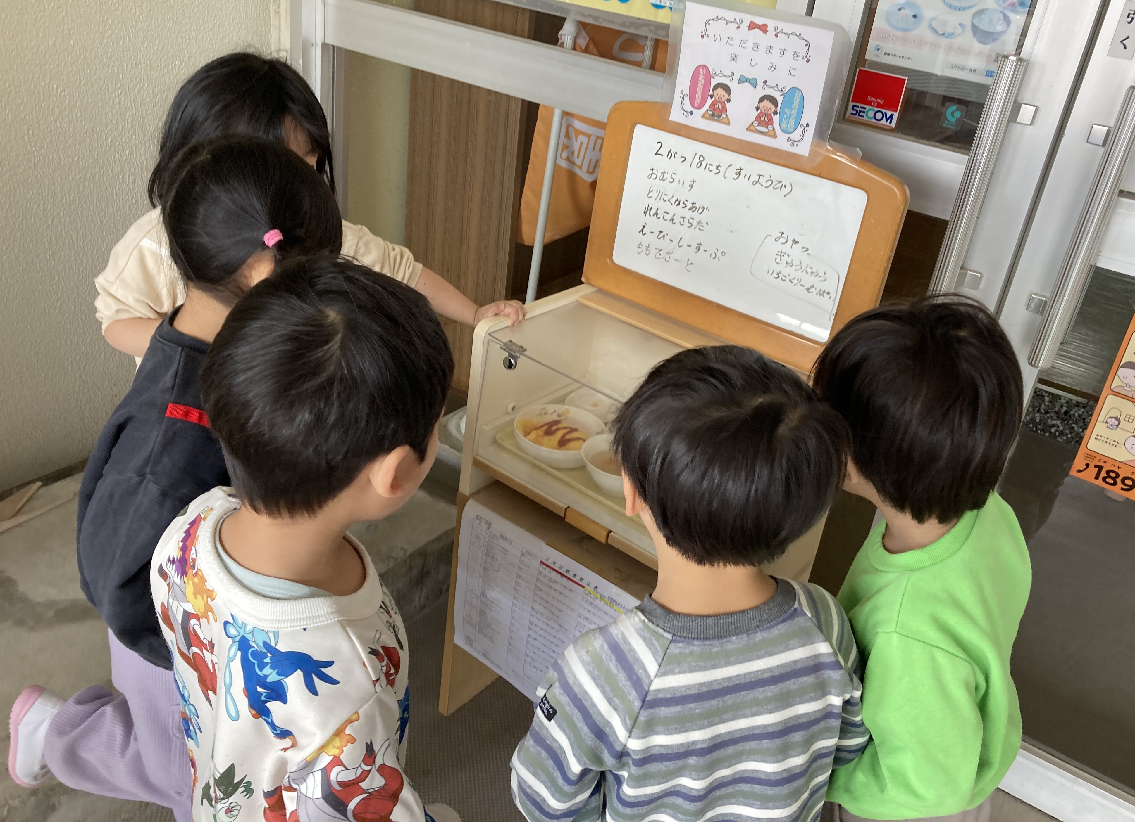 最近、給食の時間が近づくとその日の献立をチェックする子ども達。
