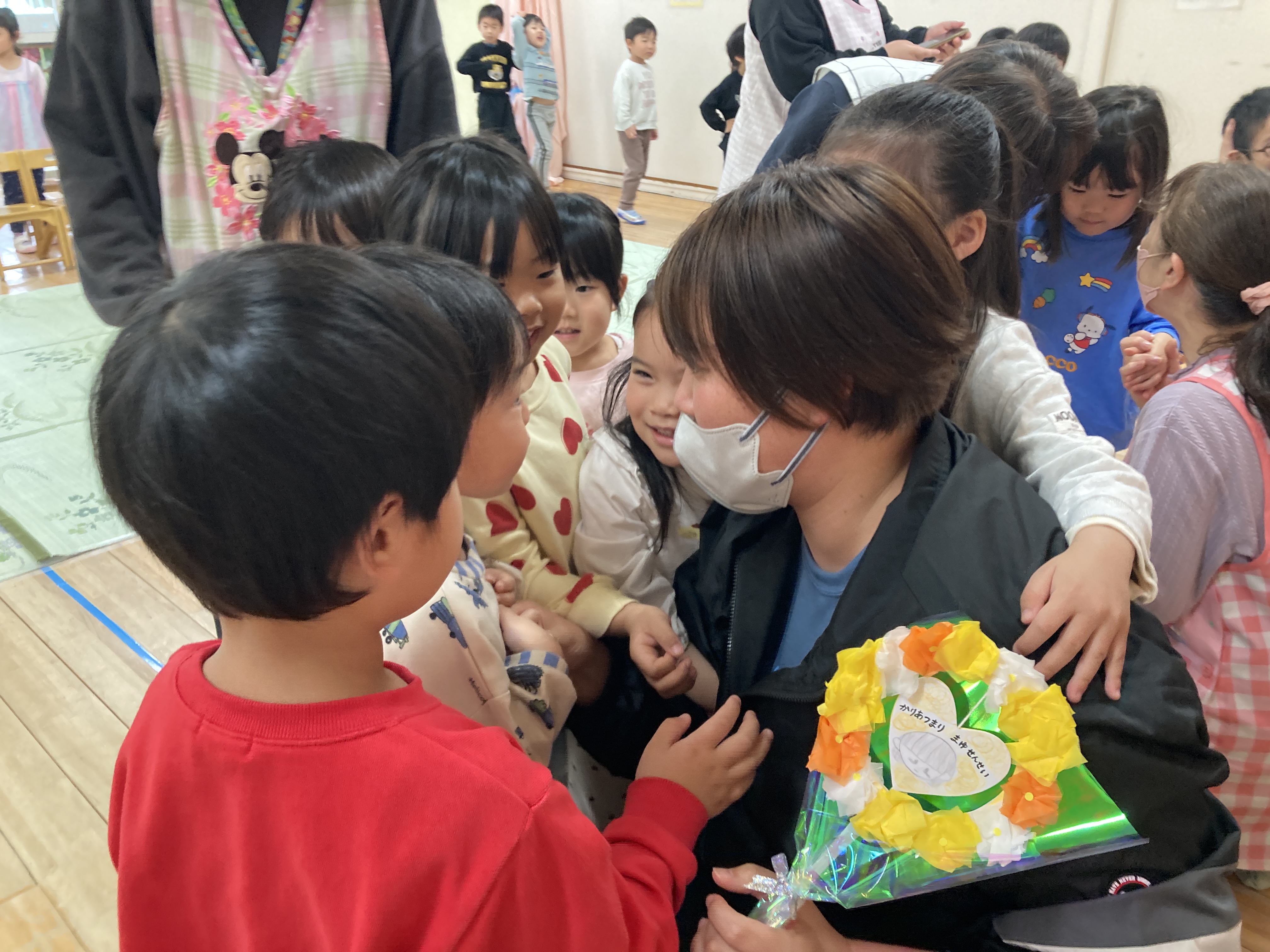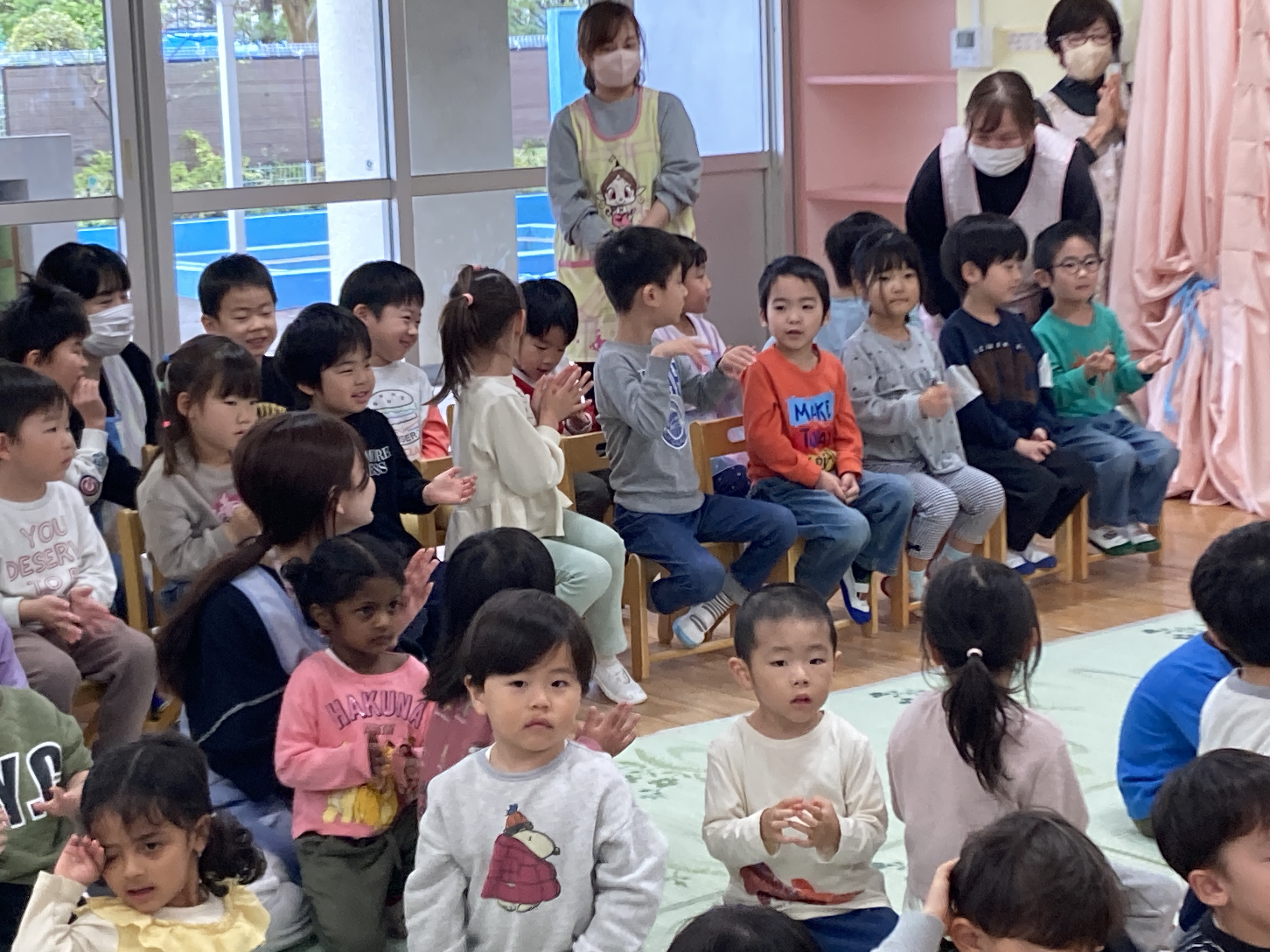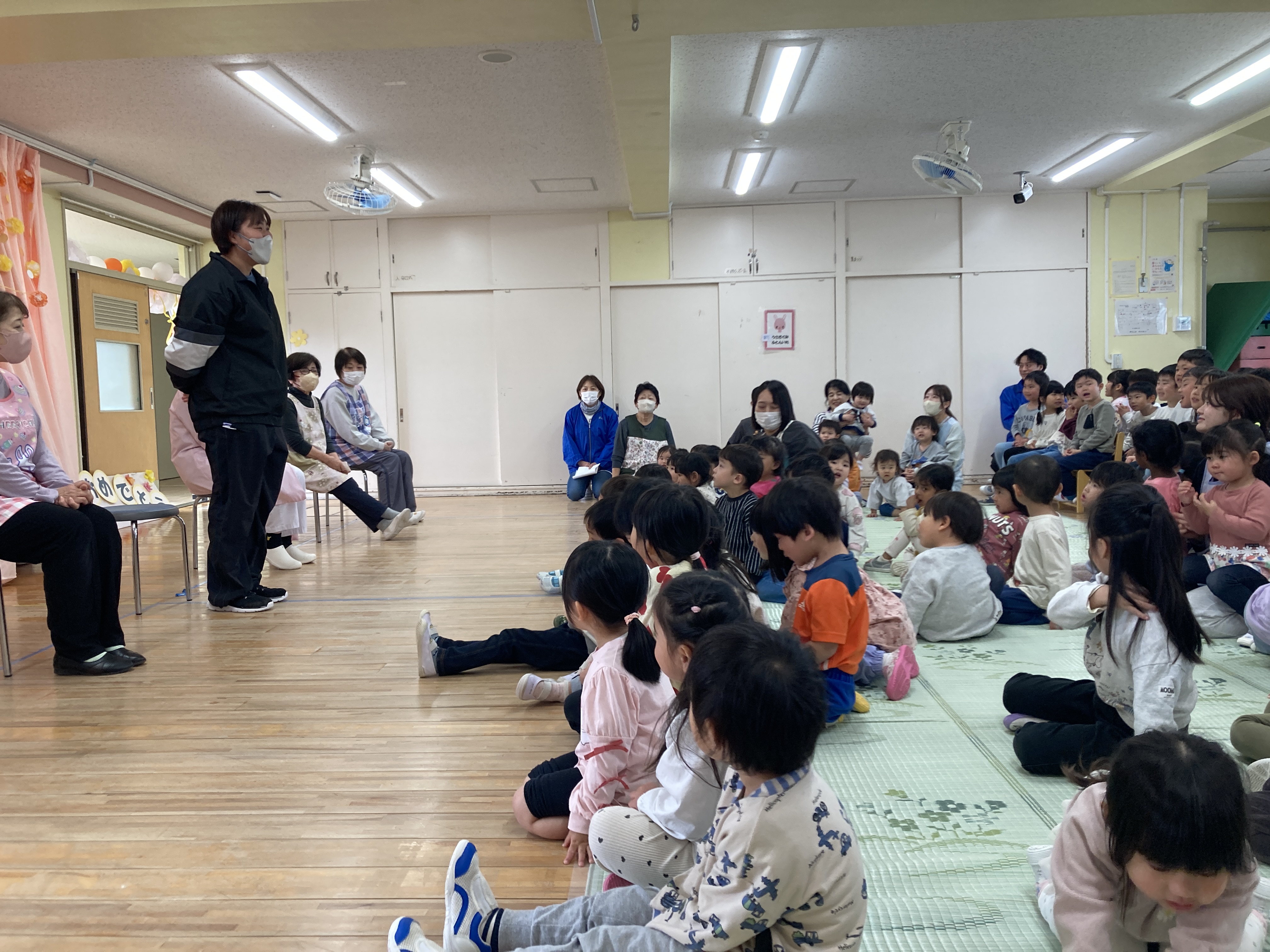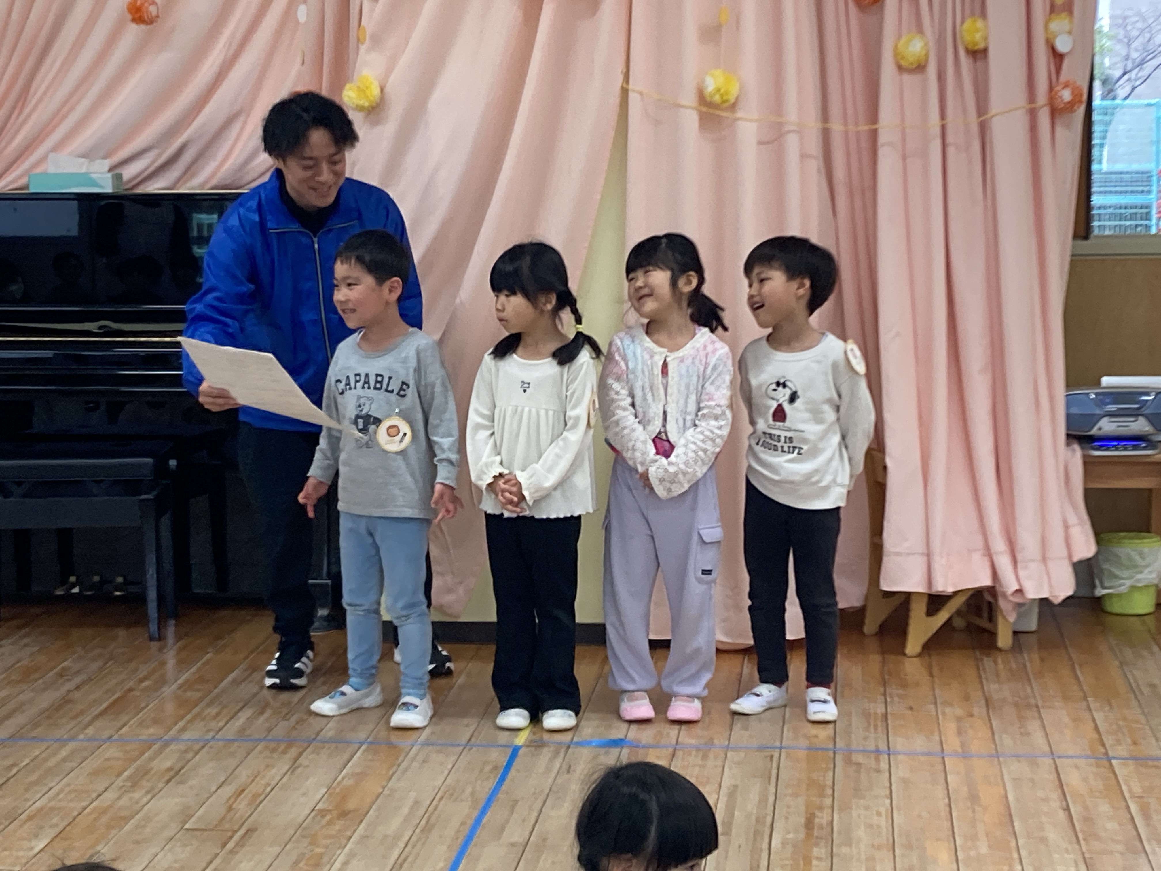 5歳児クラスから発表があり、喜ぶ声や驚く声などがたくさんでした。