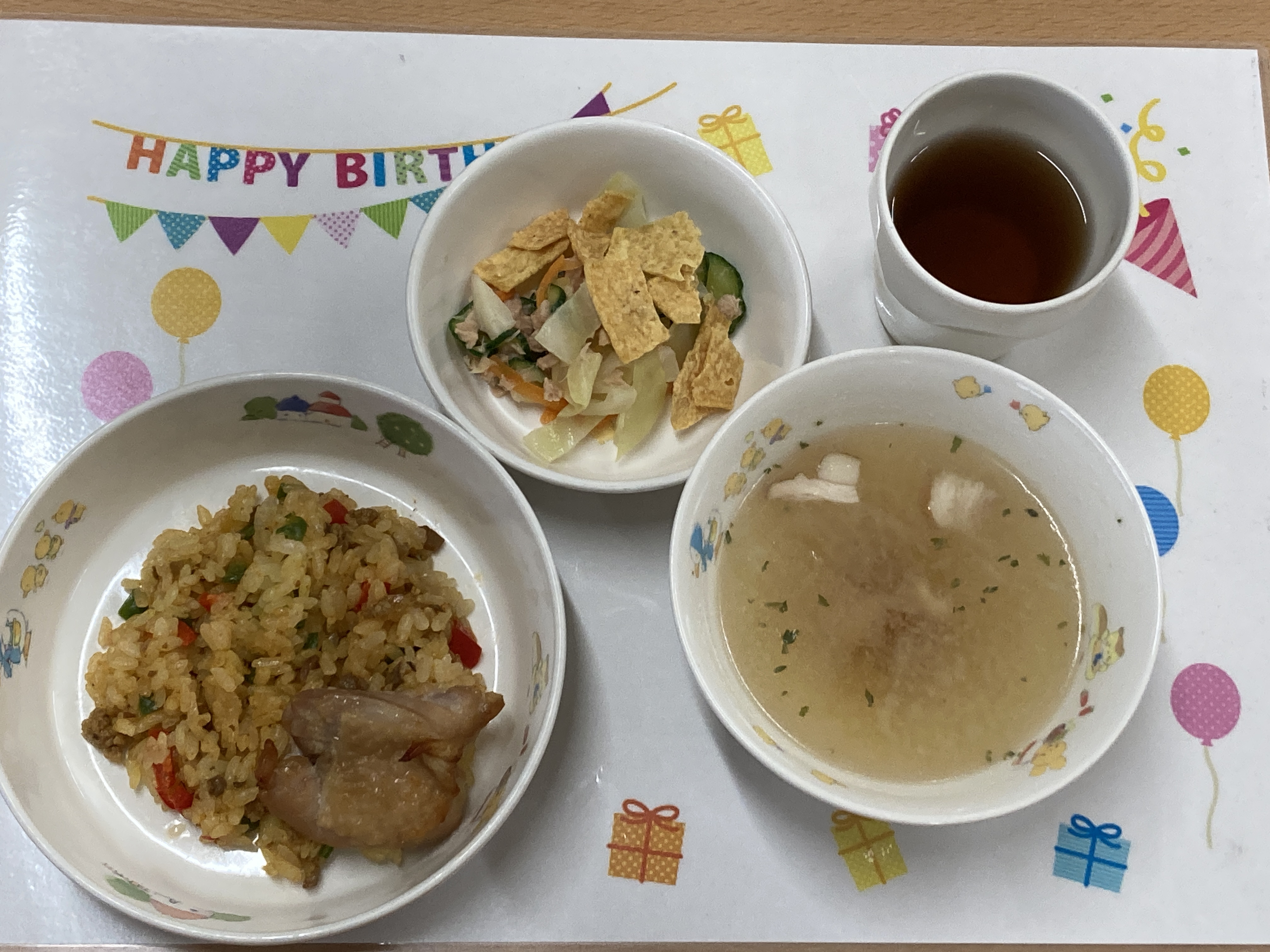 今日の給食は今年度最後の誕生日メニュー!