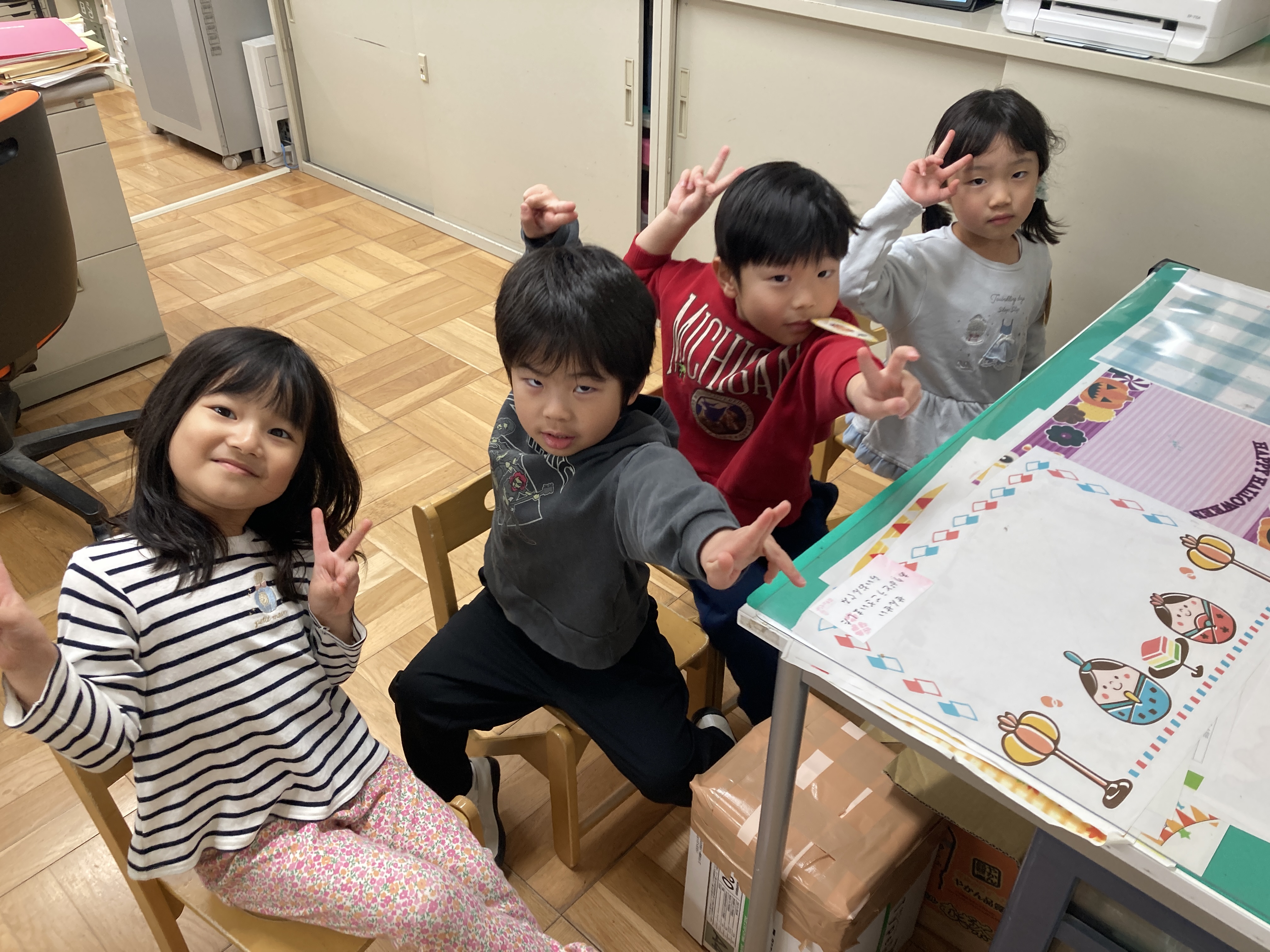 今回は進級してから初めての放送でしたが、カメラを向けると「いえーい!」とポーズを決めて余裕の表情のらいおん組。放送が始まると、それまでの笑顔から切り替わり、真剣に取り組む姿がとても素敵でした。