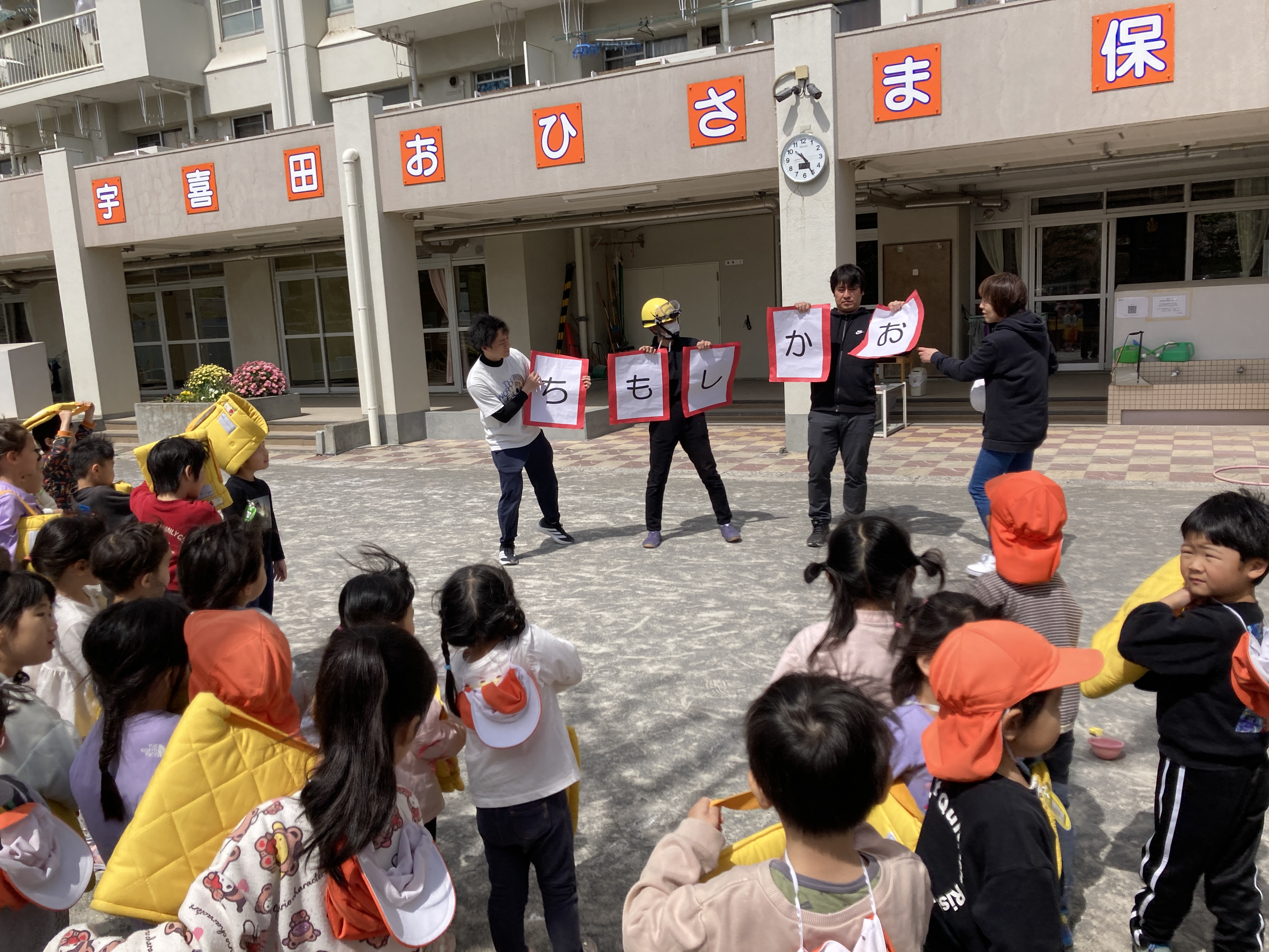 宇喜田おひさま保育園では、地震や火災、津波などの災害を想定し、